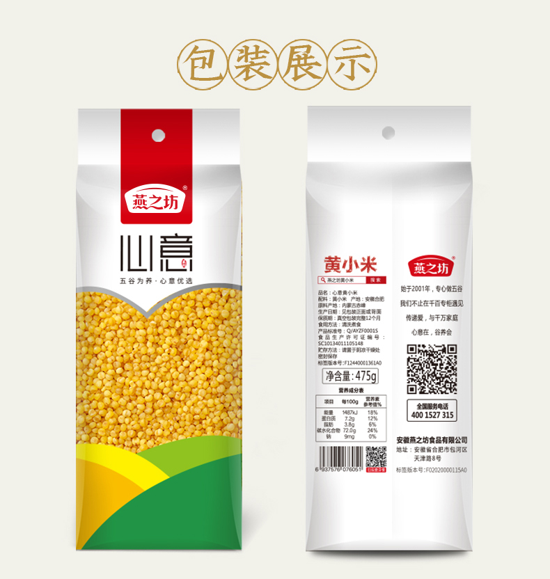 燕之坊黄金苗黄小米475g/袋*3