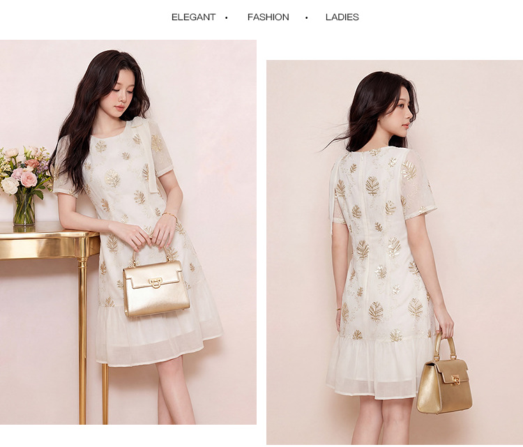 奢姿大码女装2026夏季胖妹妹时尚亮片刺绣连衣裙气质通勤显瘦长裙9962860000