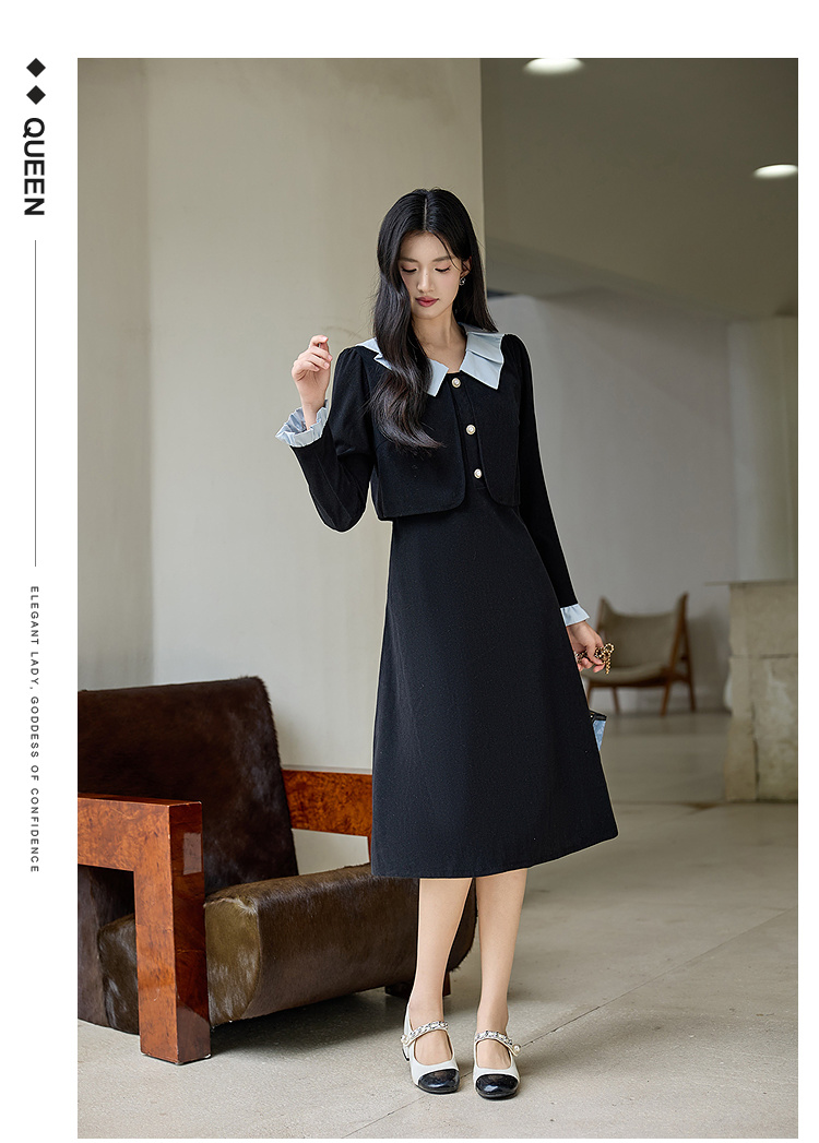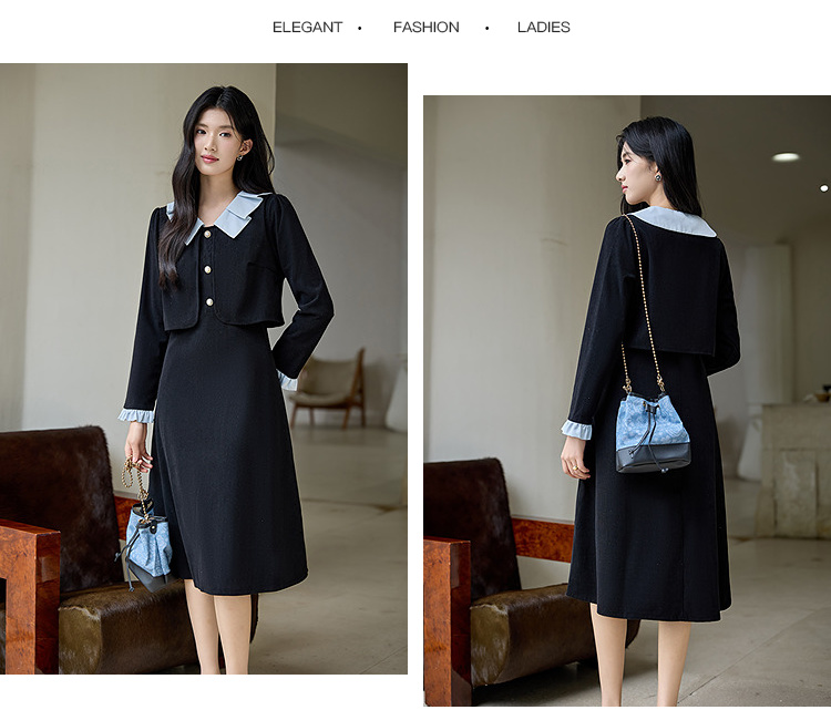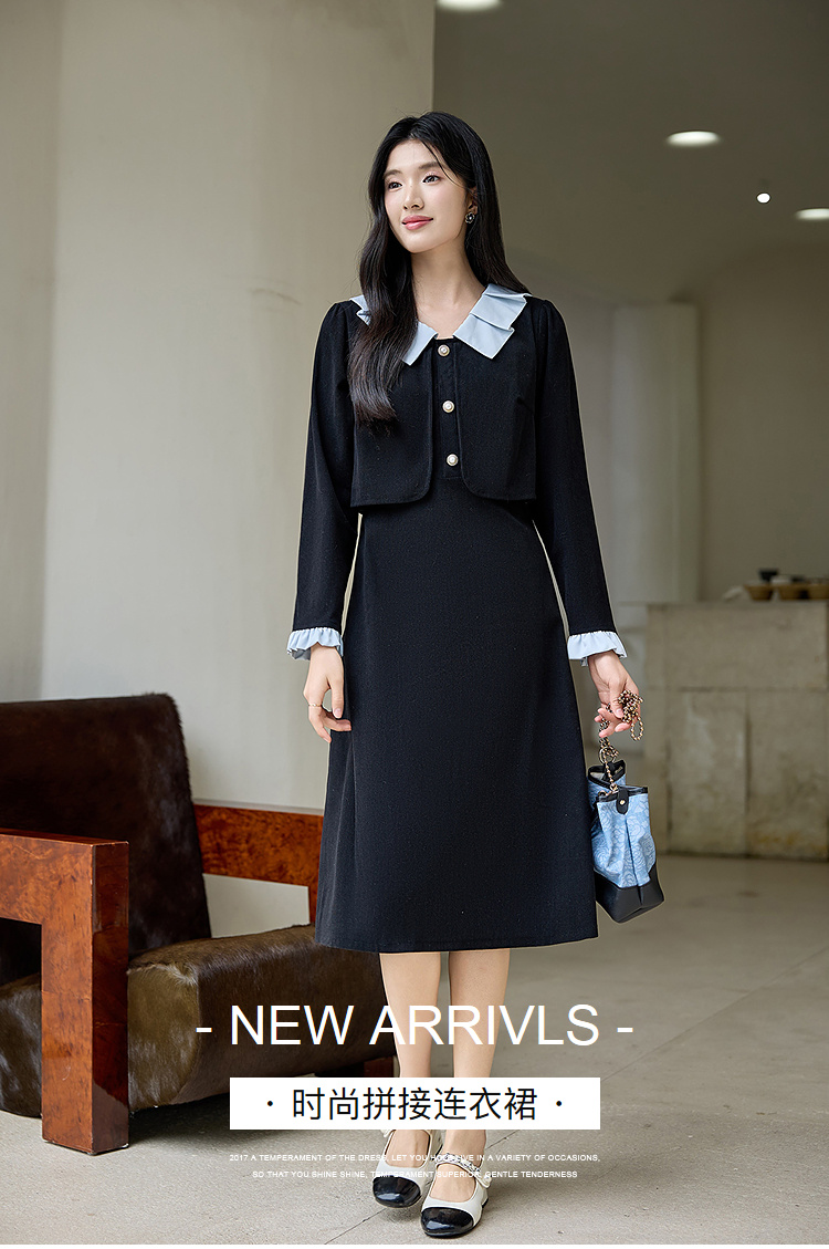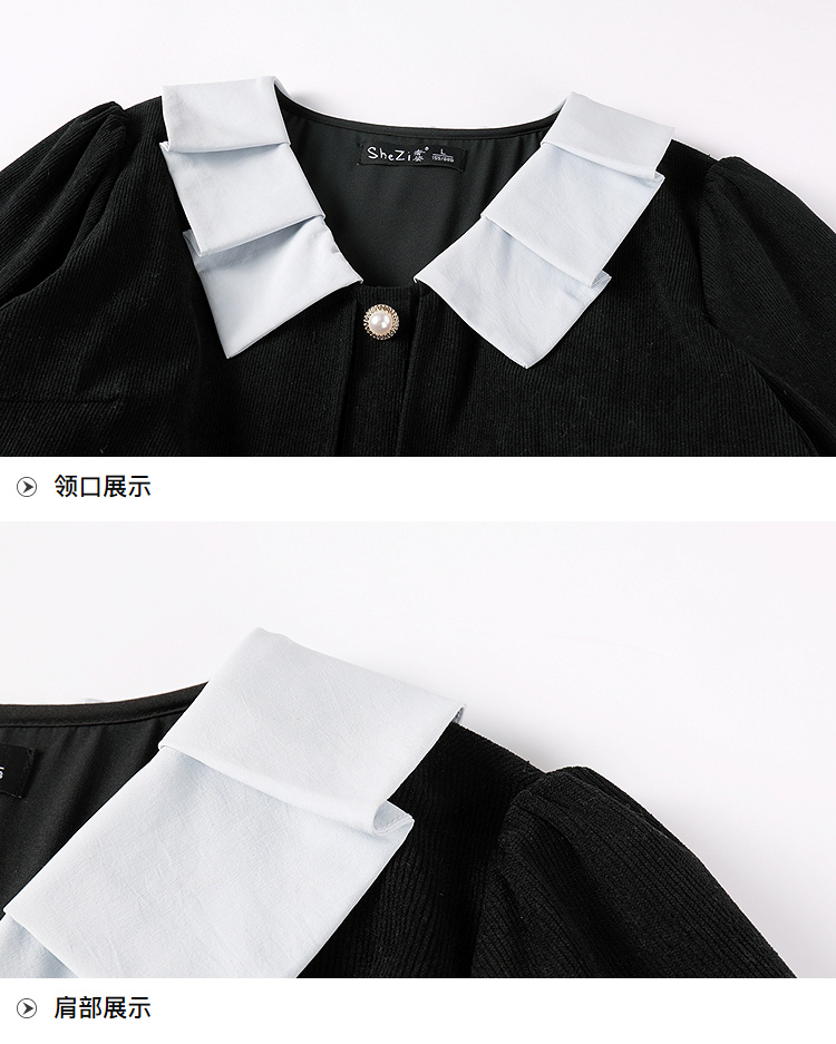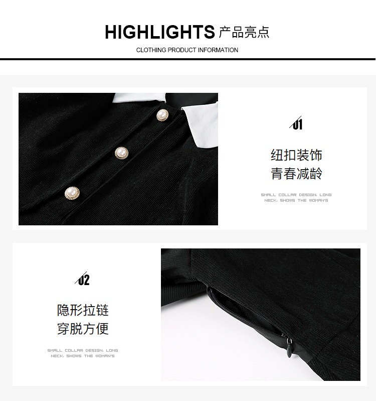 奢姿大码女装2026冬季减龄娃娃领拼接连衣裙胖妹妹灯芯绒时尚裙子9954853795