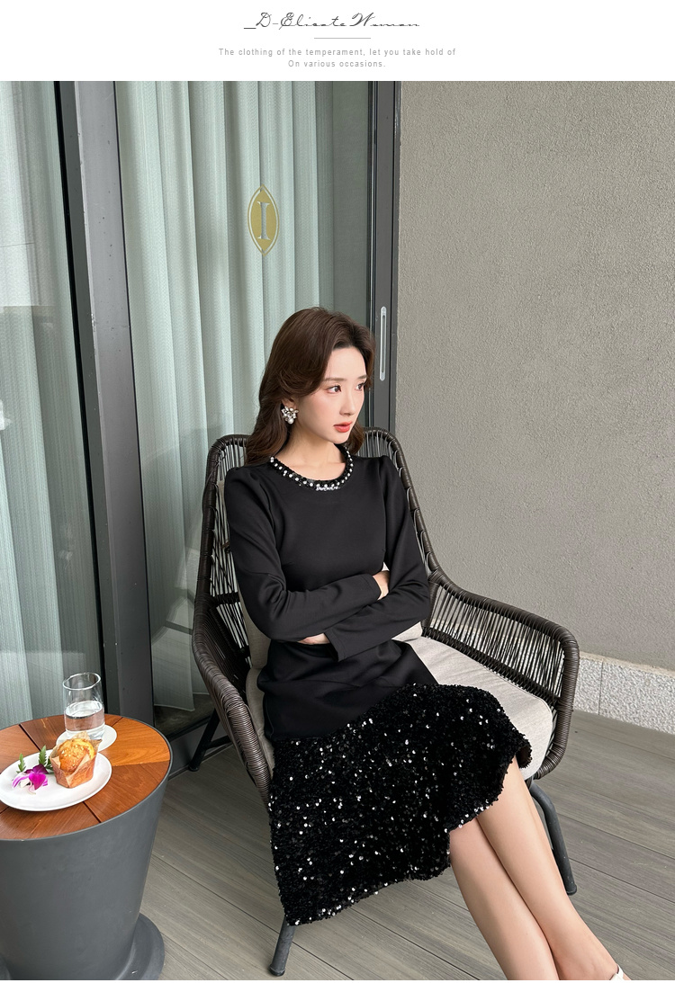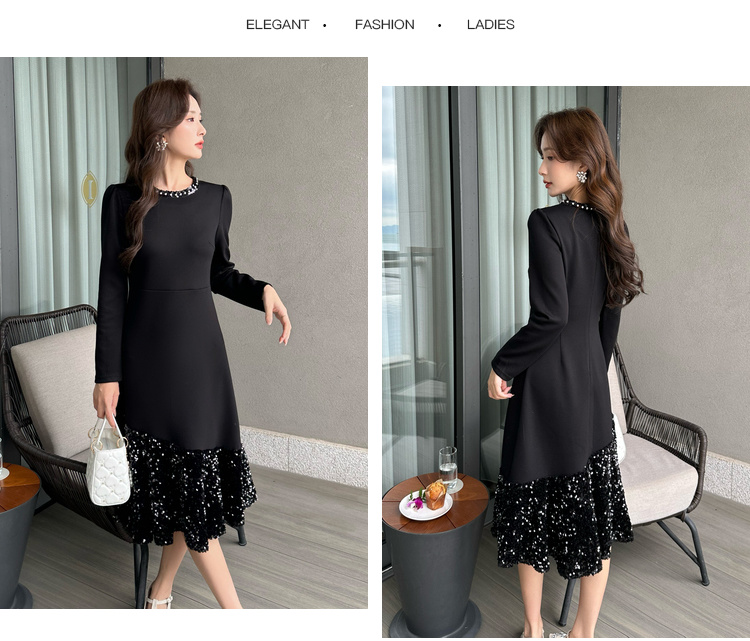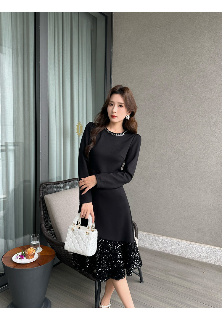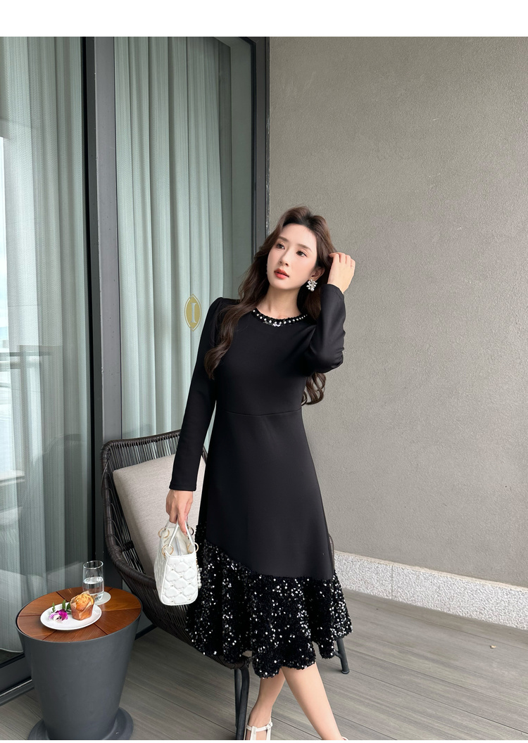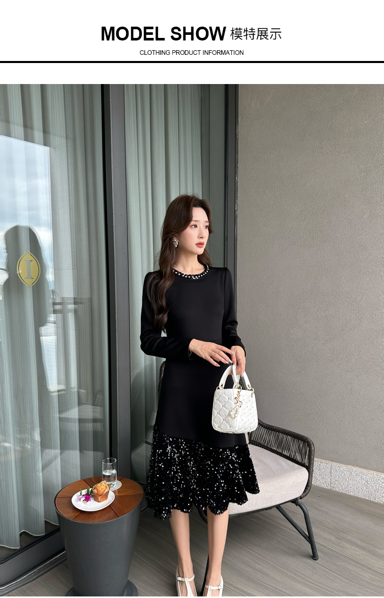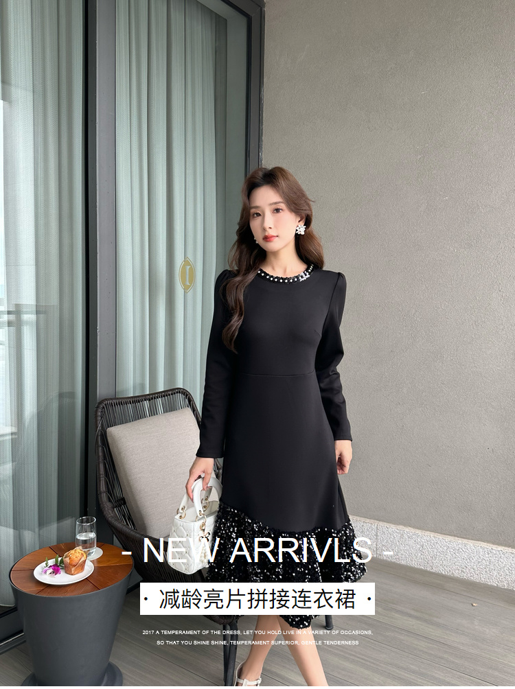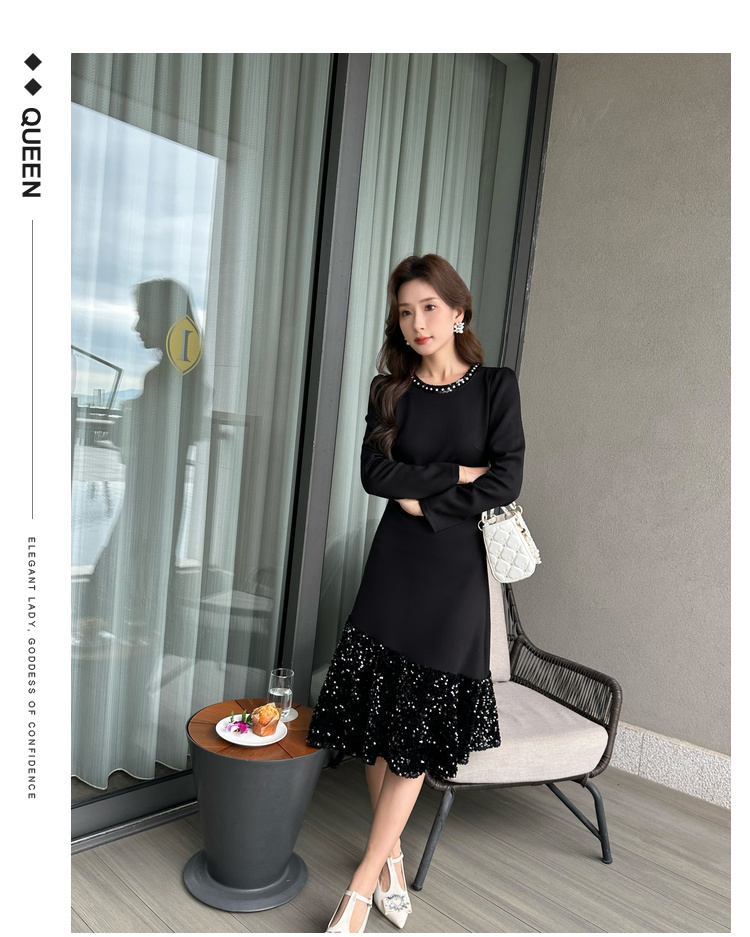 奢姿2024年秋季新款大码女装设计感针织裙子胖妹妹拼接亮片连衣裙9943855694