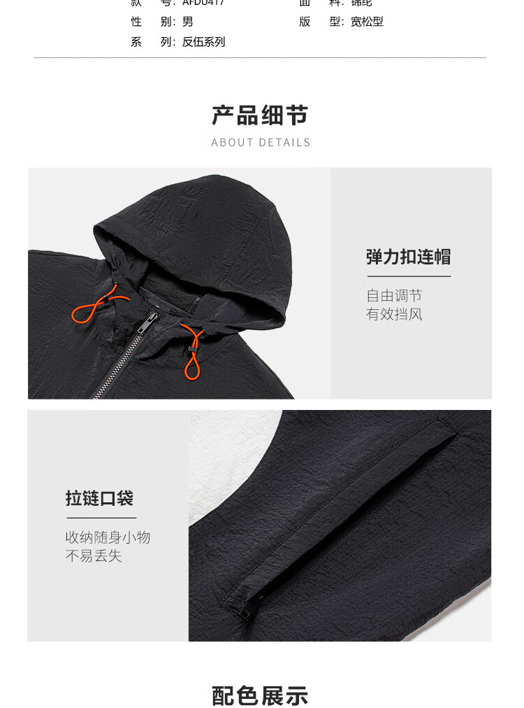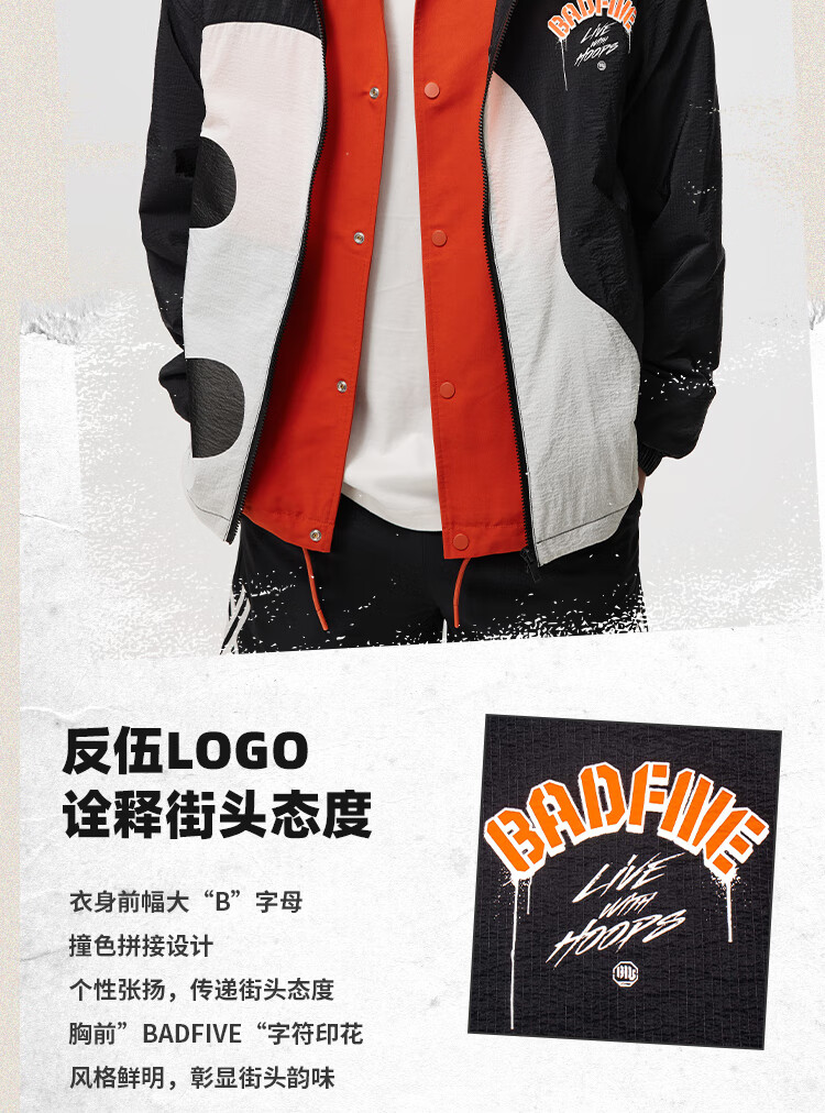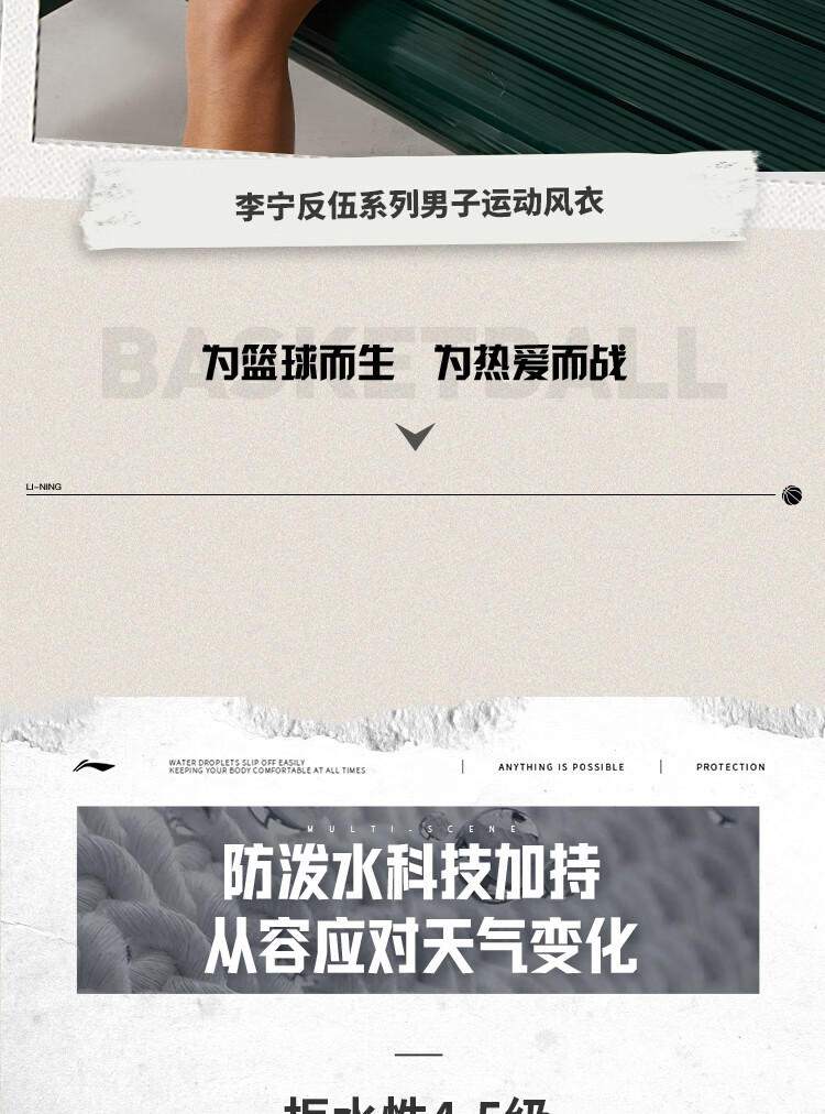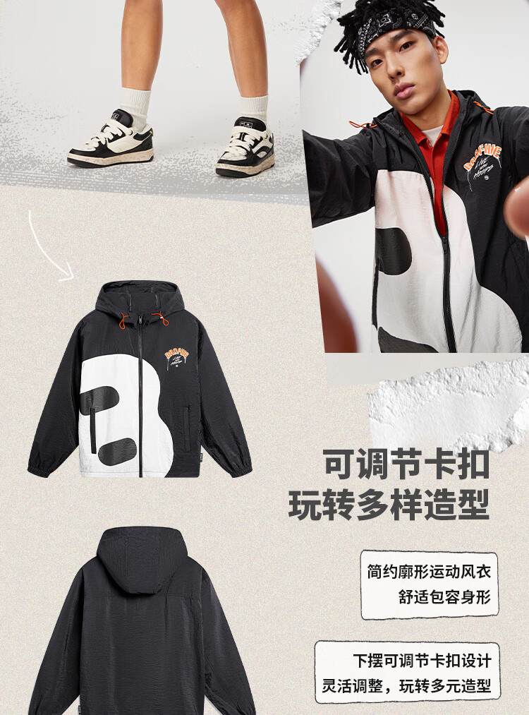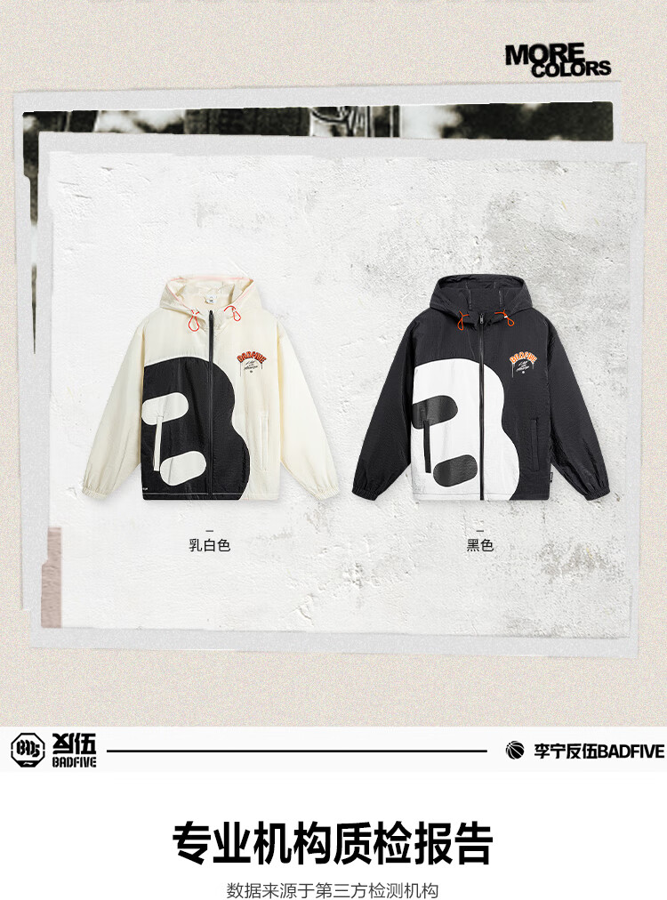 李宁反伍BADFIVE男子防晒防泼水风衣24春秋宽松运动风衣AFDU417