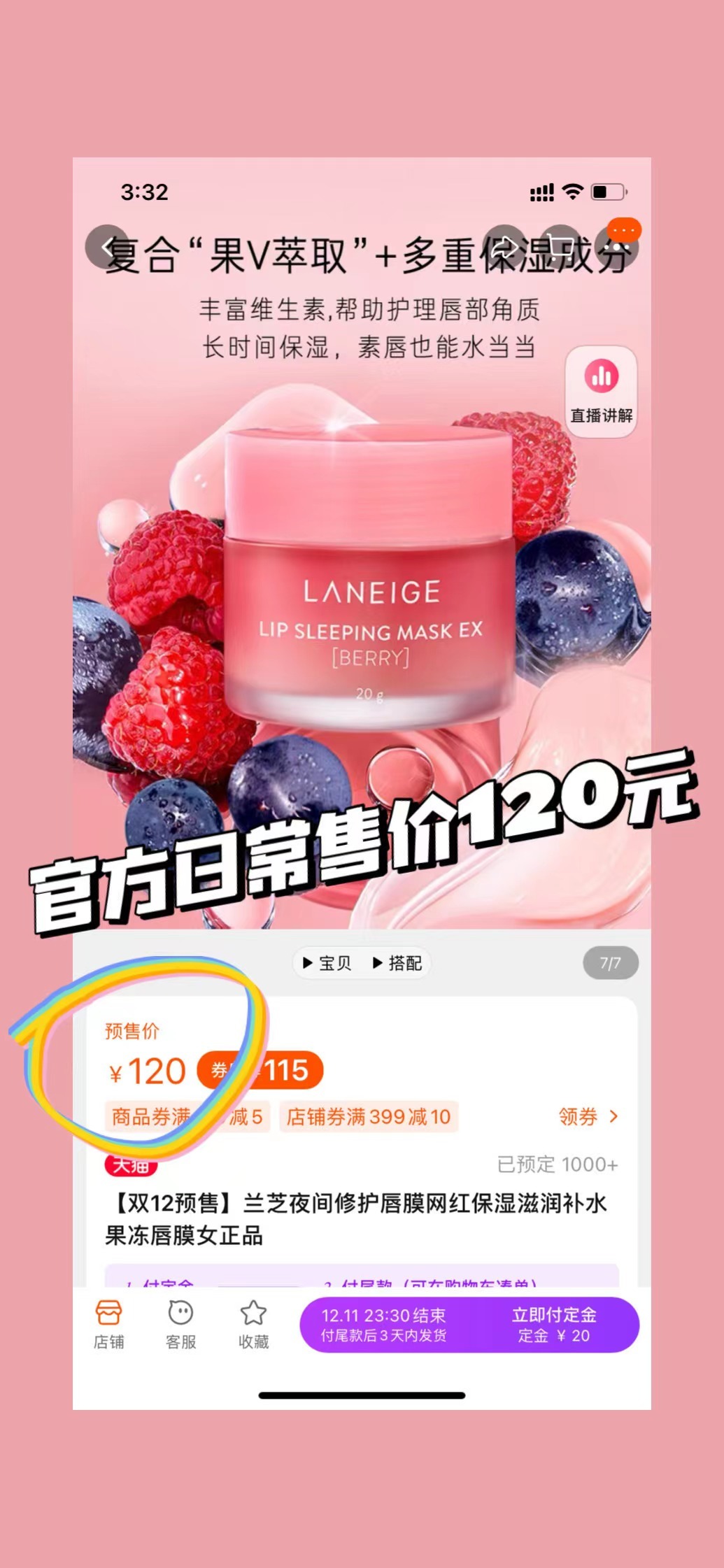 兰芝唇膜正装20g 一次唇膜=10次唇膏💪 柔润美唇的秘器 告别干唇~ 可以没有口红 但是必须要有唇膏 不然嘴唇真的干到我怀疑人生!