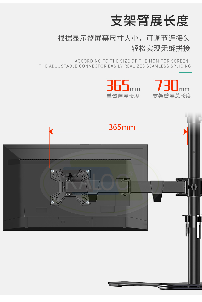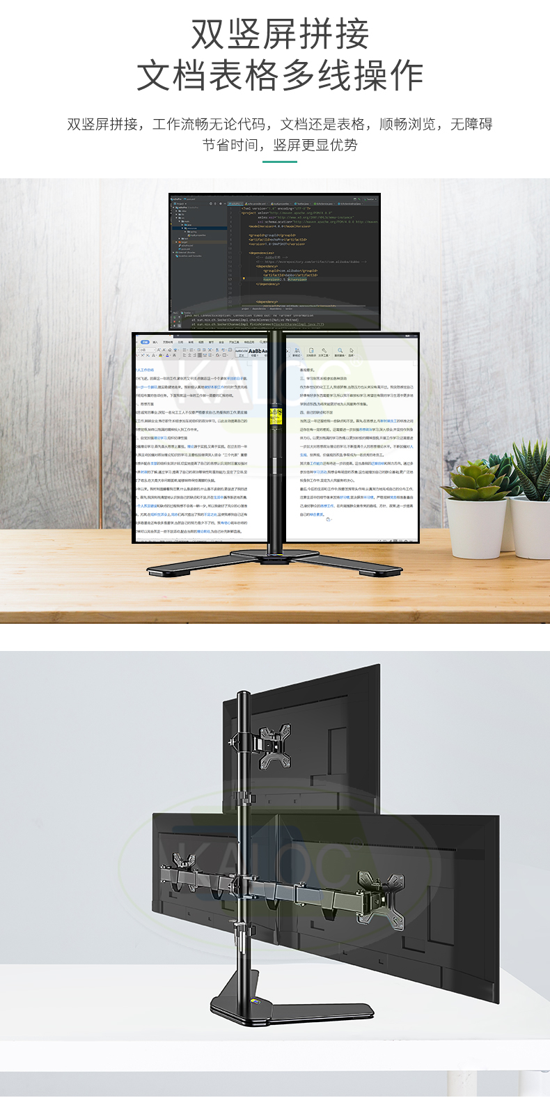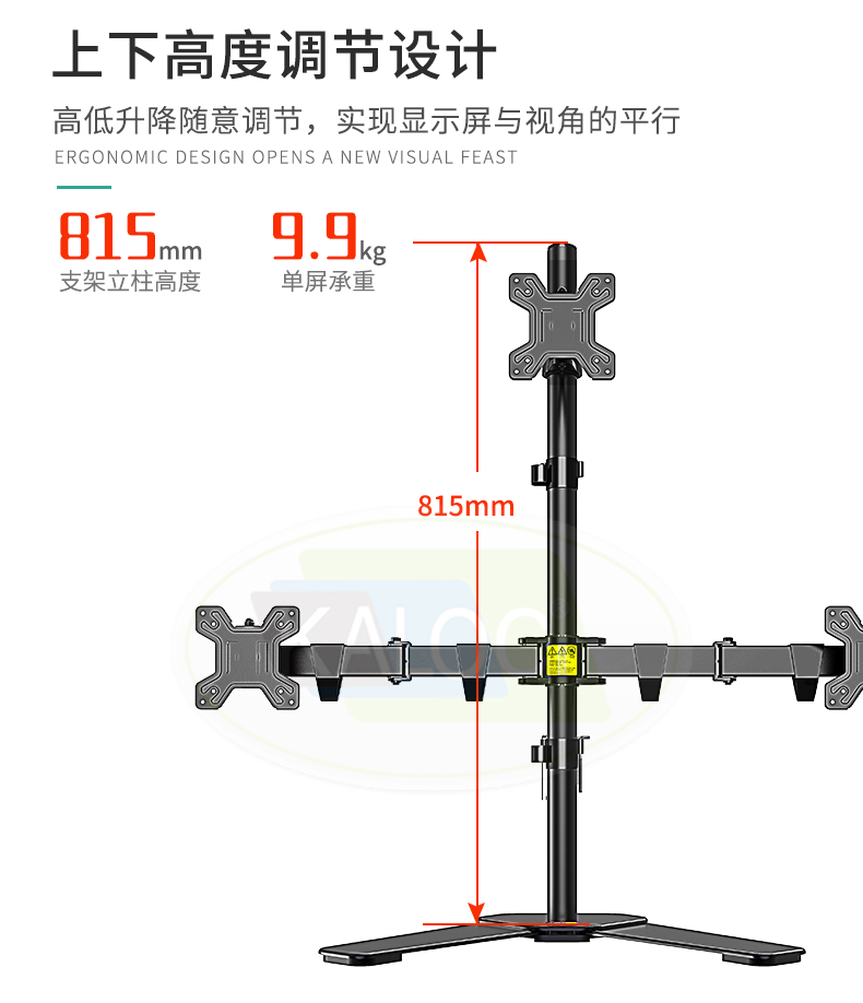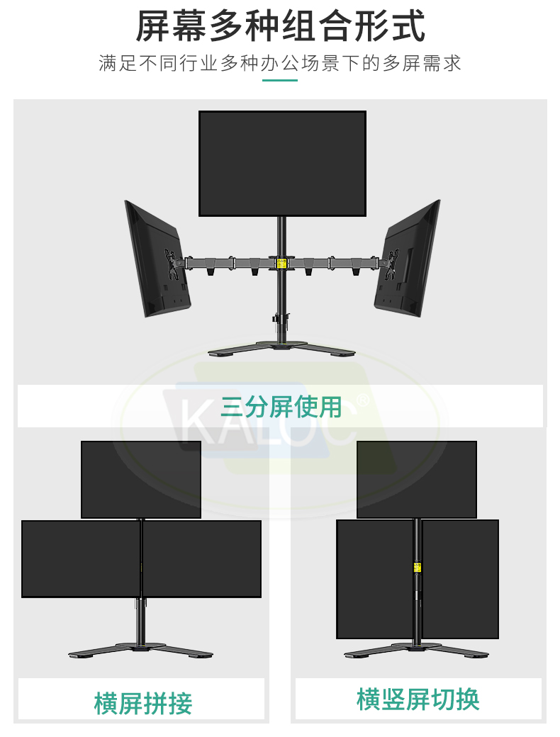 KALOC卡洛奇双屏电脑显示器支架 通用三星AOC4屏多屏液晶电脑挂架 支架臂 17-27英寸适用