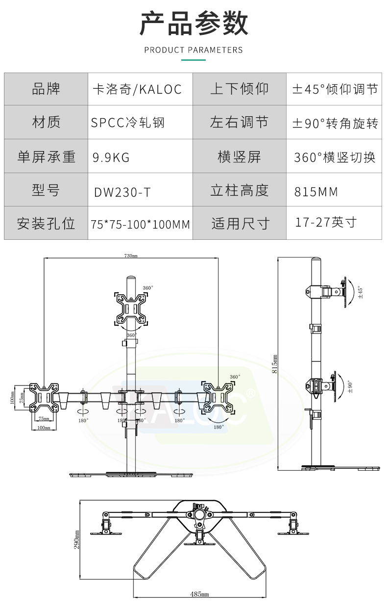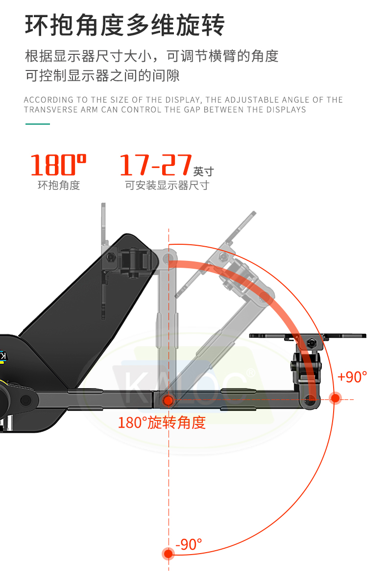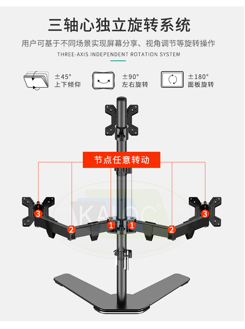 KALOC卡洛奇双屏电脑显示器支架 通用三星AOC4屏多屏液晶电脑挂架 支架臂 17-27英寸适用