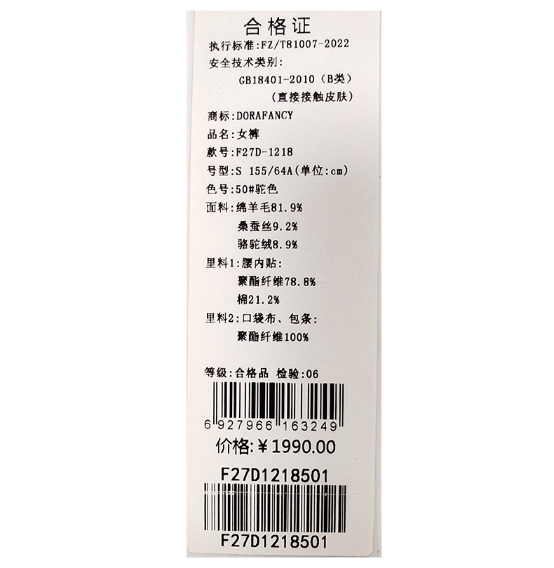 朵拉梵西裤子F27D1218