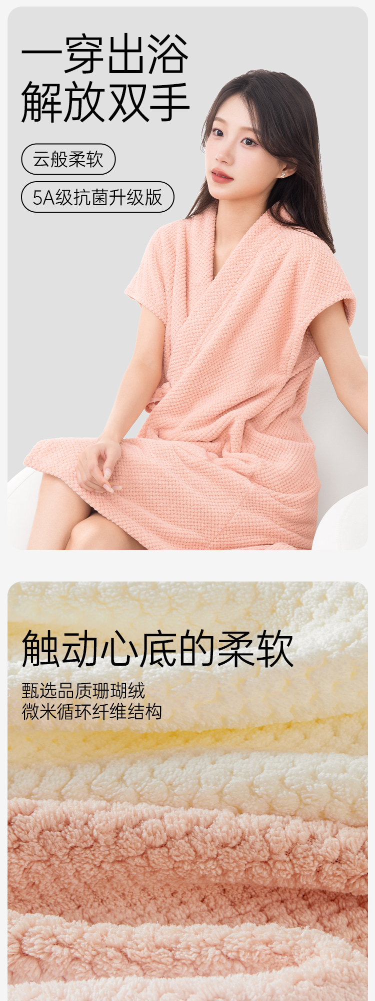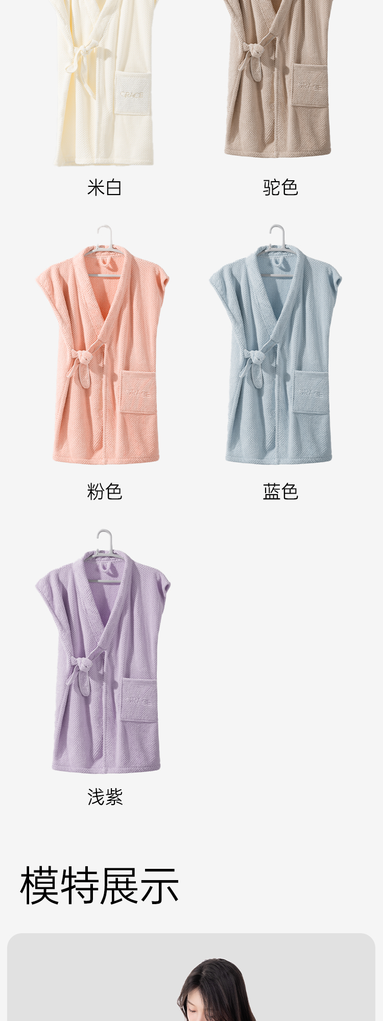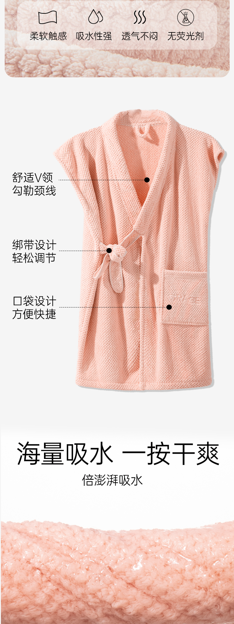 洁丽雅浴裙透气清凉家用吸水抑菌款轻盈速干睡衣浴袍