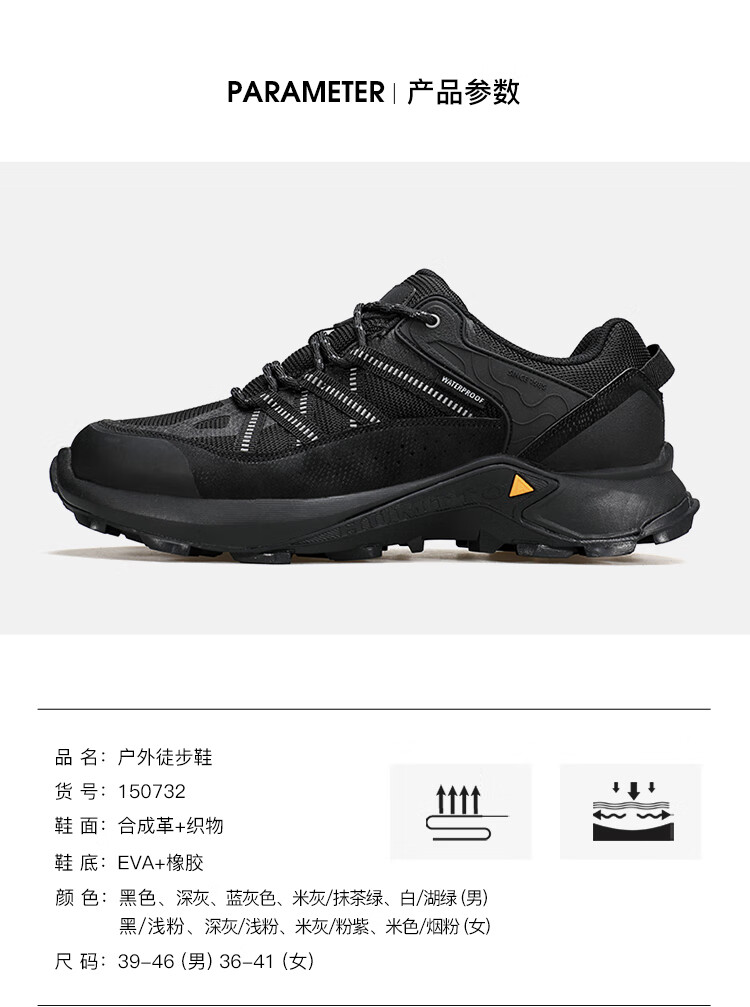 悍途秋冬新款网面透气户外登山鞋防滑耐磨城市户外徒步鞋