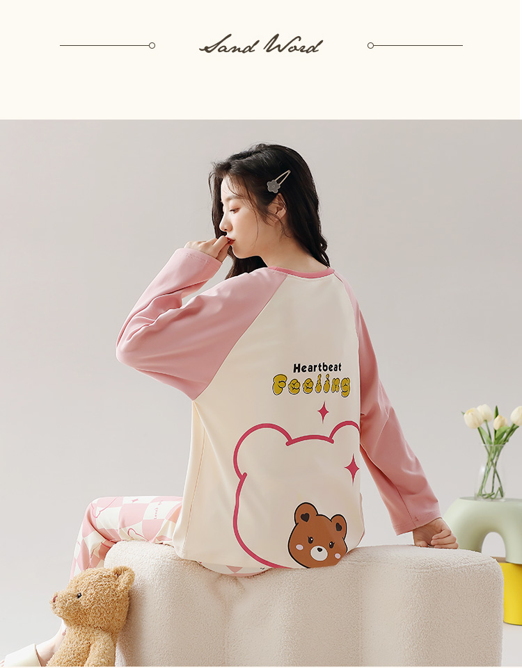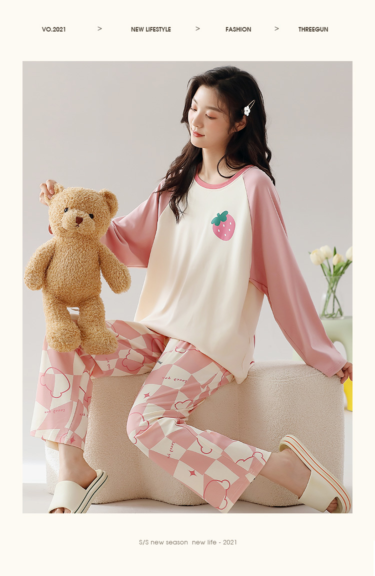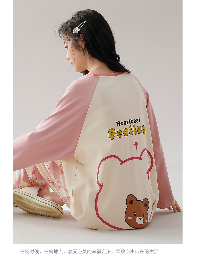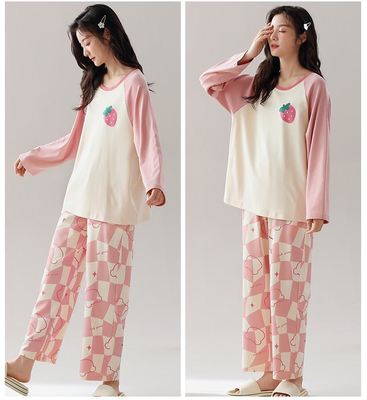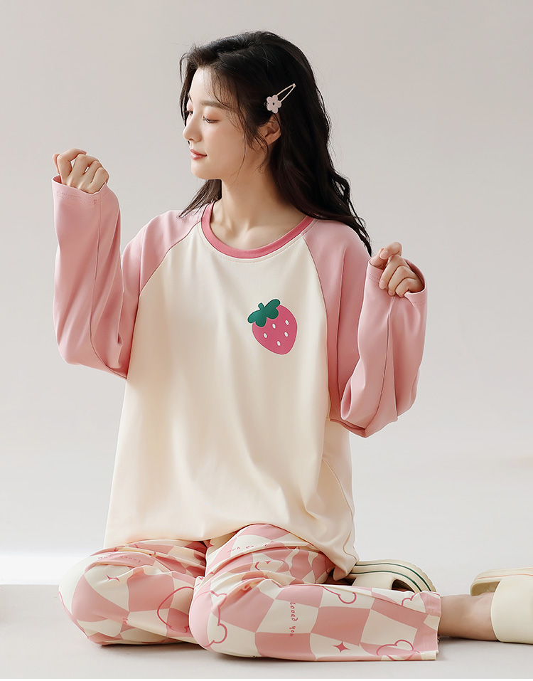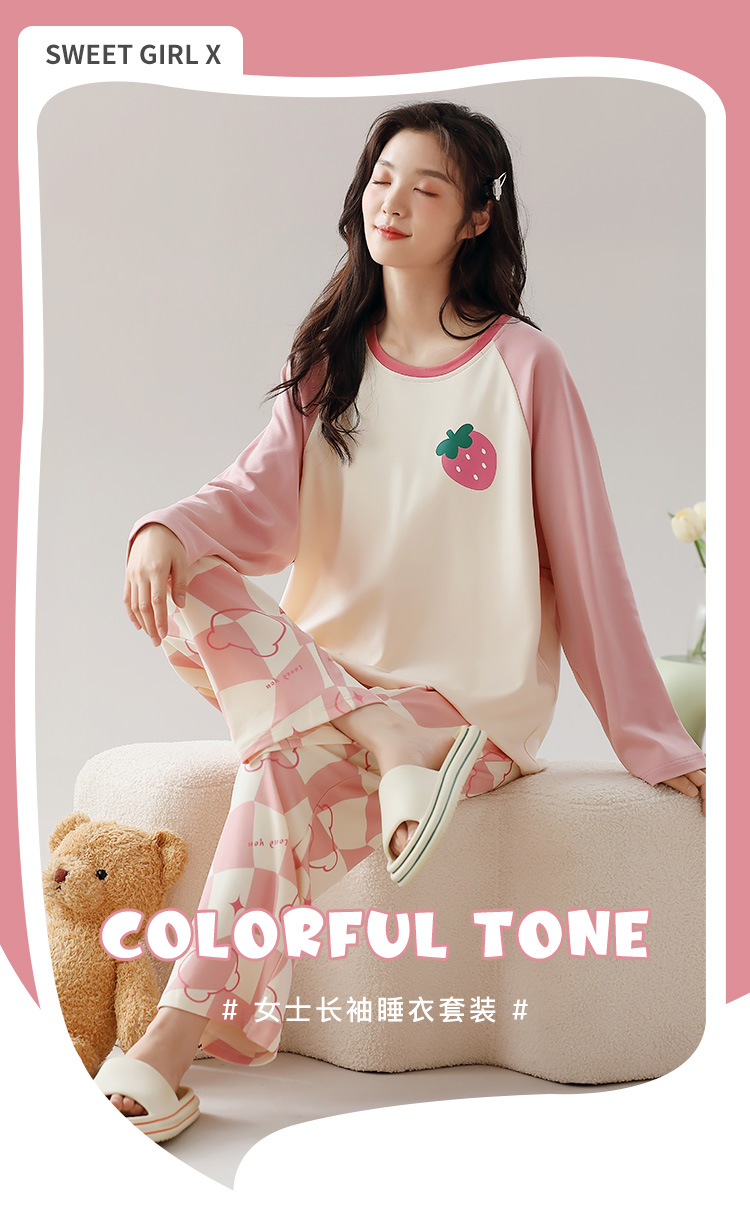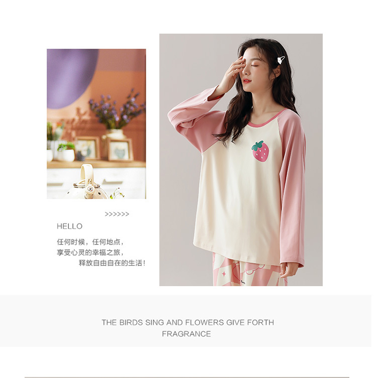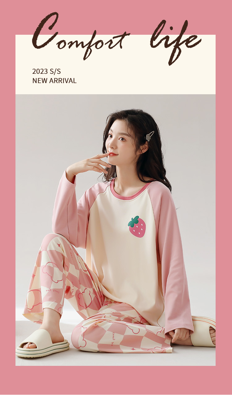 洁丽雅棉质女士大码圆领家居服个性印花舒适亲肤长袖长裤套装
