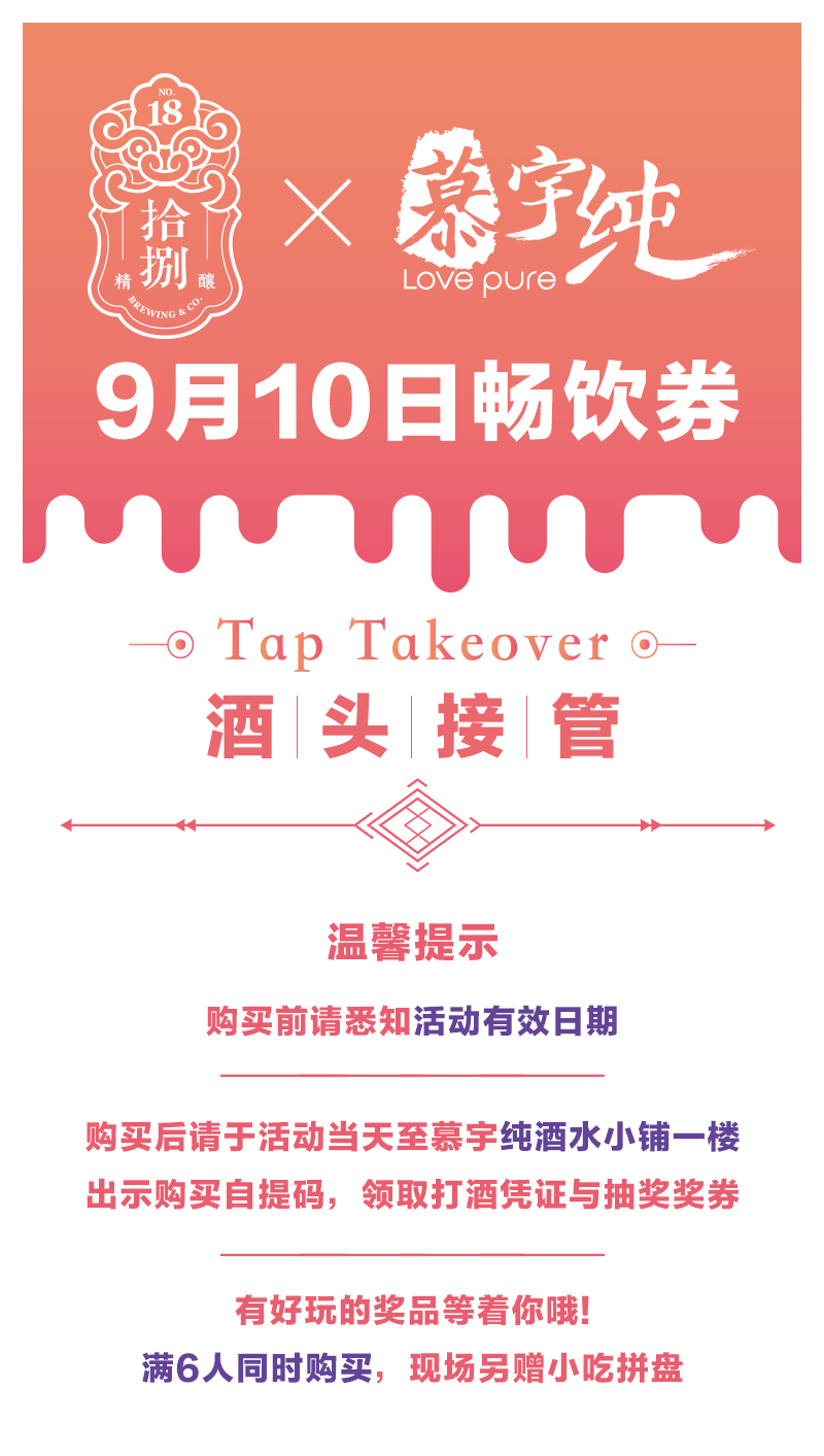 拾捌精酿×慕宇纯酒头接管9月10日畅饮票(单人)