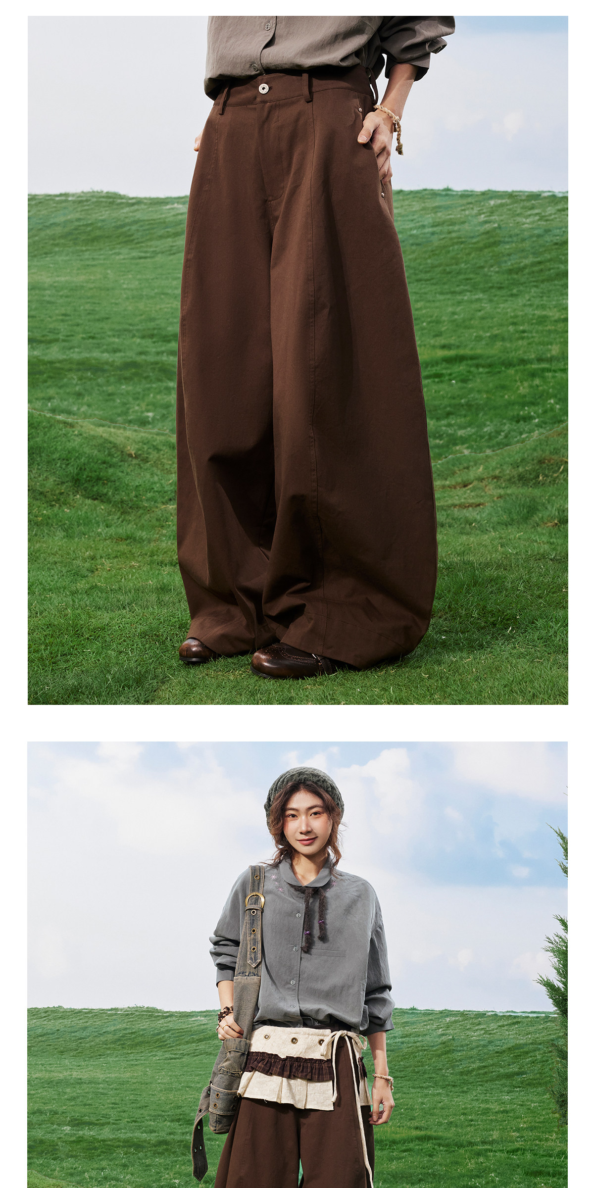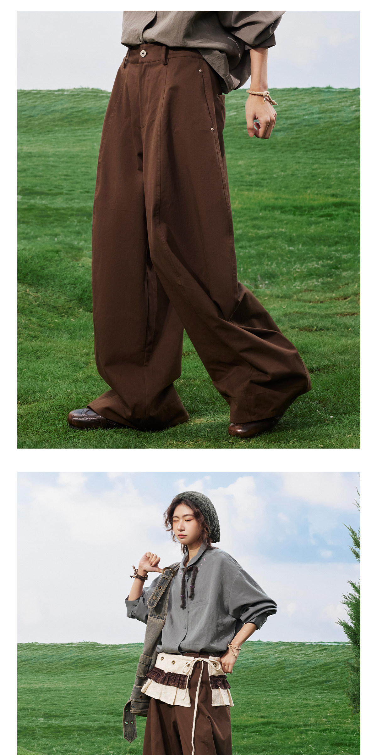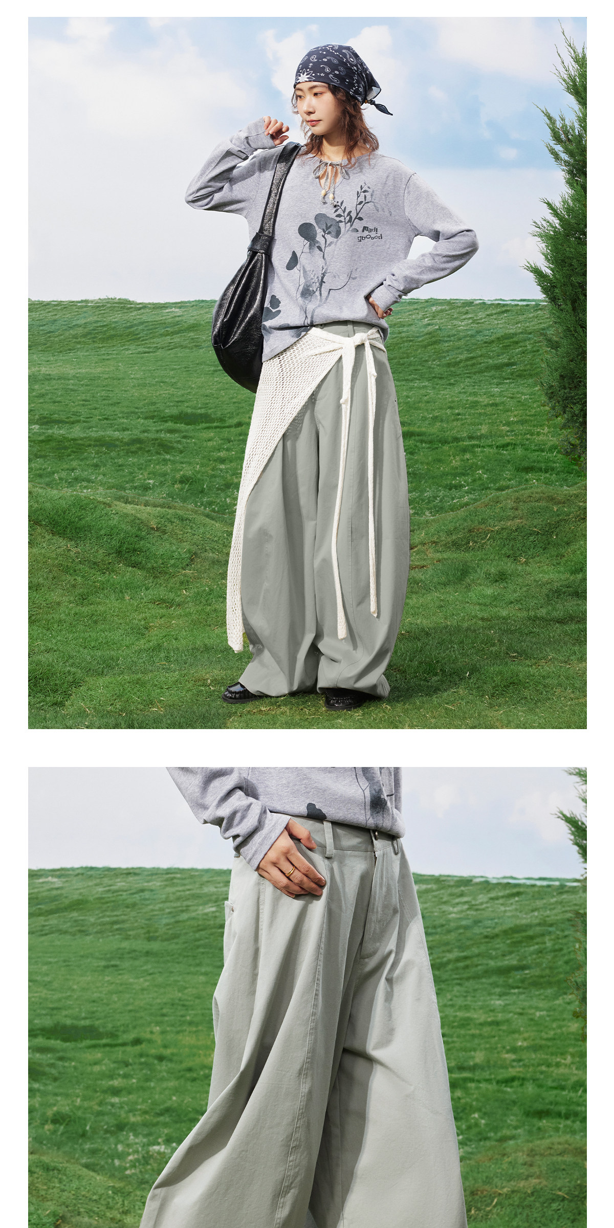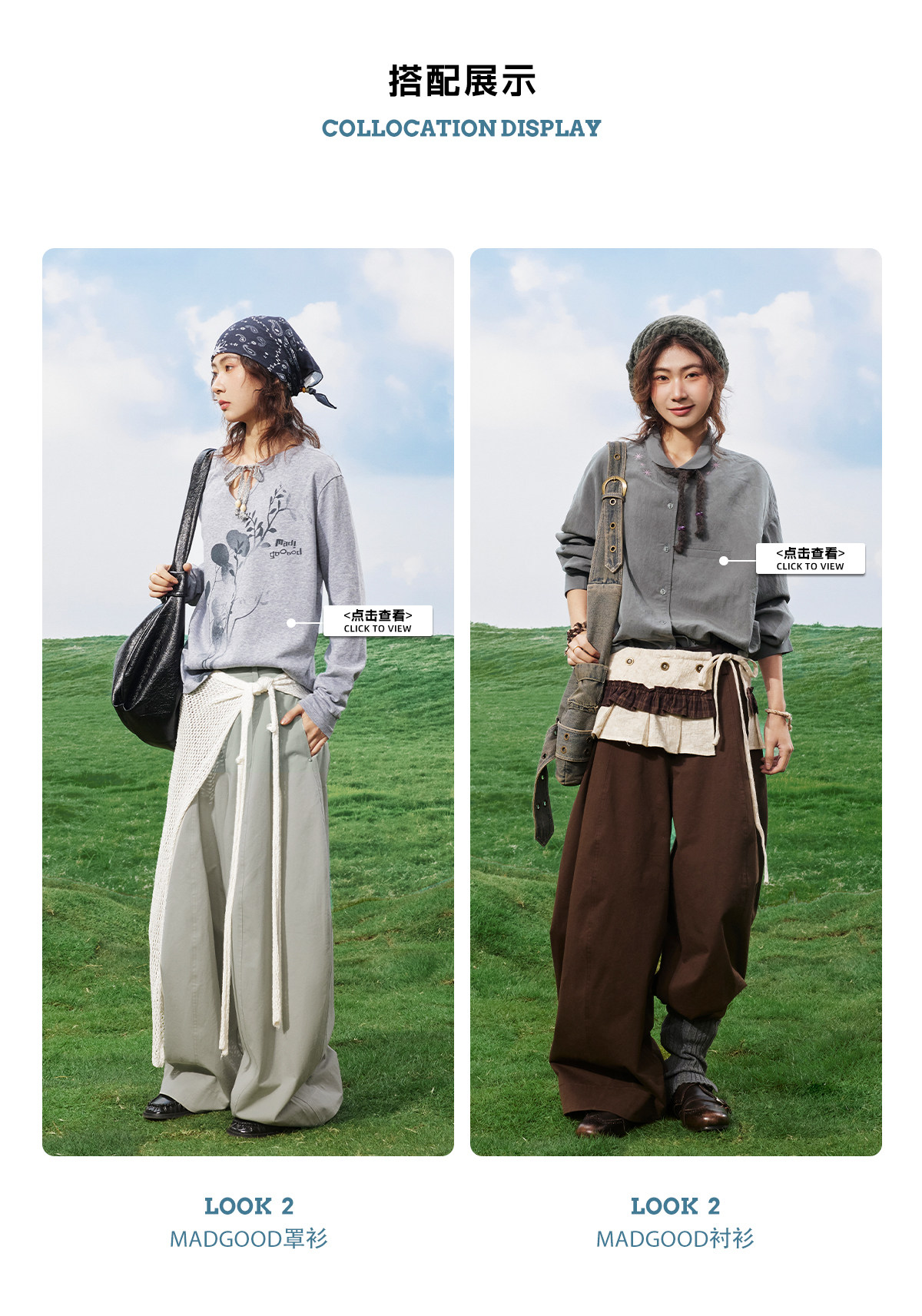马得工地/MDGDKZ211725/分割拼接纱卡香蕉裤