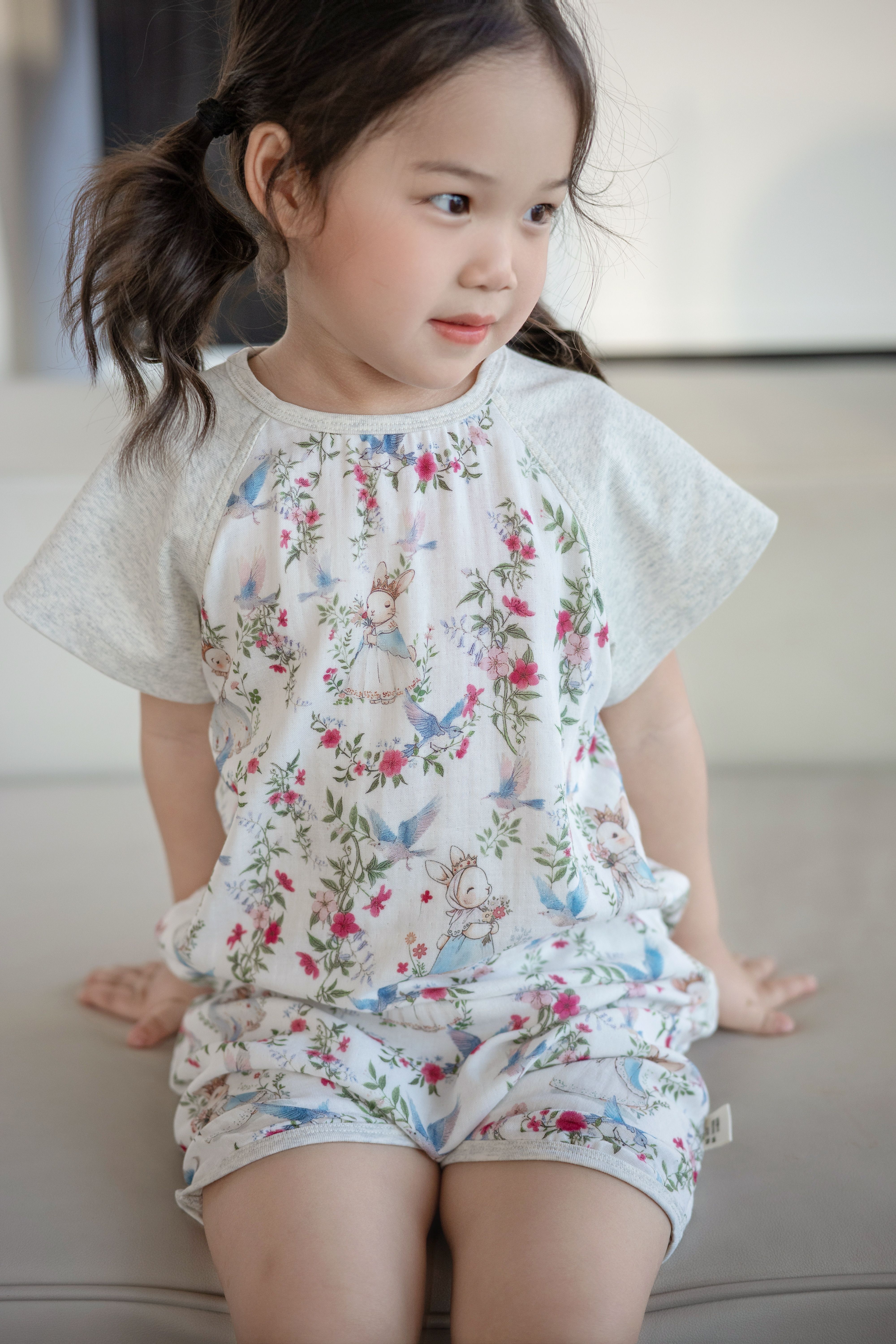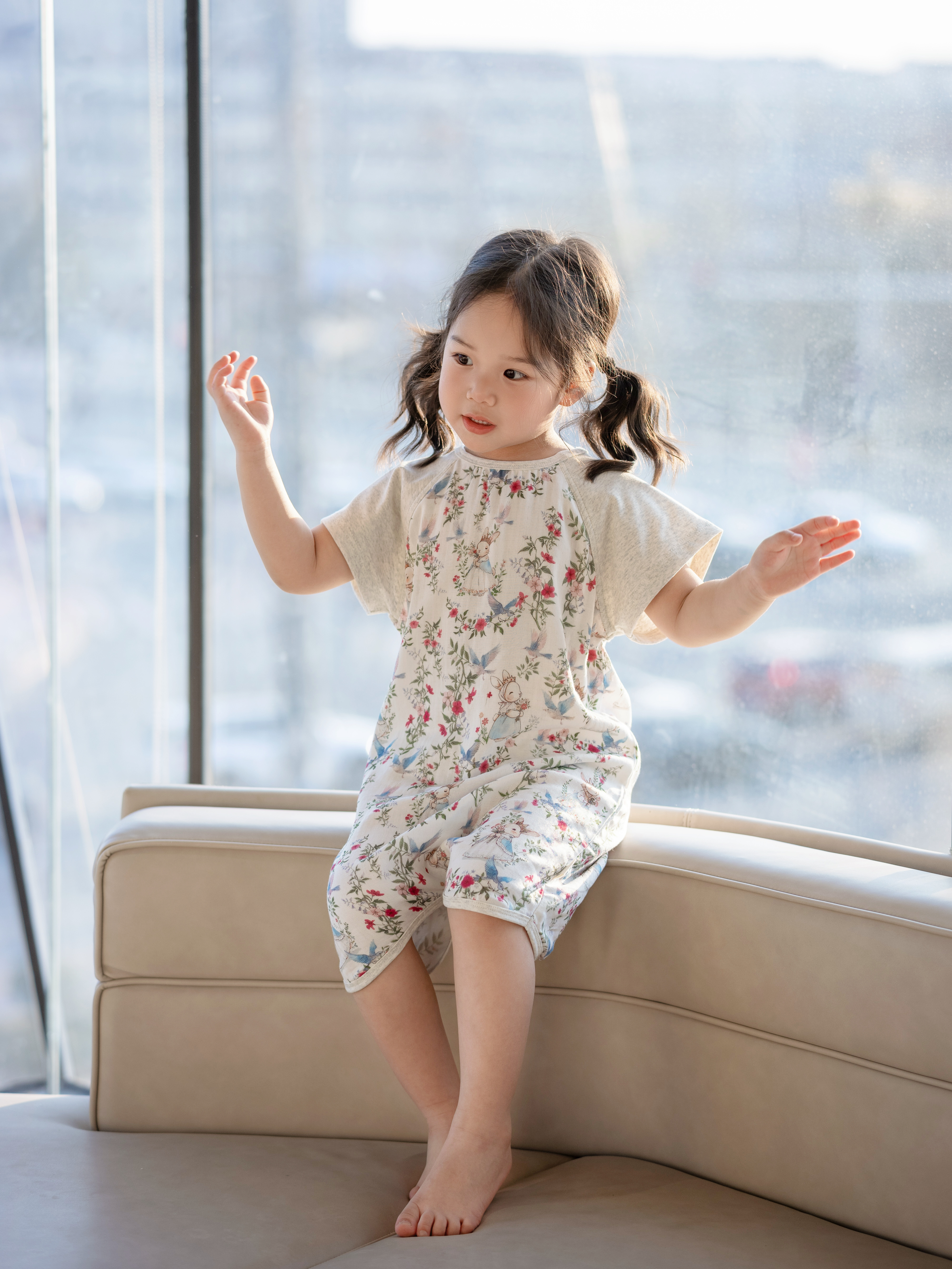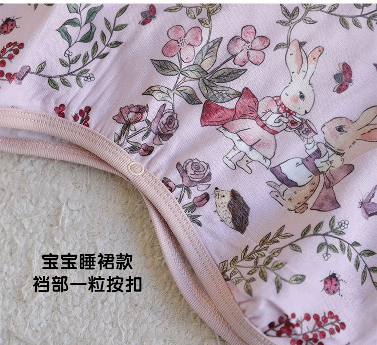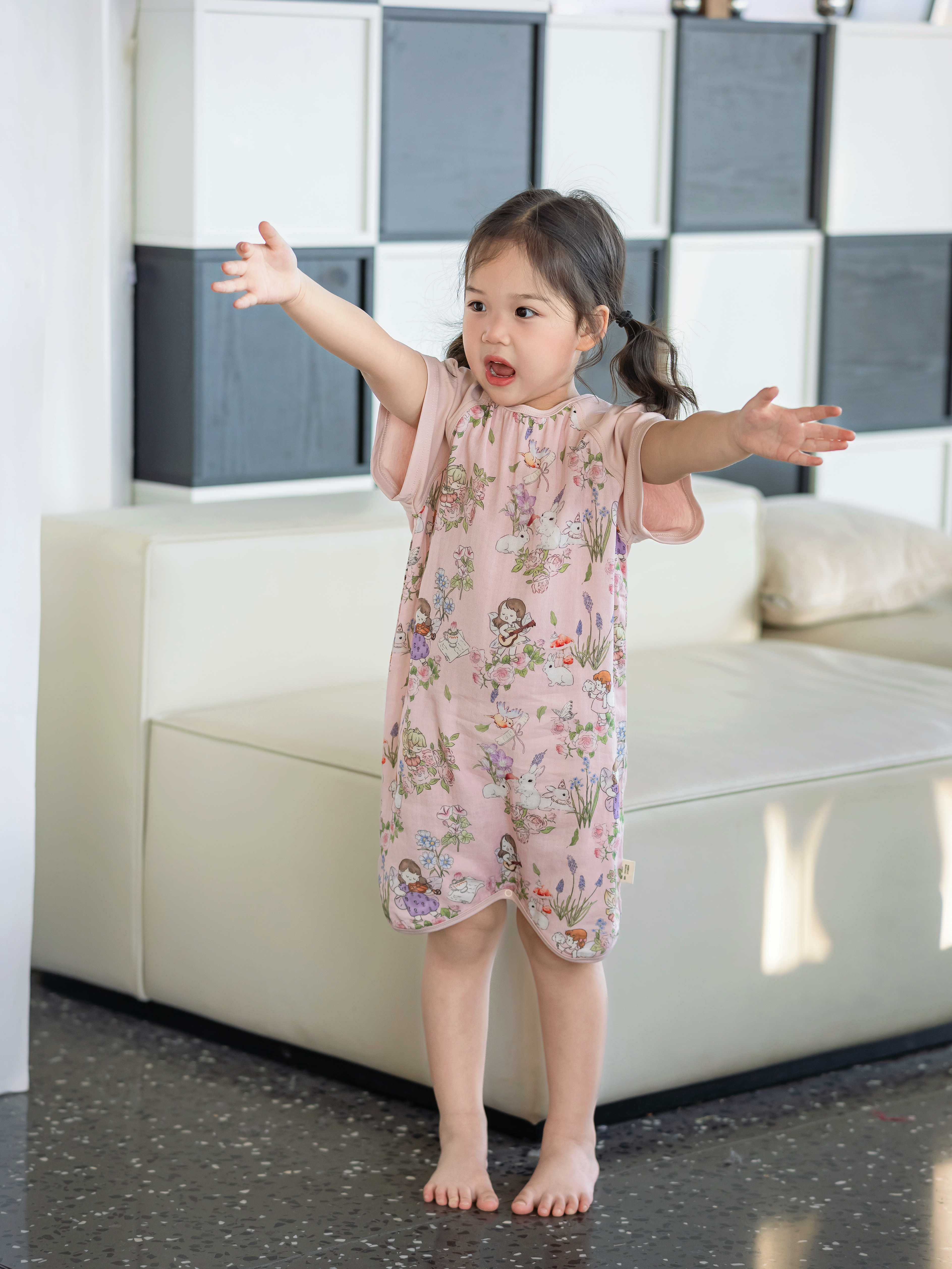 【云优选】BabyStormi 一粒扣睡裙 宝宝竹纤维棉纱短袖亲子女童睡衣儿童薄夏季(周六日不发货)