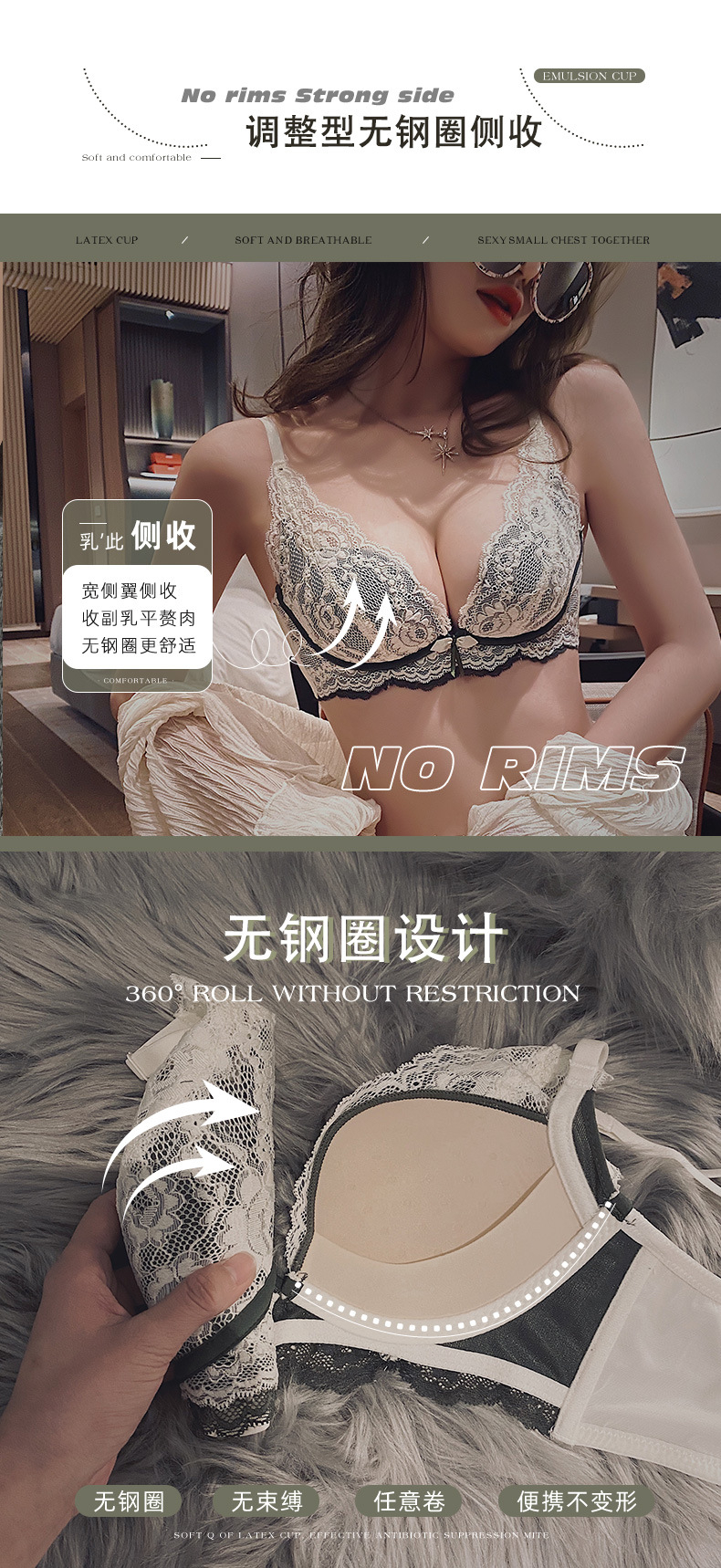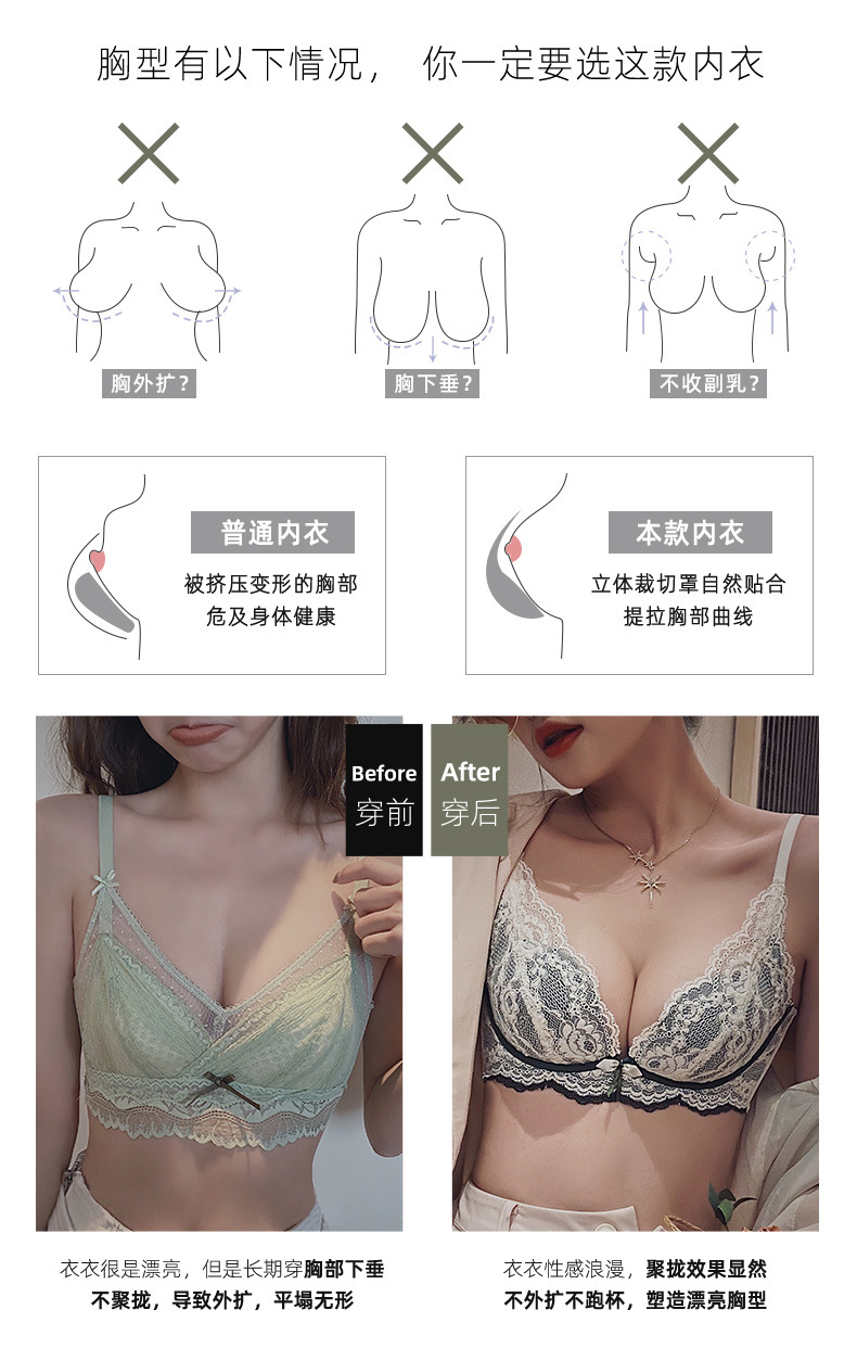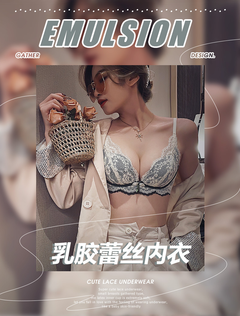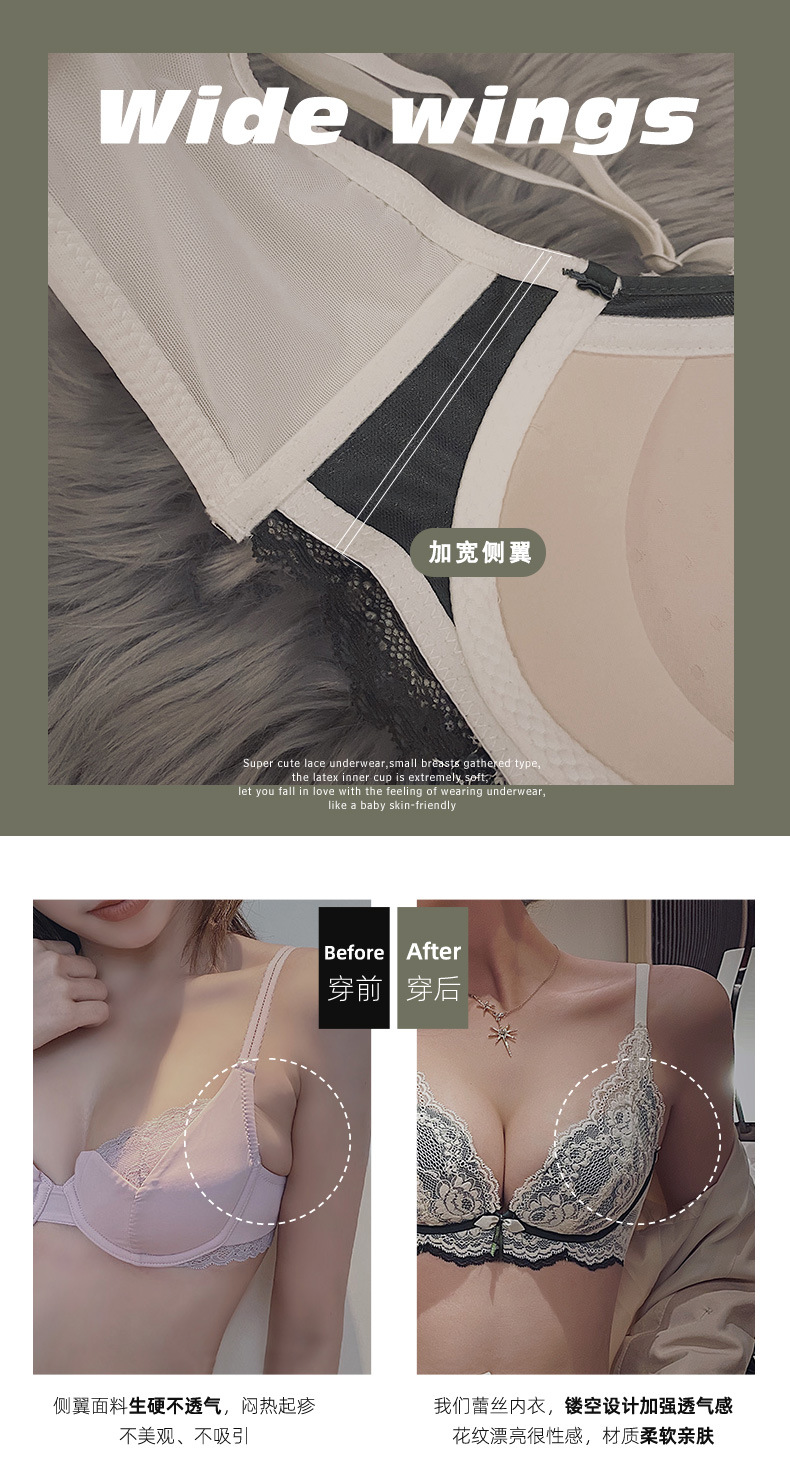 小胸聚拢内衣女士收副乳防下垂乳胶文胸加厚无钢圈防下垂胸罩bra