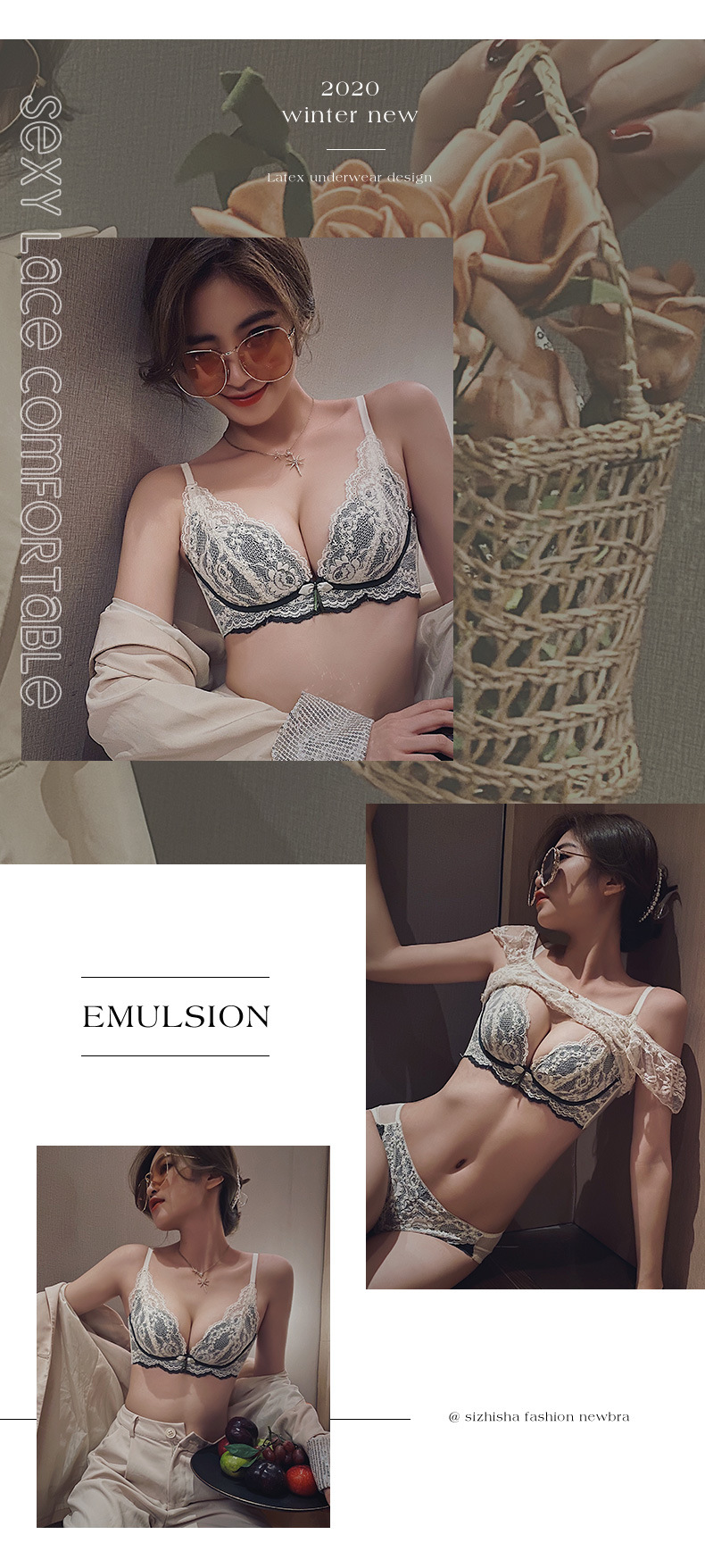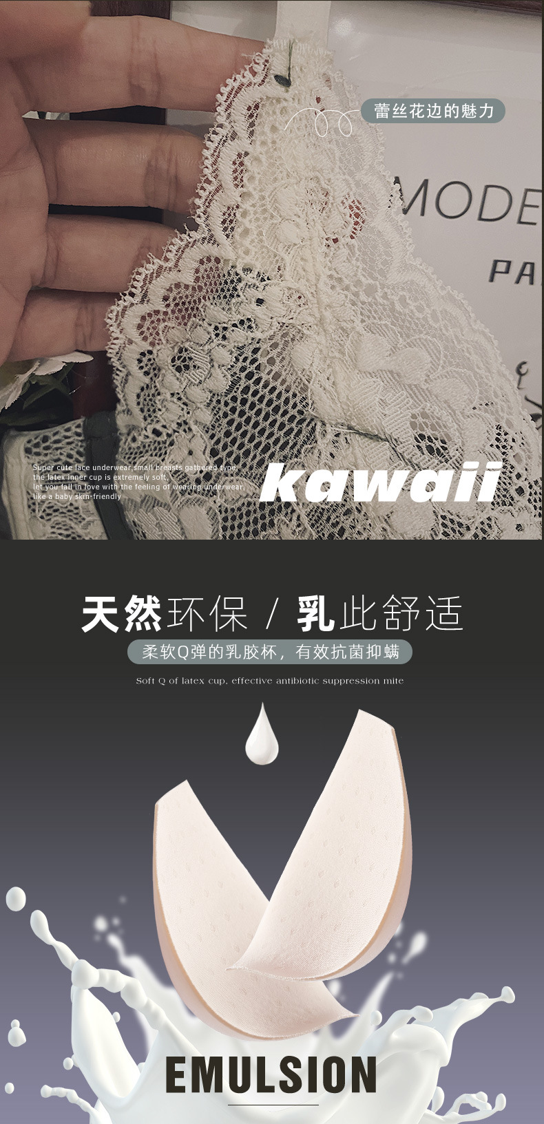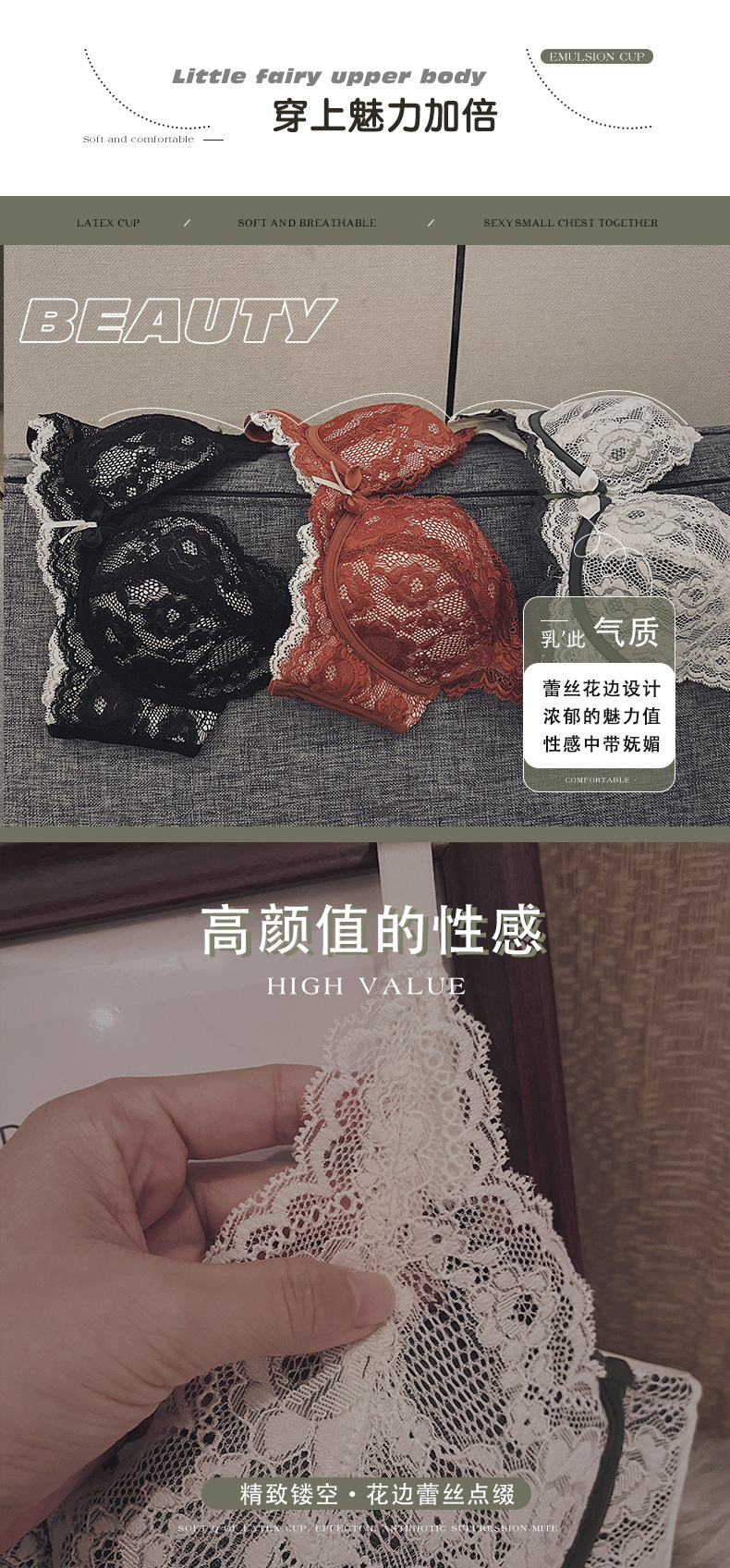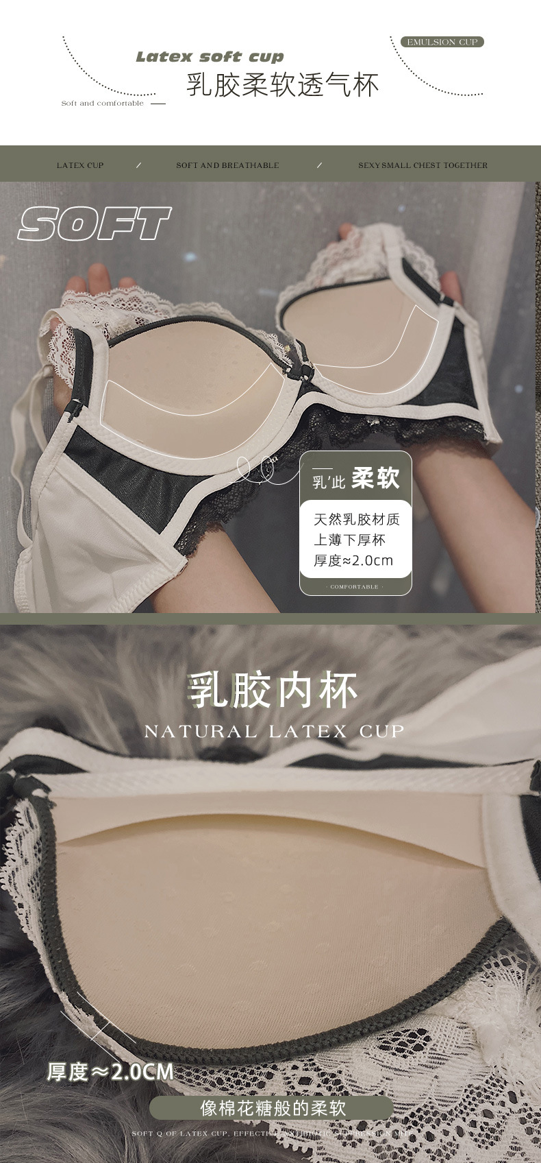 小胸聚拢内衣女士收副乳防下垂乳胶文胸加厚无钢圈防下垂胸罩bra