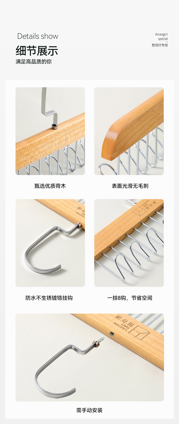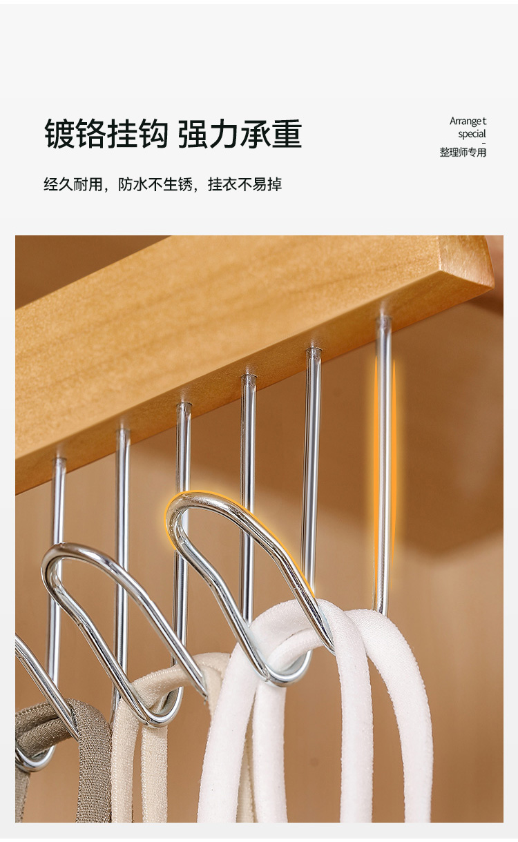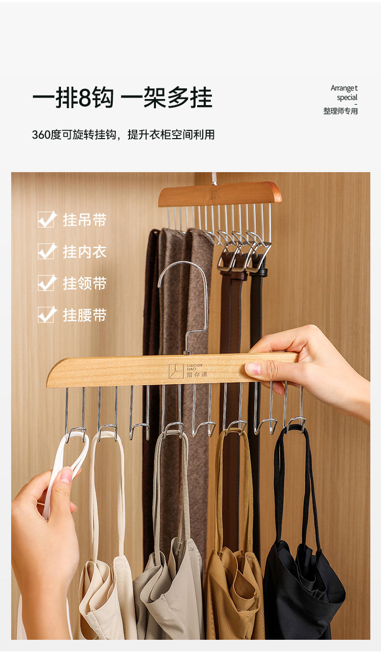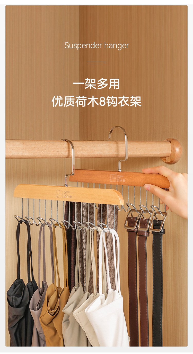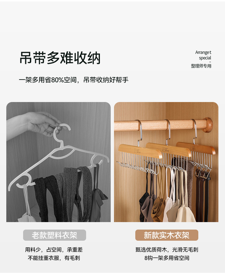 留存道木质吊带衣架多功能实木挂钩晾衣架背心内衣挂架家用收纳神器