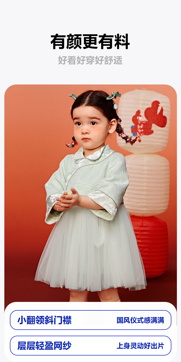 【新年季】迷你巴拉女童亲肤柔软新中式甜美网纱连衣裙拜年服