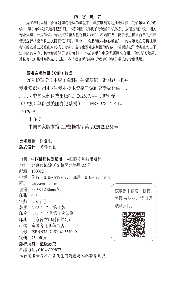 2026护理学(中级)单科过关随身记(附习题)—相关专业知识【护理学(中级)单科过关随身记系列】9787521453799中国医药科技出版社