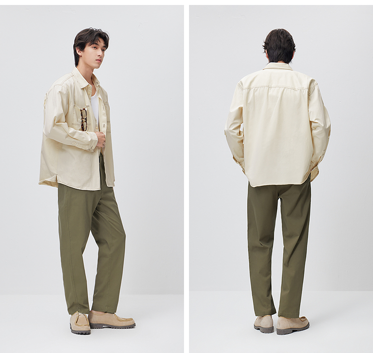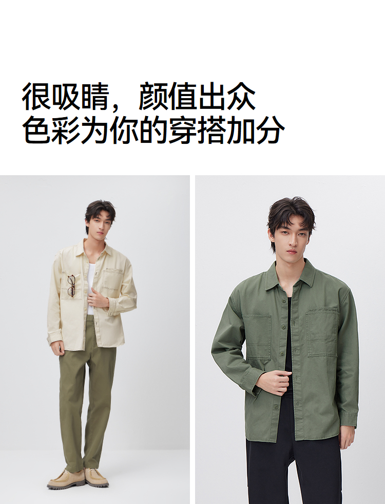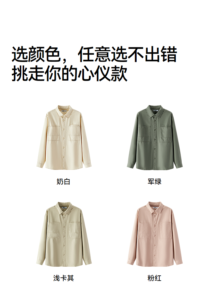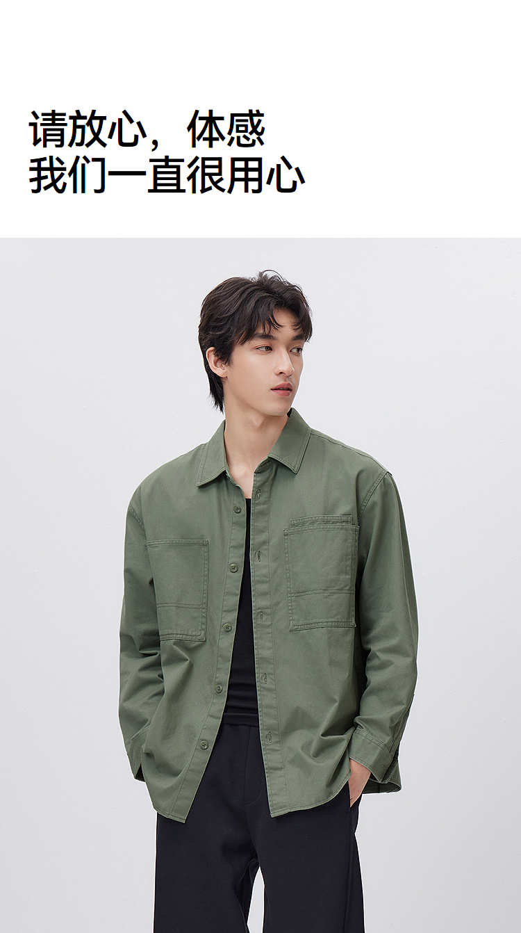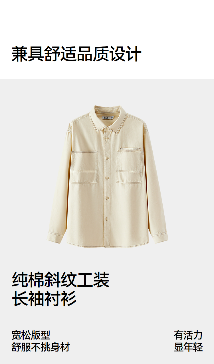 森马长袖衬衫男春季纯棉斜纹工装衬衣宽松翻领磨毛衣外套通勤休闲