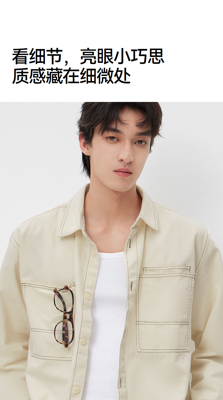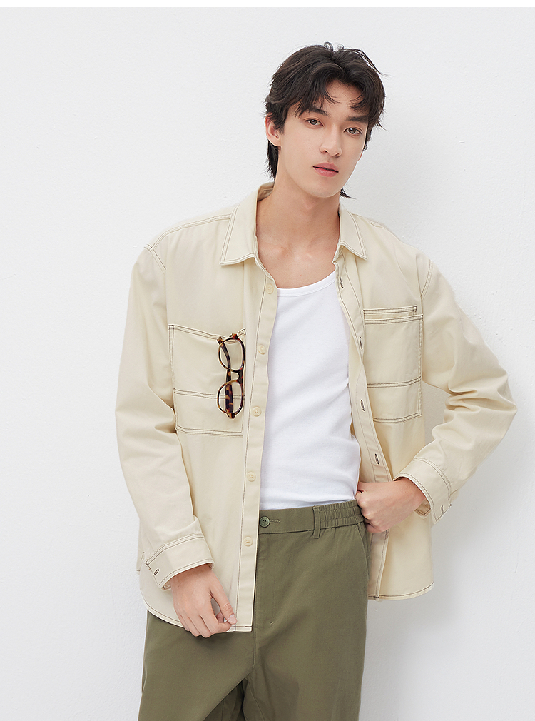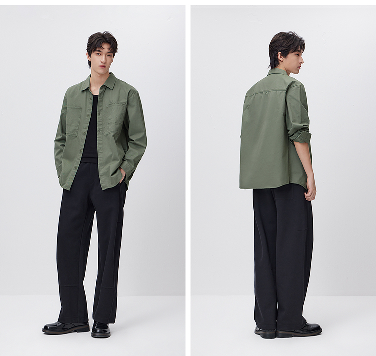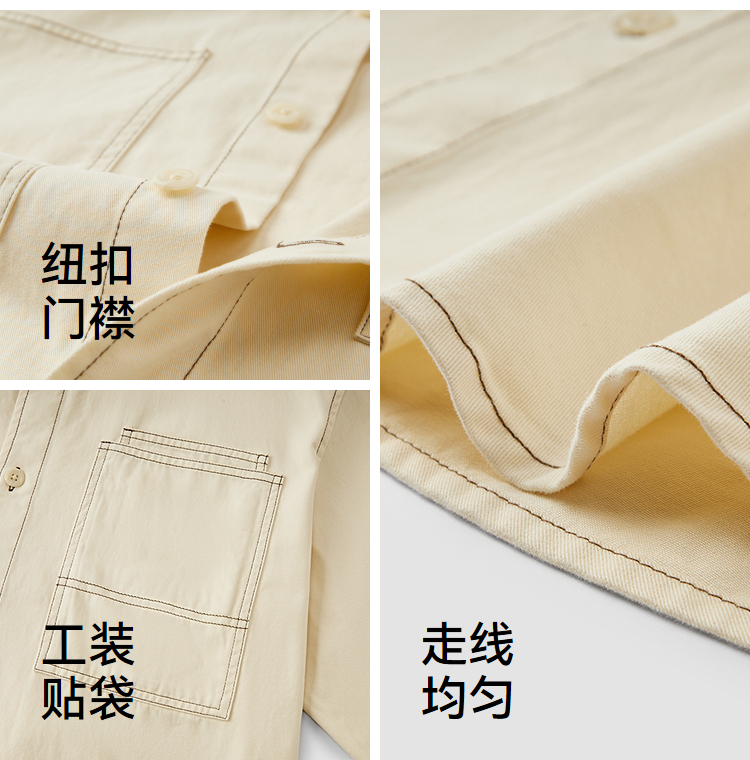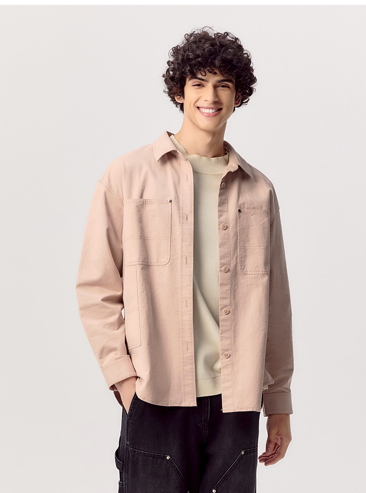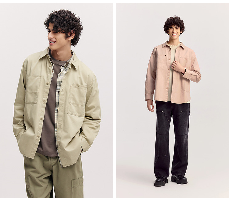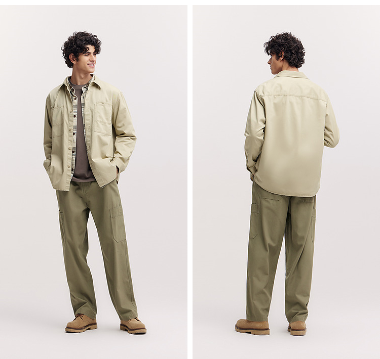 森马长袖衬衫男春季纯棉斜纹工装衬衣宽松翻领磨毛衣外套通勤休闲