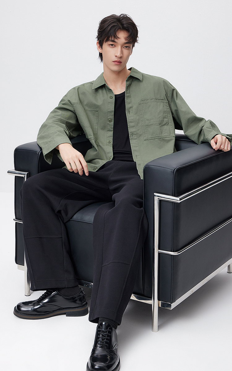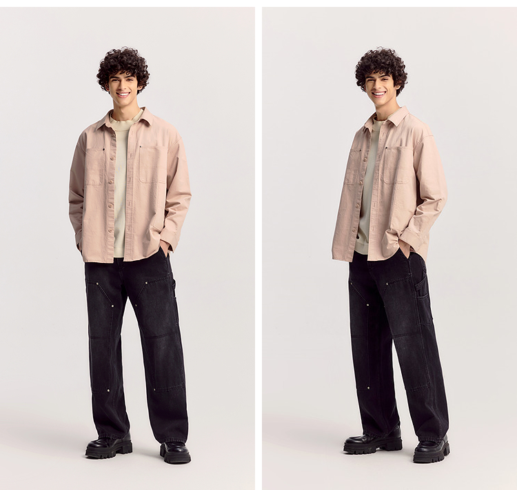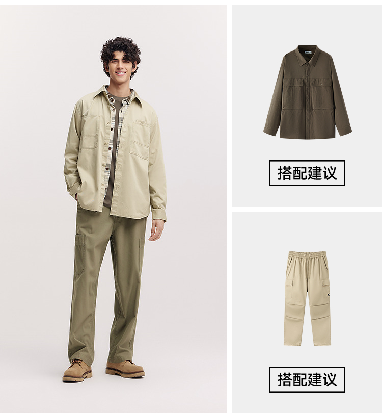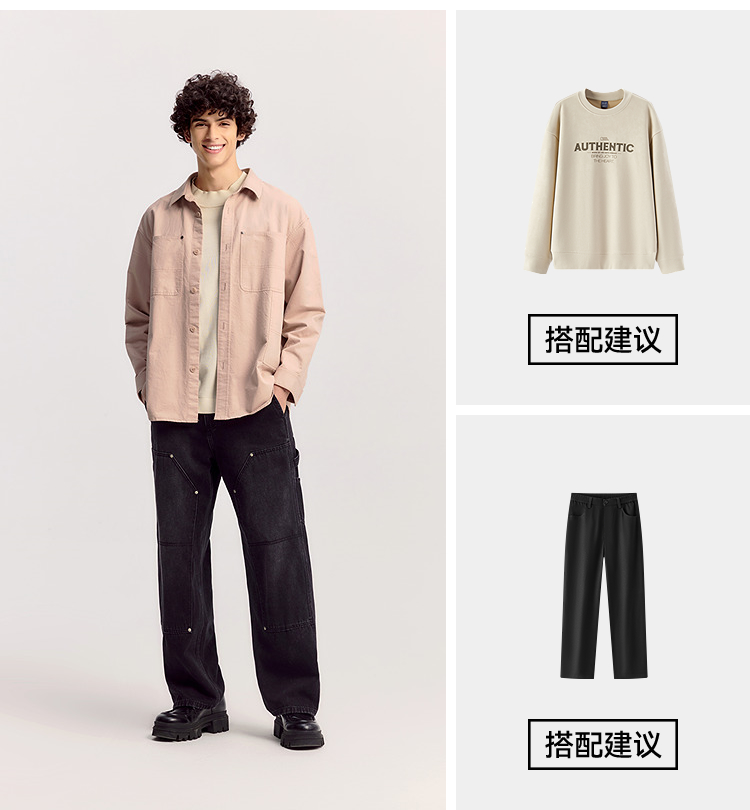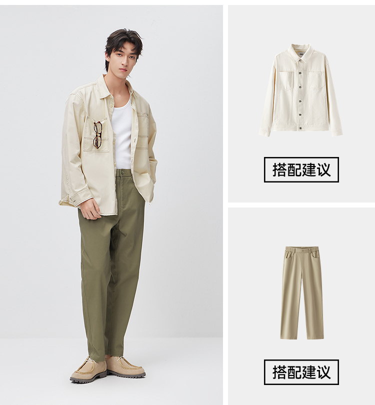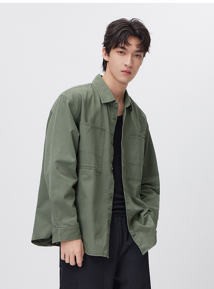 森马长袖衬衫男春季纯棉斜纹工装衬衣宽松翻领磨毛衣外套通勤休闲
