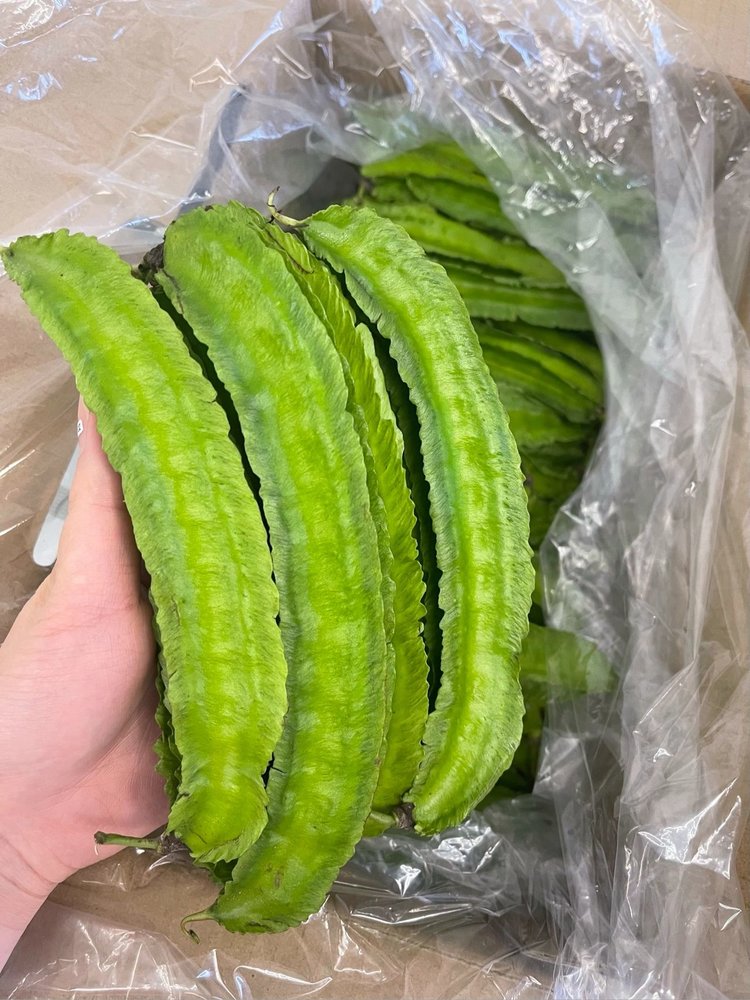 四角豆的豆荚呈绿色,形状呈长条方形四面体