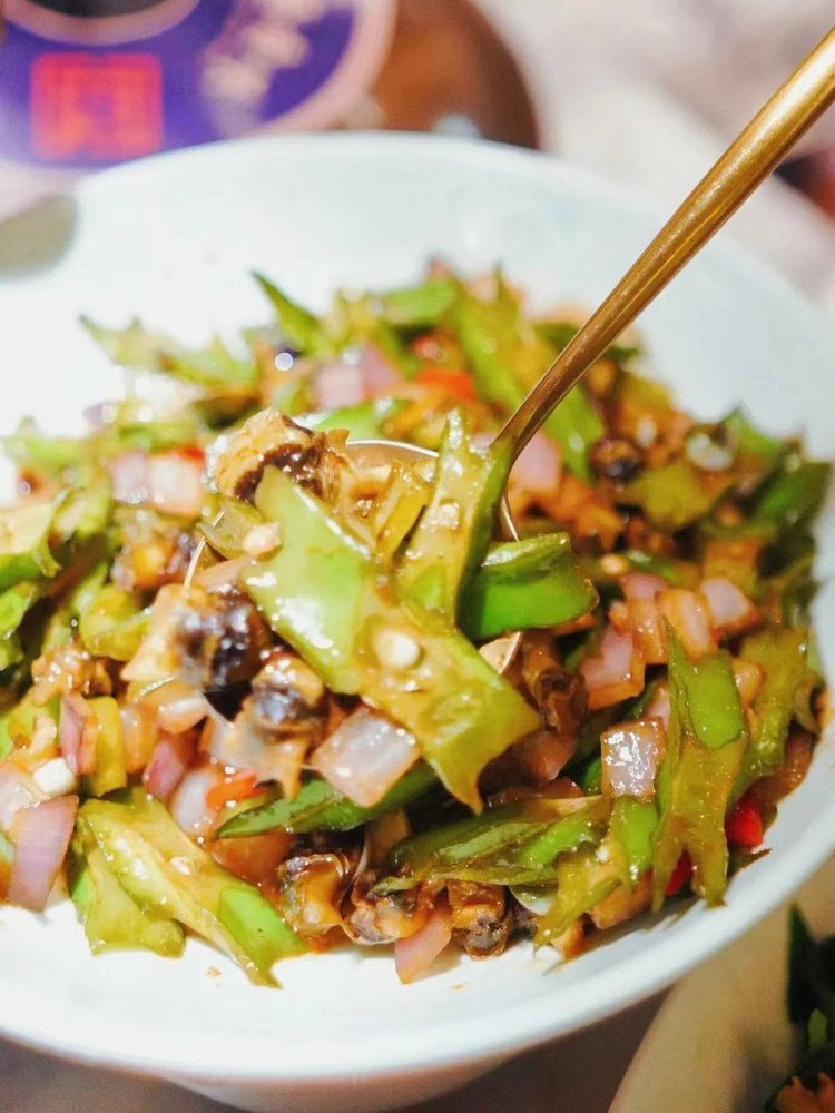 海南人还会结合当地的海鲜去丰富它的口感,把眼睛螺、虾干、瑶柱或小鱼干和四角豆一起爆炒,再加入辣椒,麻辣鲜香,别有一番风味啊。