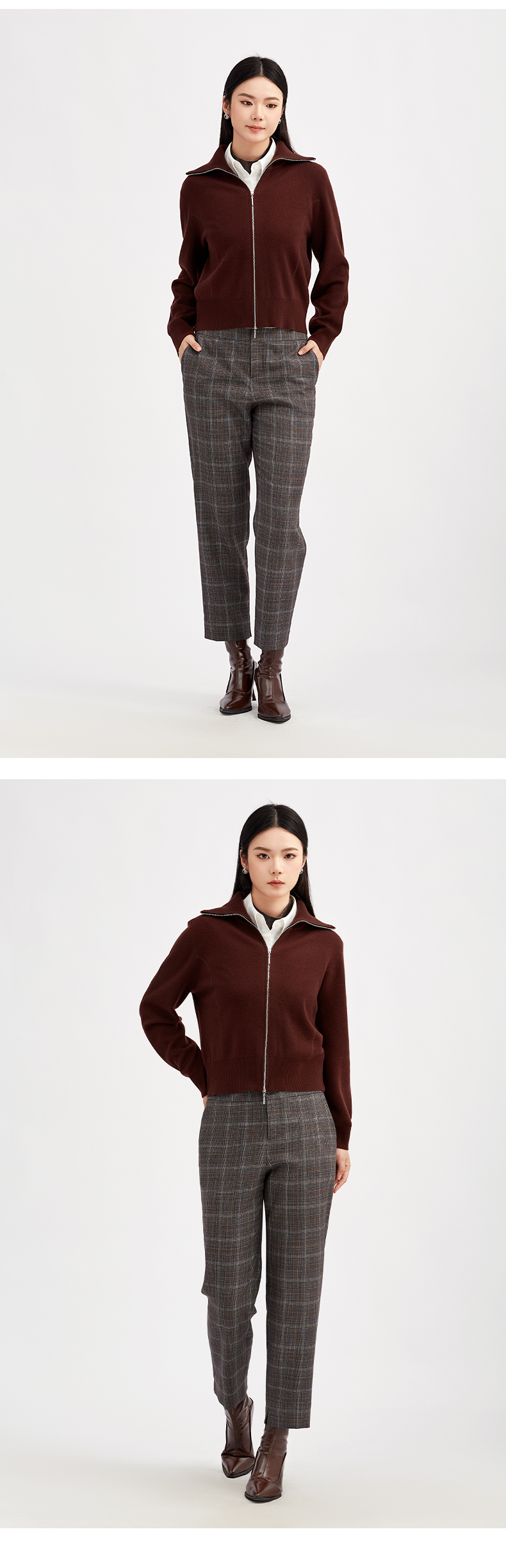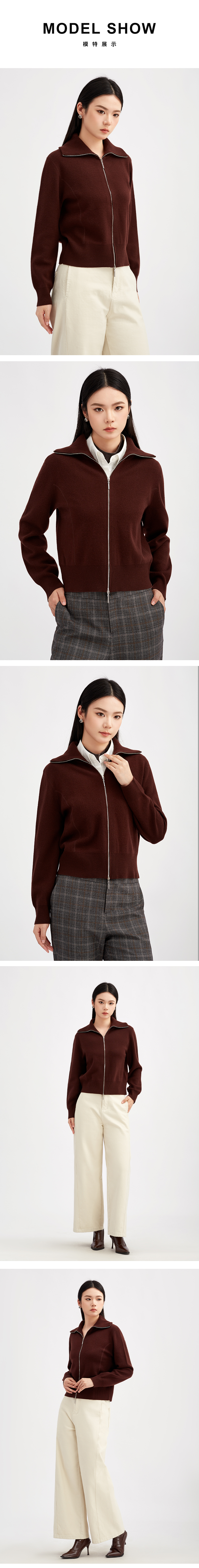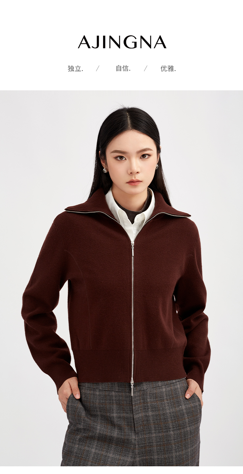【商场同款】阿菁娜冬季新款精纺羊绒开衫可立翻领双头拉链修身显瘦A30D318019