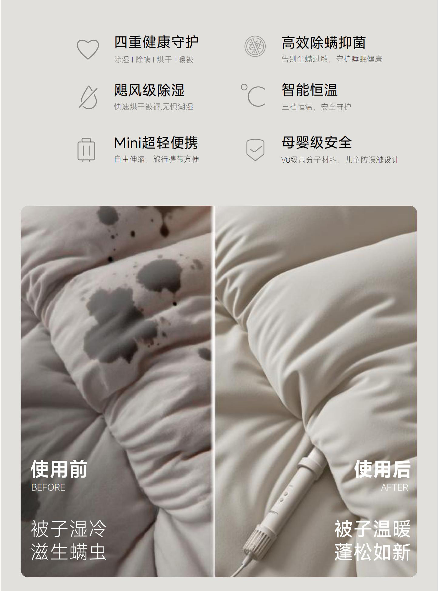 疯抢中!!下单赠高档硅胶烘鞋器+烘衣袋【素派mini便携除螨多功能烘被机】三种模式 可伸缩设计 儿童防误触设计 守护全家健康