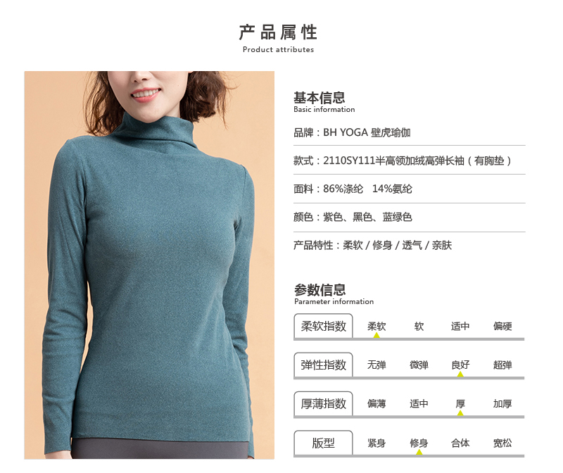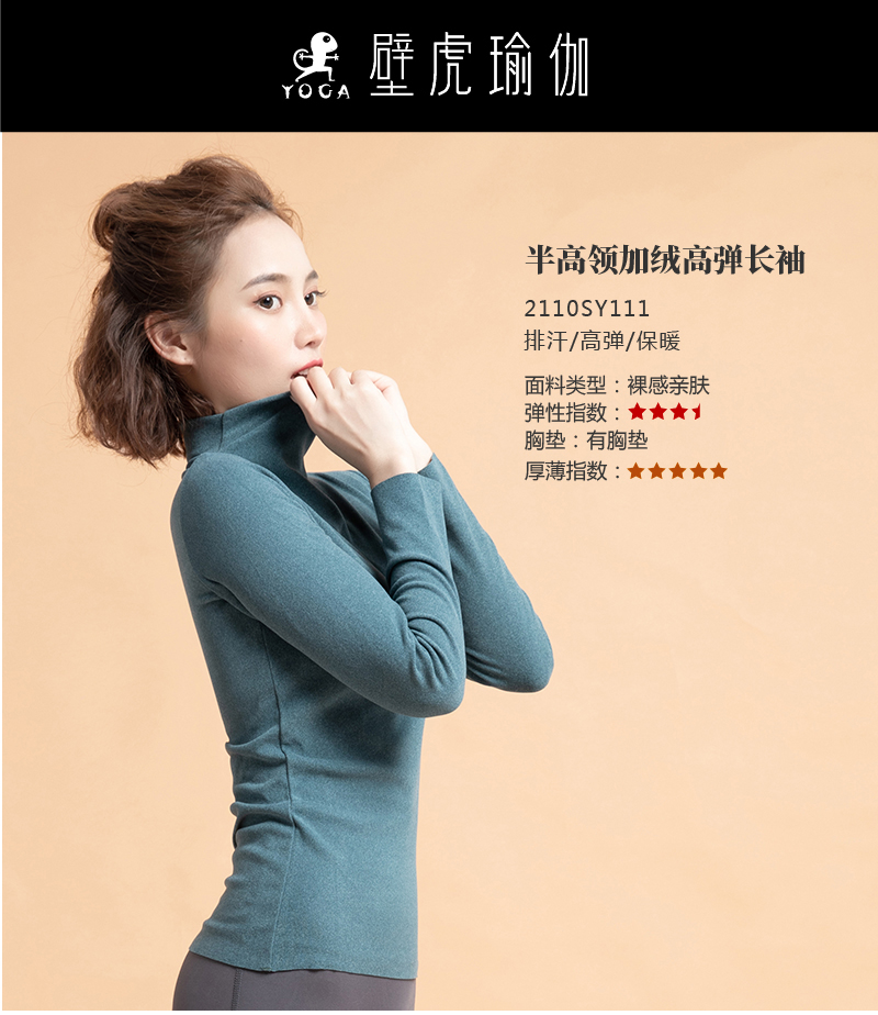 【七十二小时发货】壁虎瑜伽【2110SY0111】半高领加绒高弹长袖(有胸垫)