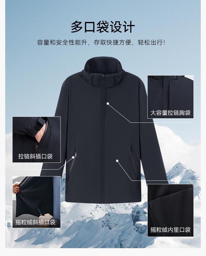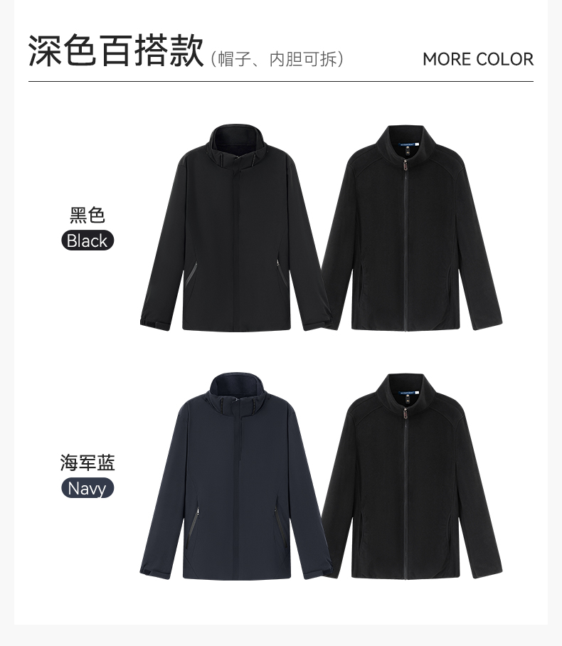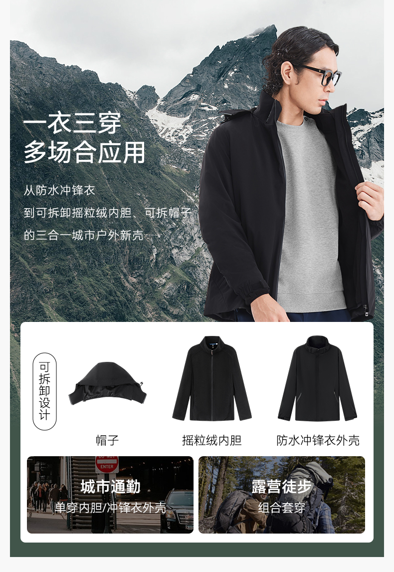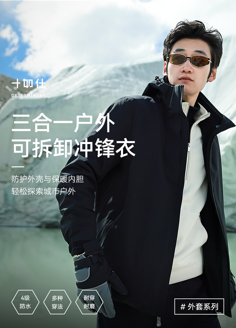 十如仕梭织防水三合一加绒保暖城市户外冲锋衣-OW07