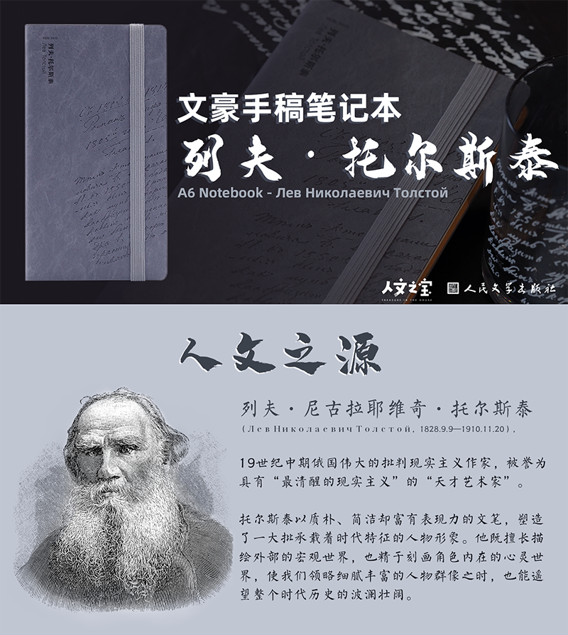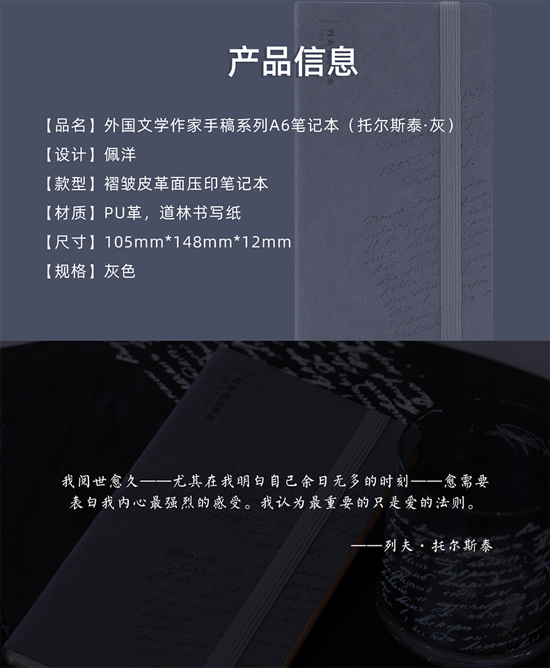 【人文之宝】外国文学作家手稿系列A6笔记本(托尔斯泰-灰色)
