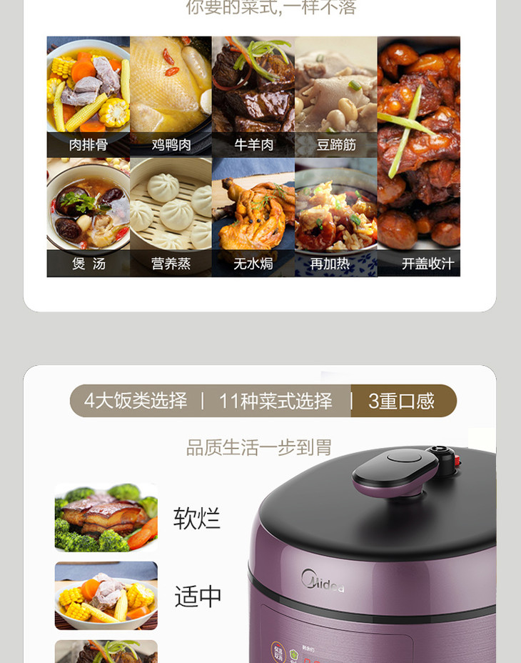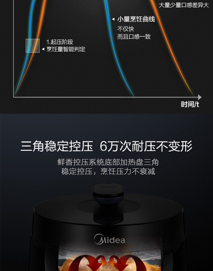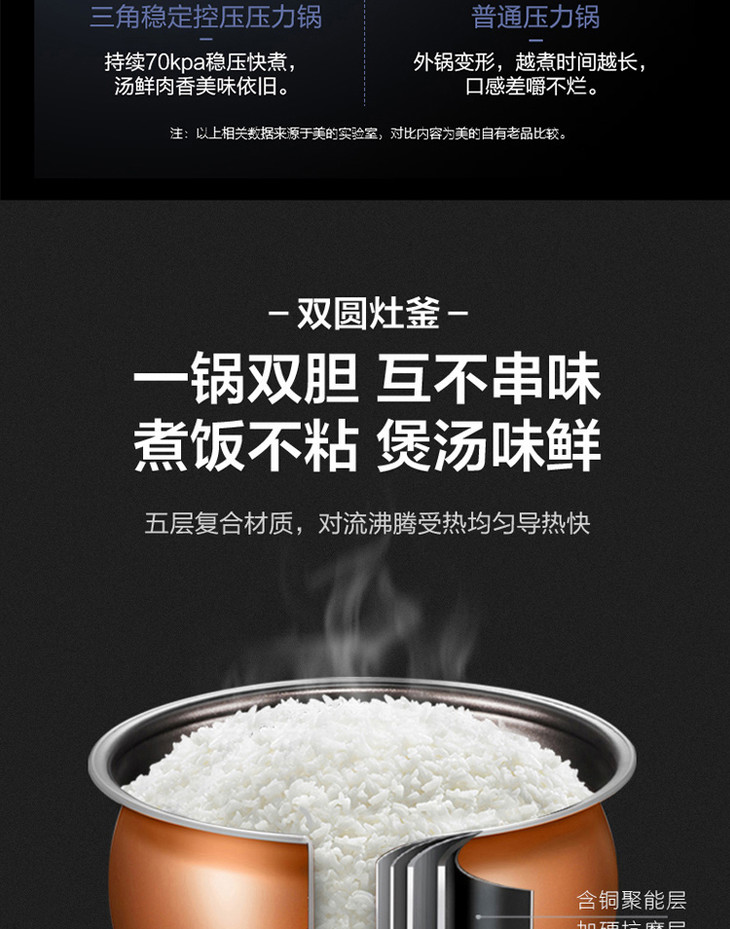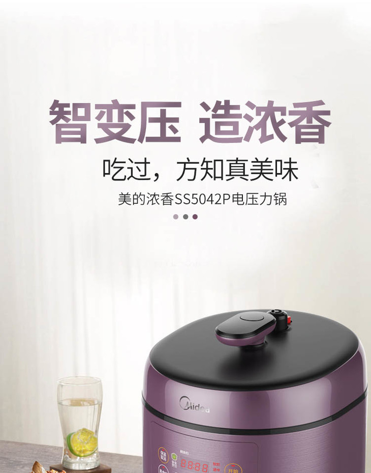 美的(509089)电压力锅SS5042P 一锅双胆 智能预约 家用多功能煮饭煲汤高压锅 5L大容量