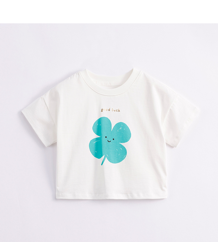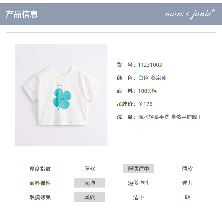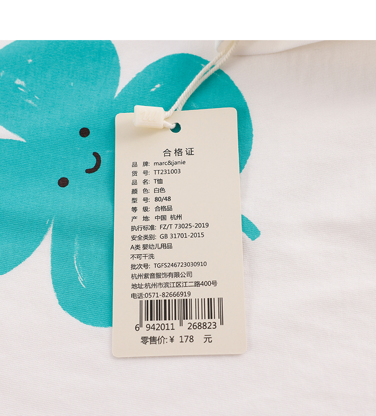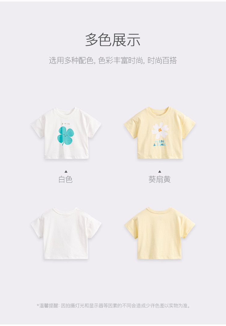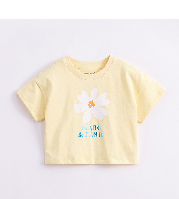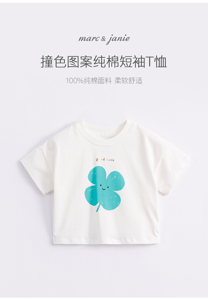 马克珍妮夏装 女童撞色图案纯棉短袖T恤231003