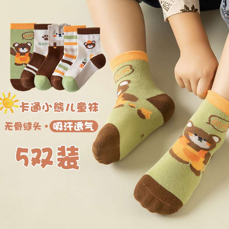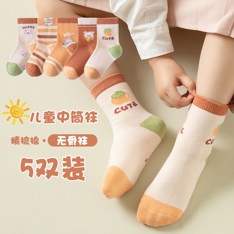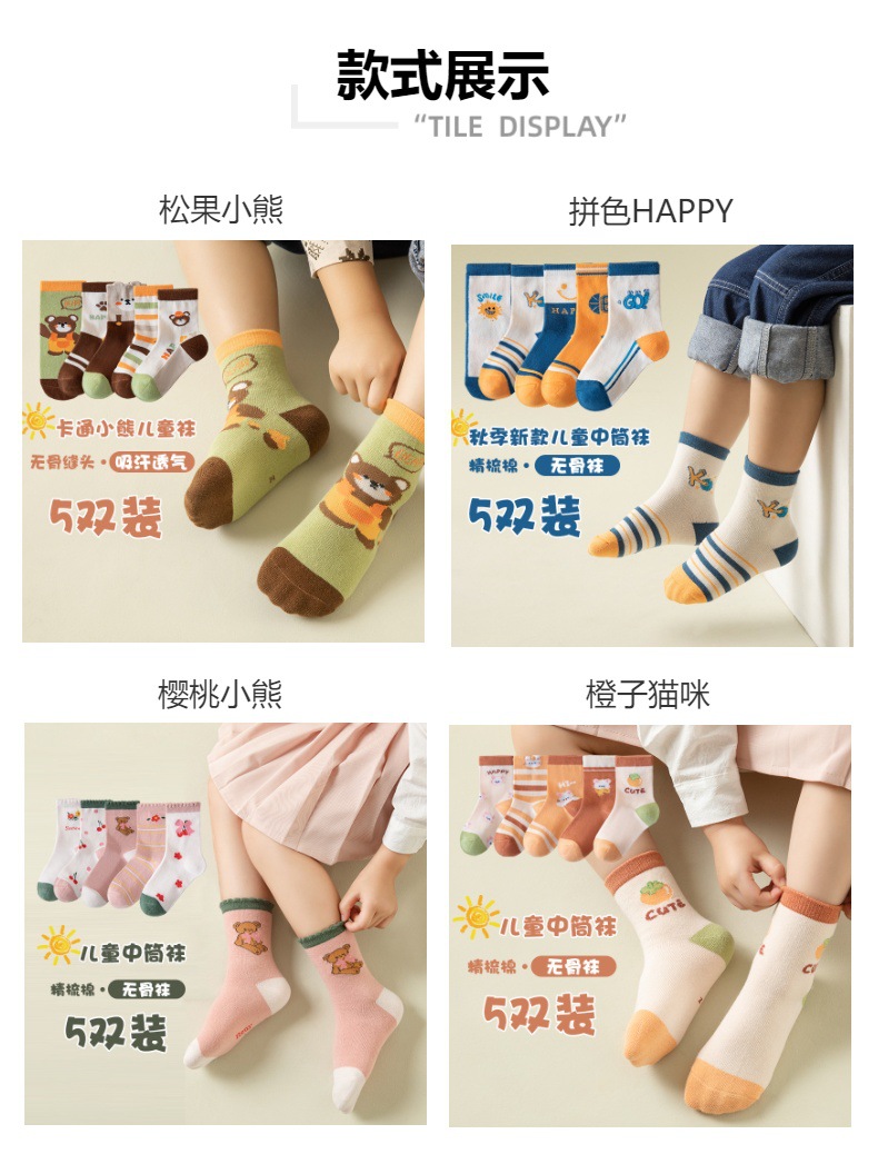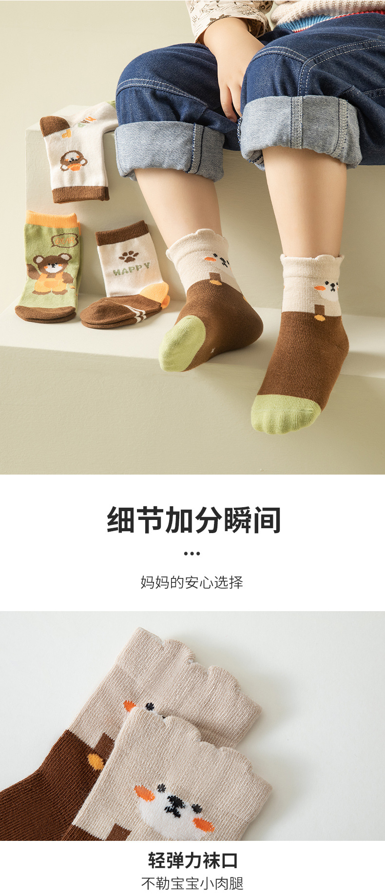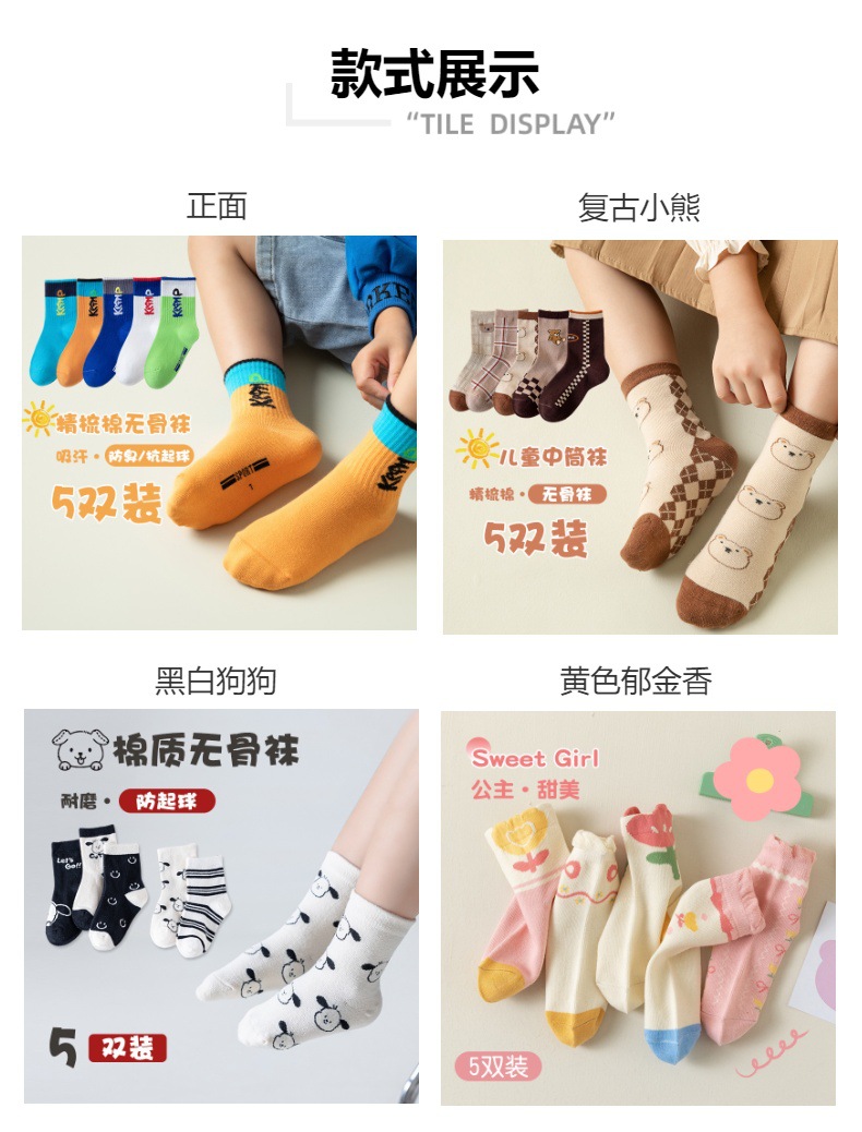 【YW】无忧购5双装儿童袜子男女童棉质卡通可爱(截单后3-5天发货)