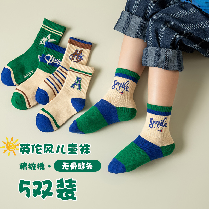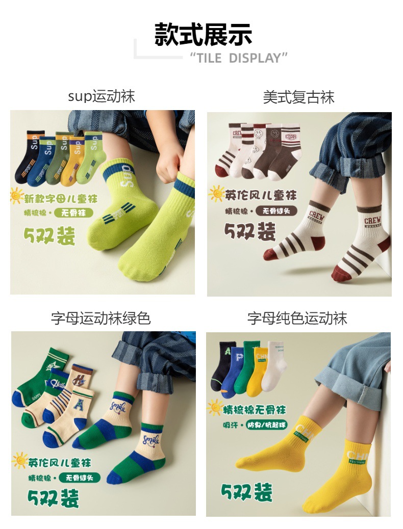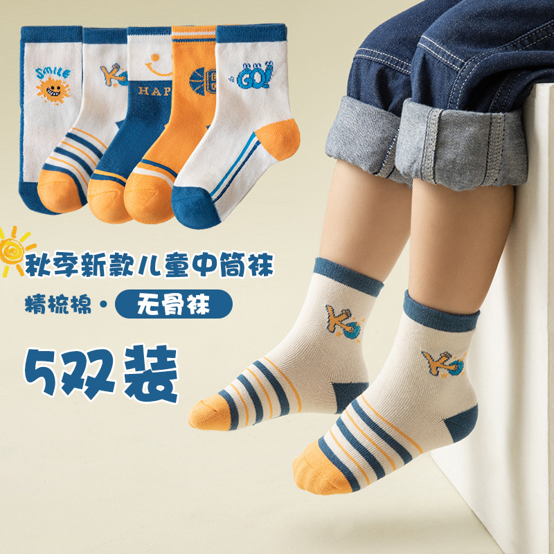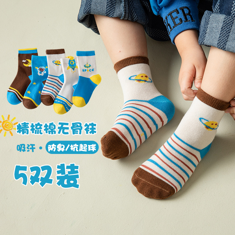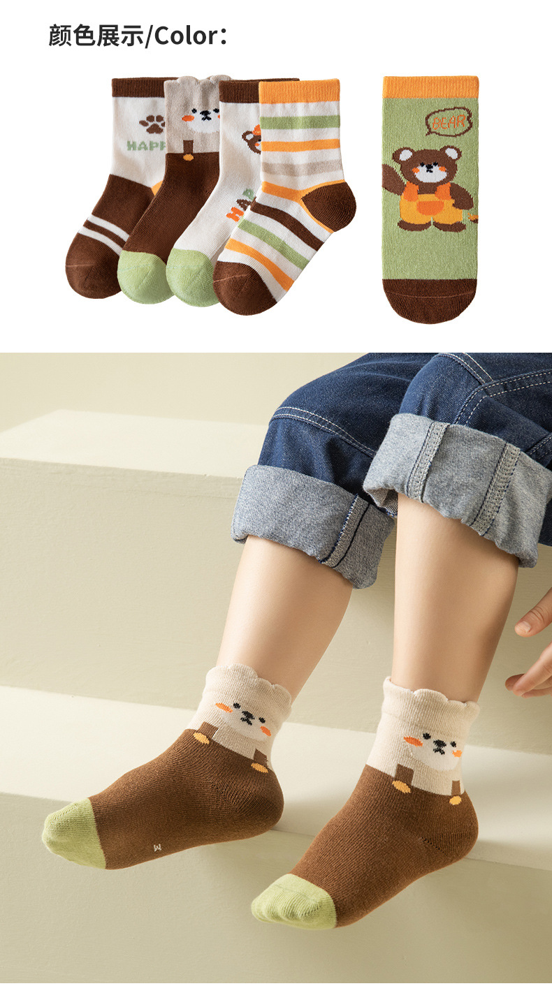 【YW】无忧购5双装儿童袜子男女童棉质卡通可爱(截单后3-5天发货)