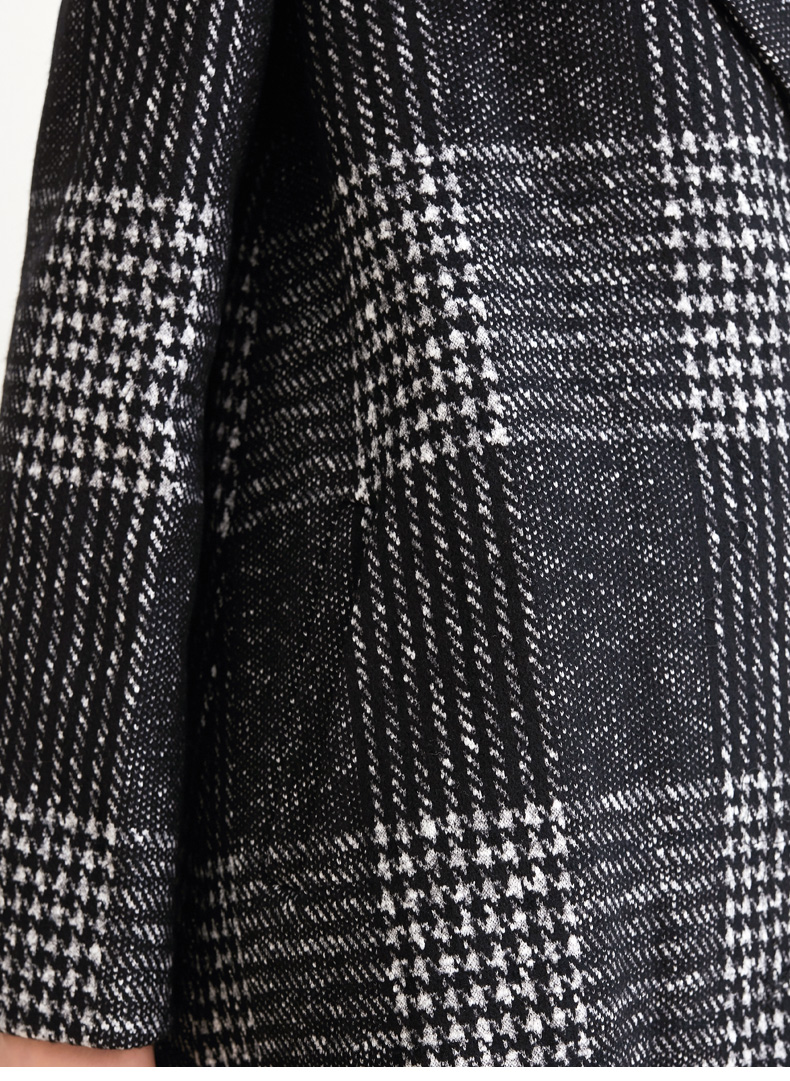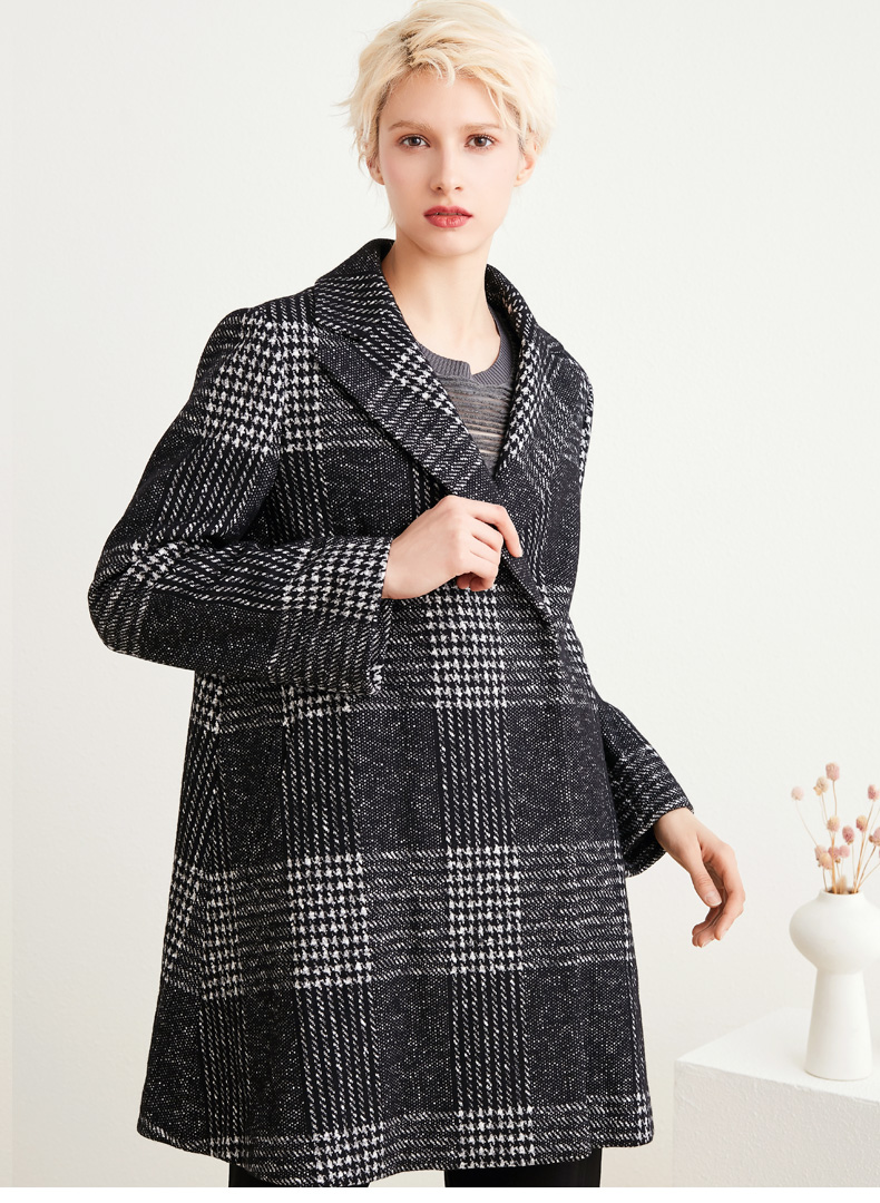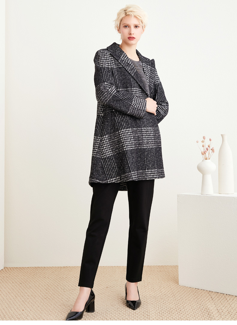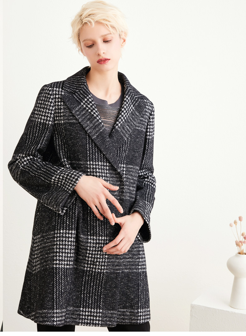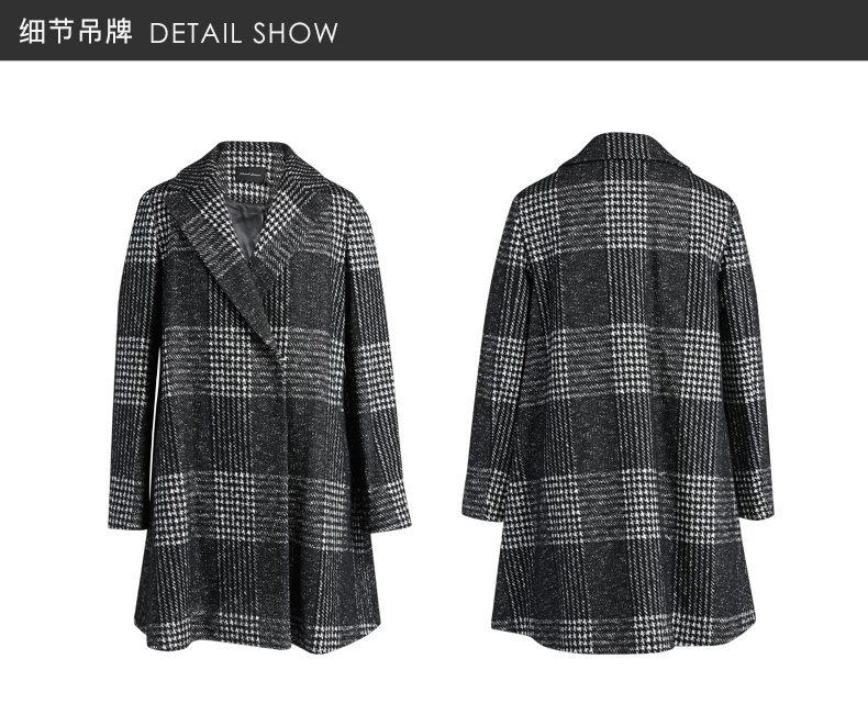 圣黛茜女装黑色格子状羊毛大衣秋冬时尚大衣外套DP83CH01B3