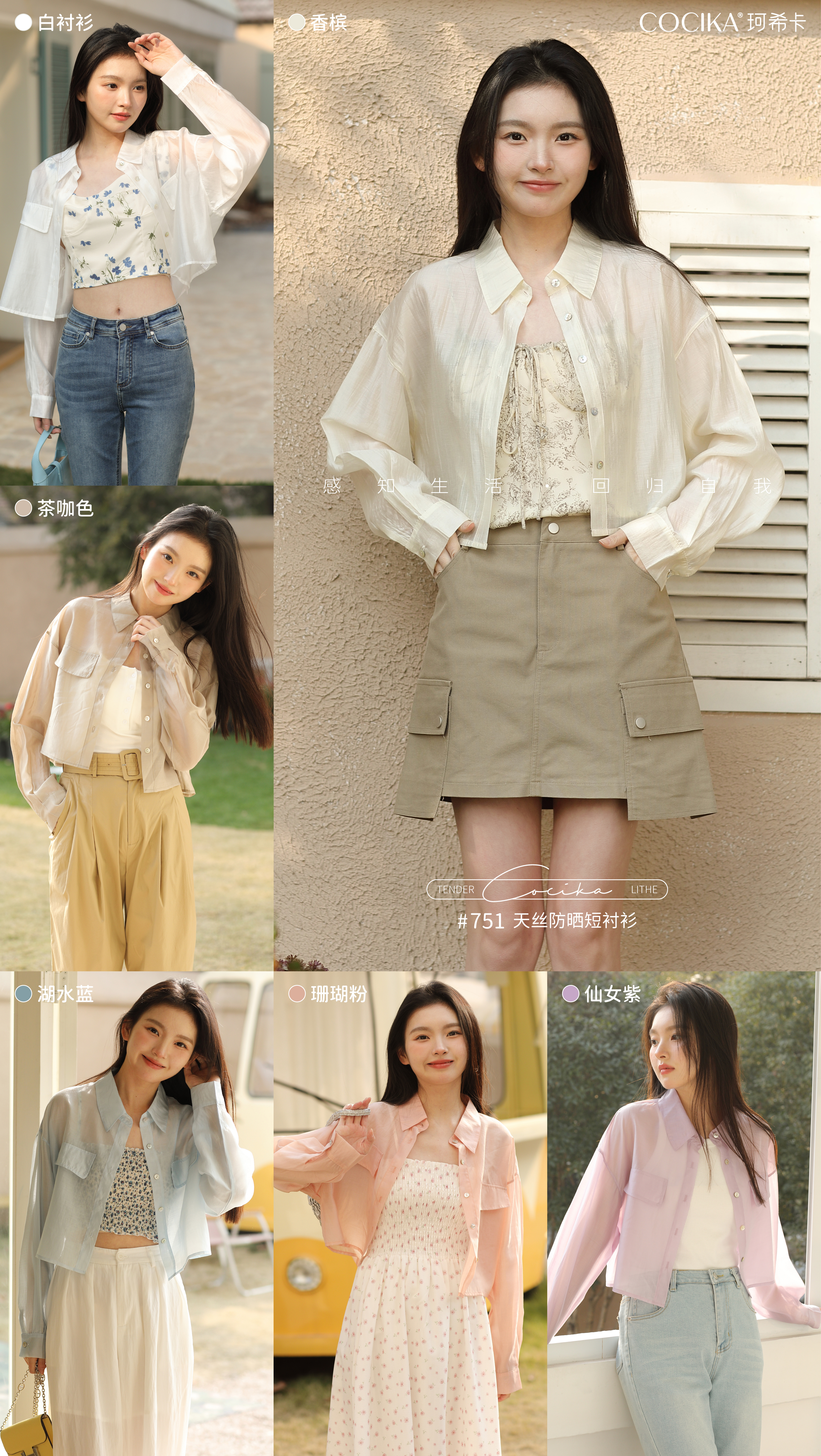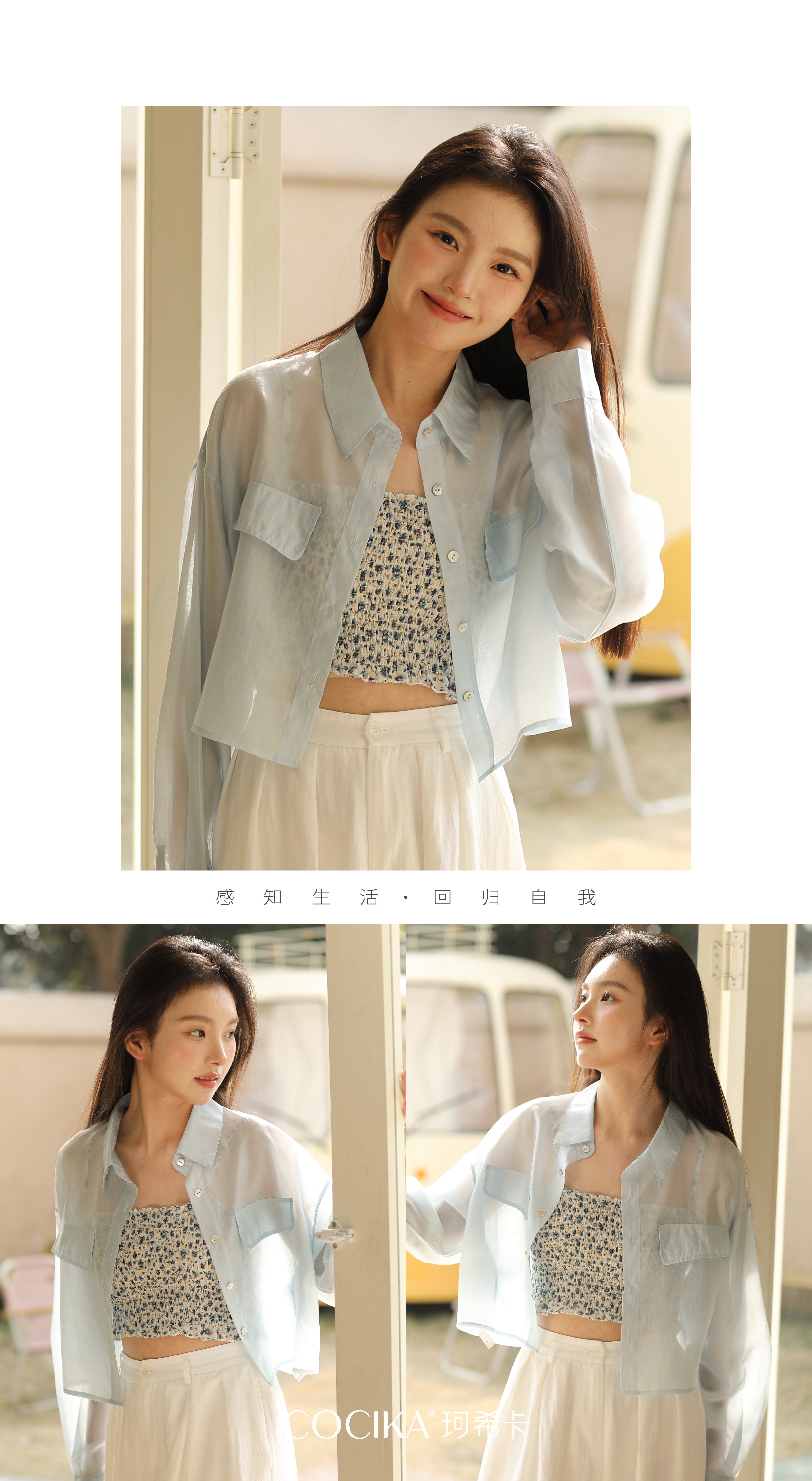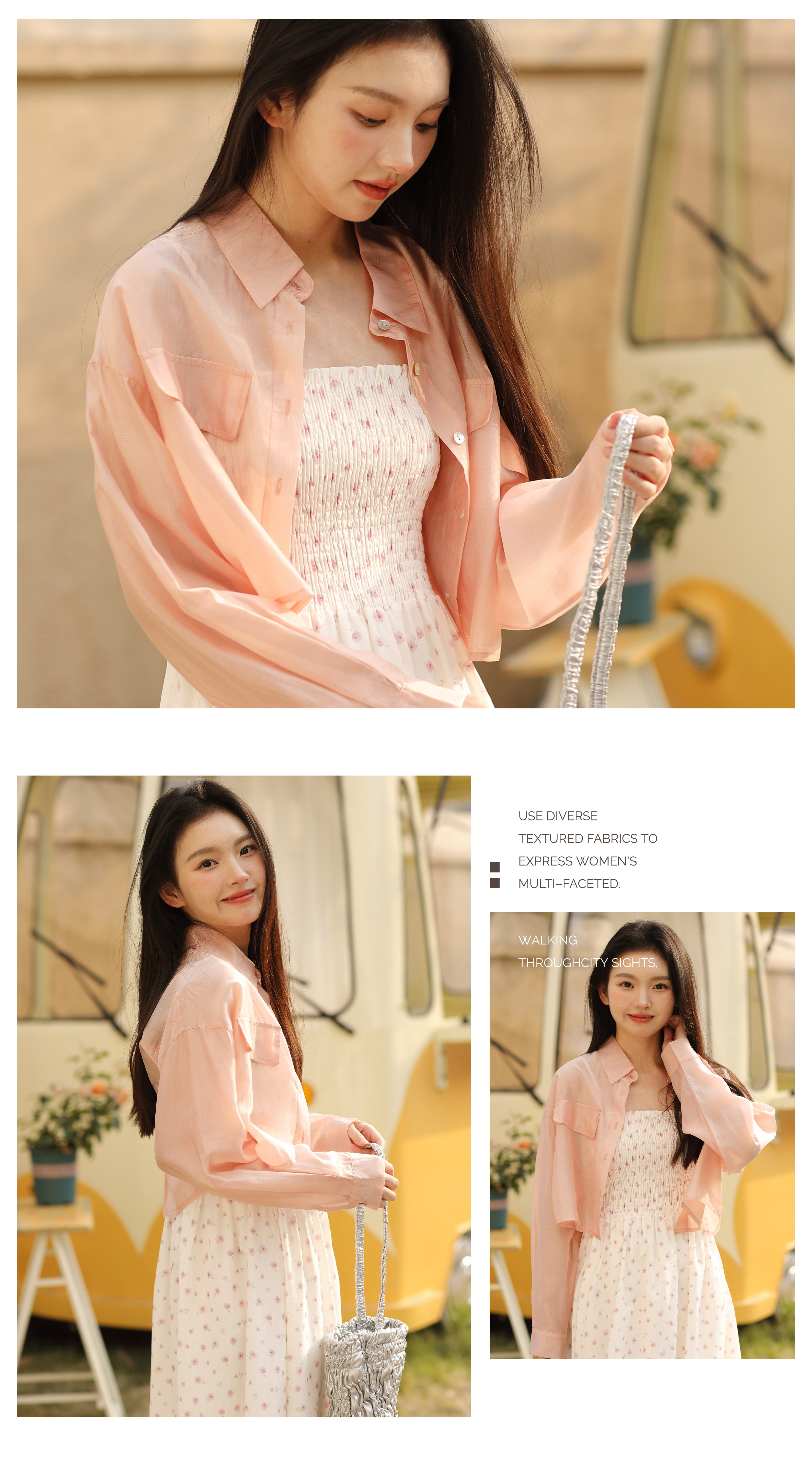 面料自带光泽感,似透非透的朦胧雾感加持柔美氛围,适合整个夏天穿着,防晒且透气、清凉!