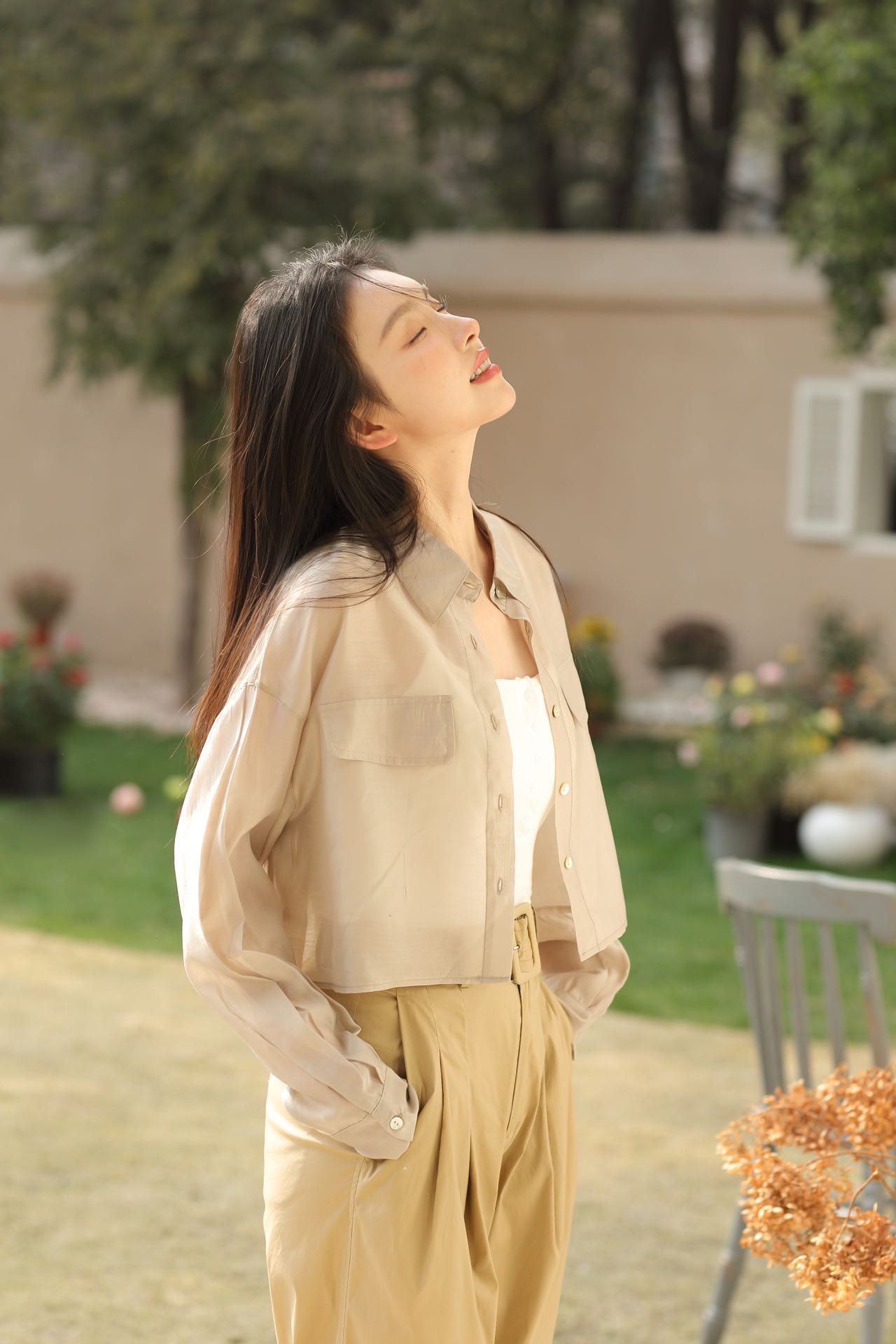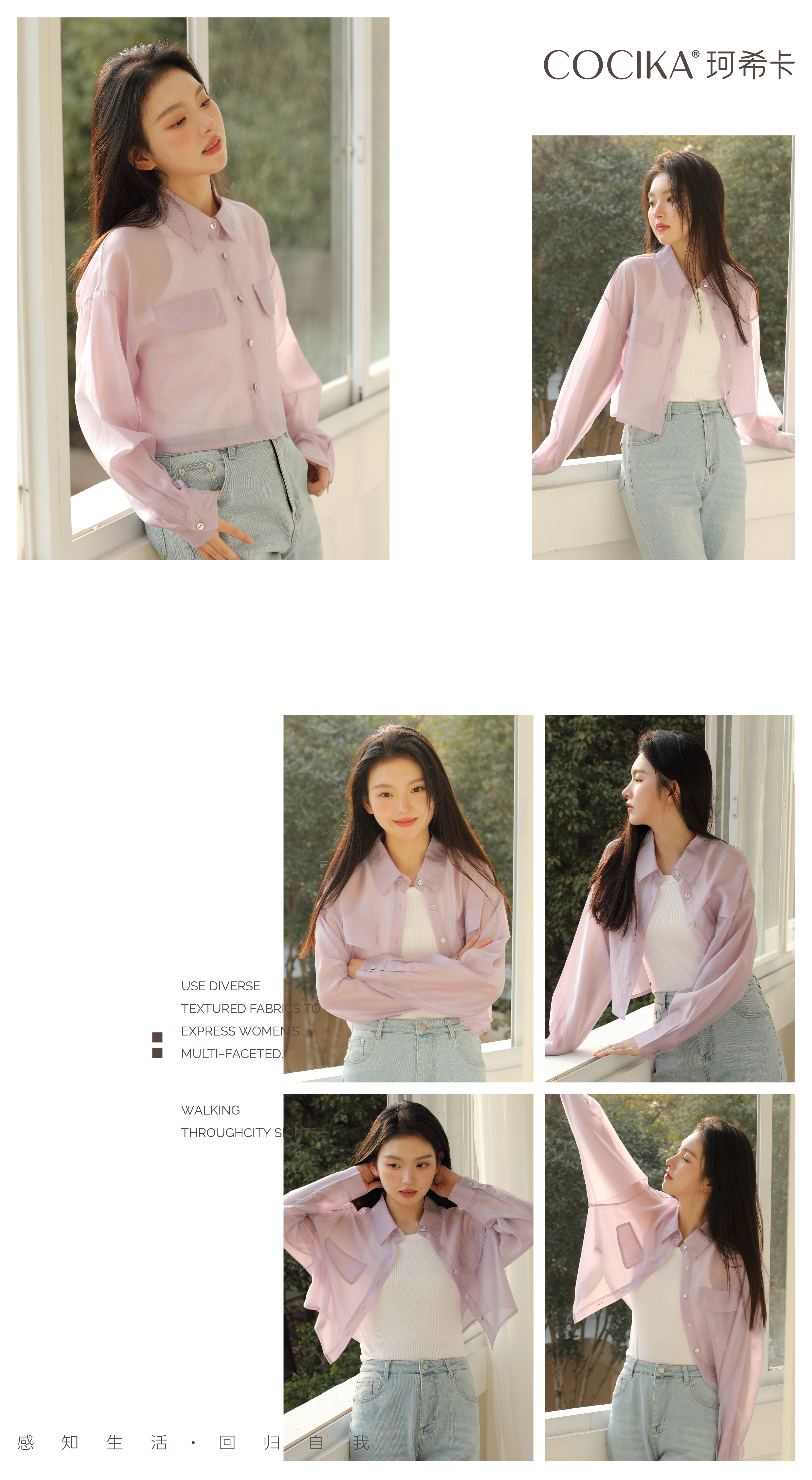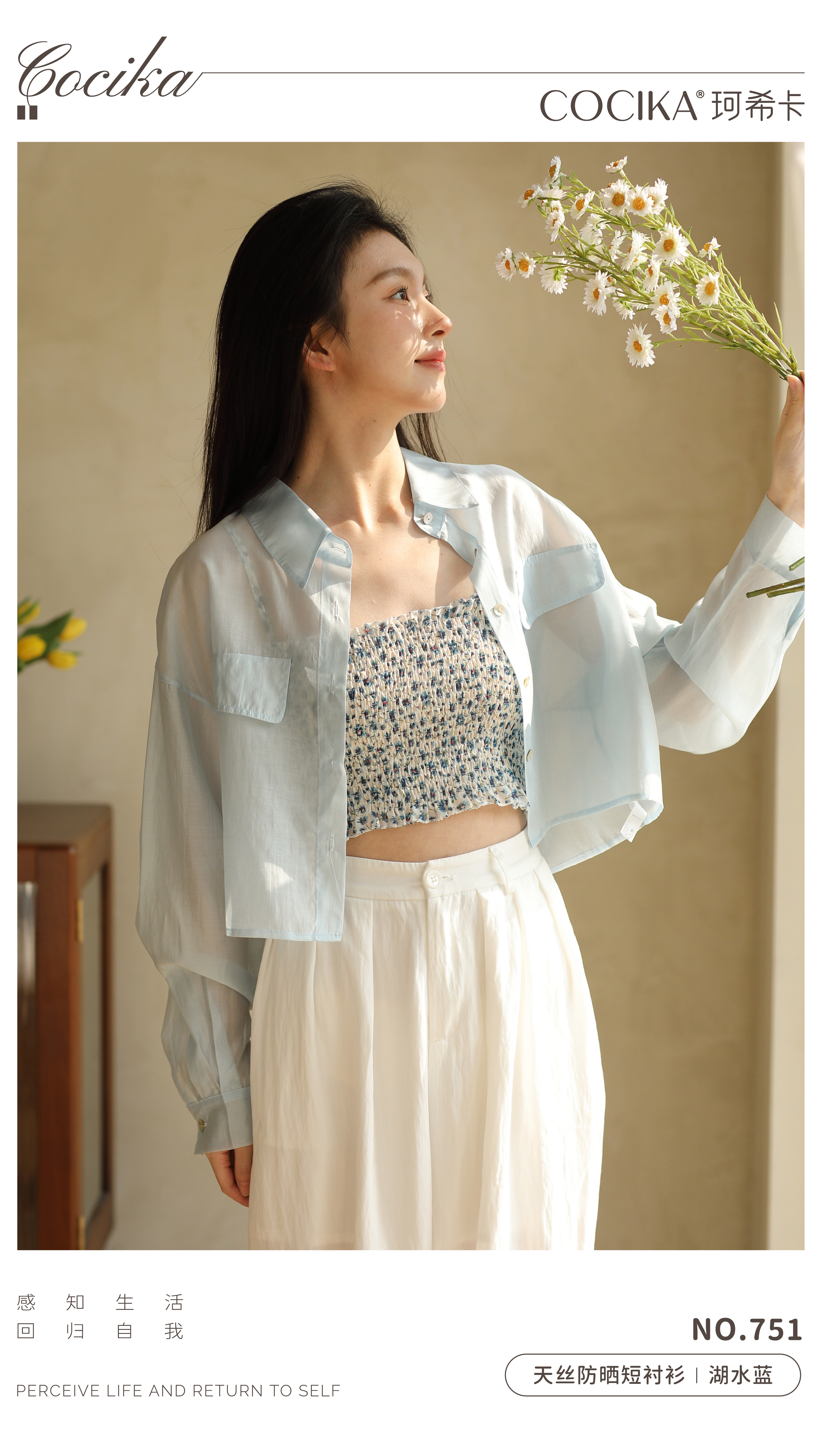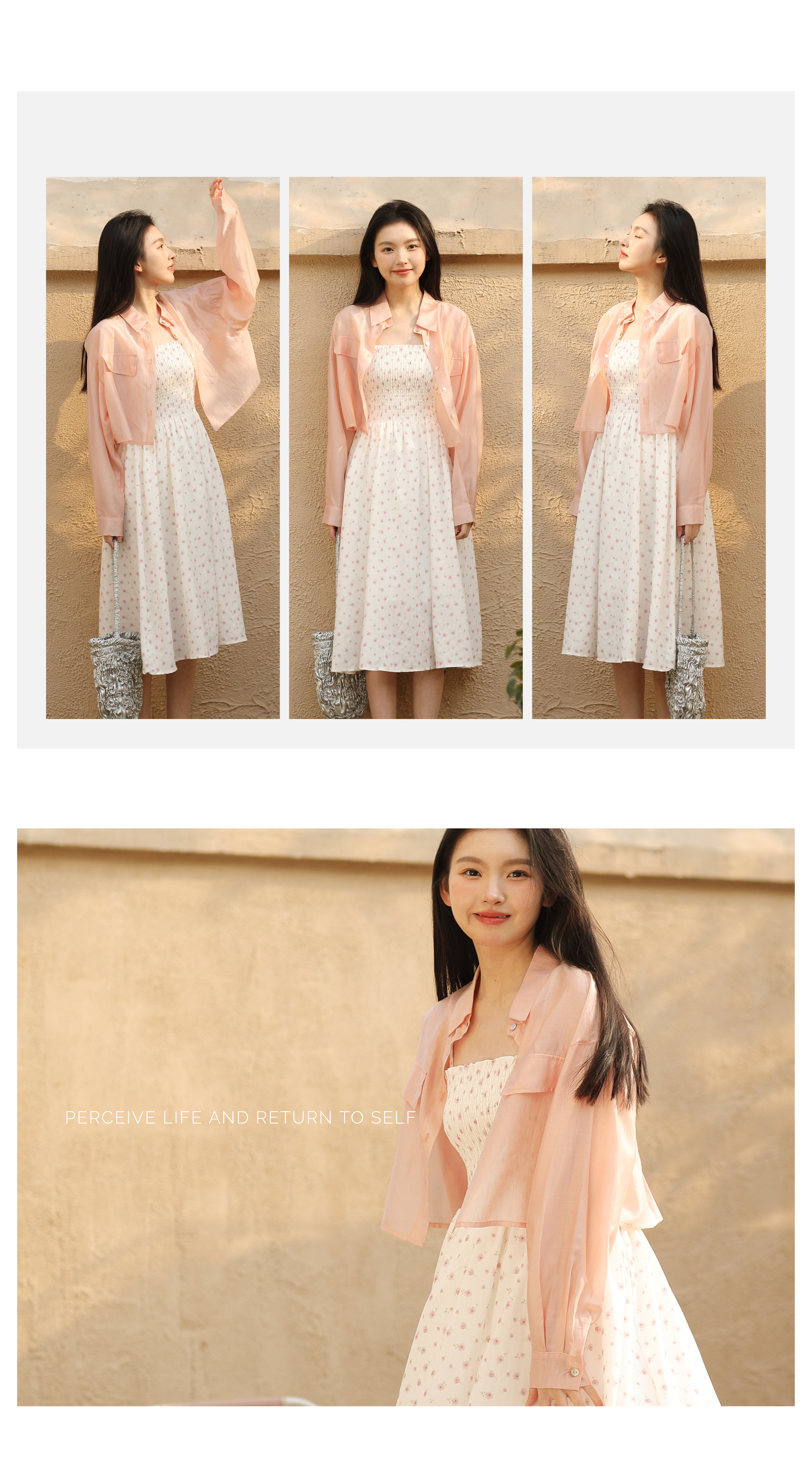 面料自带光泽感,似透非透的朦胧雾感加持柔美氛围,适合整个夏天穿着,防晒且透气、清凉!