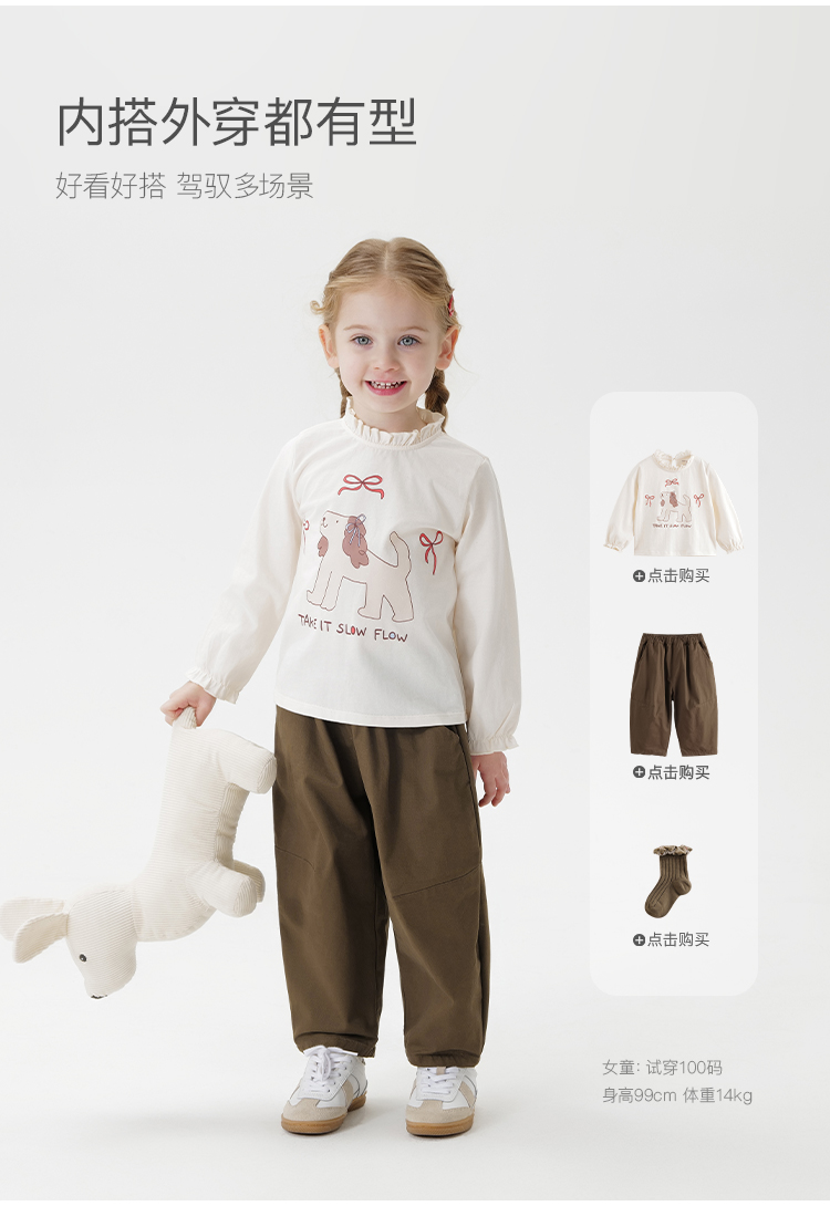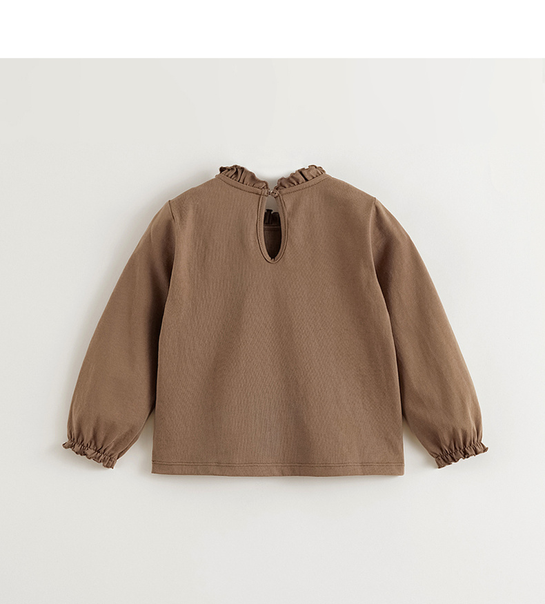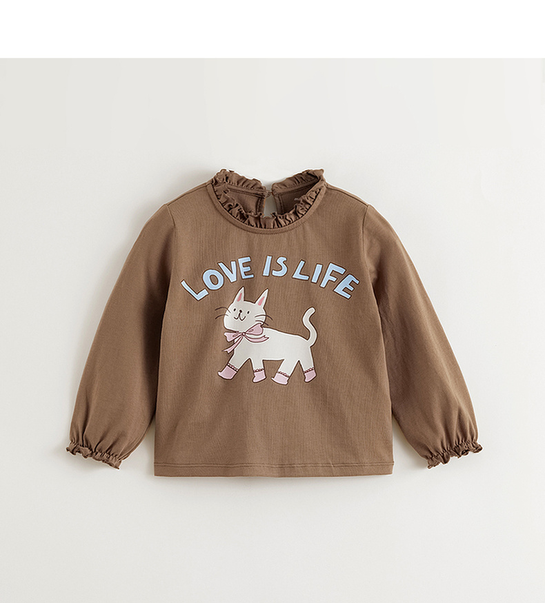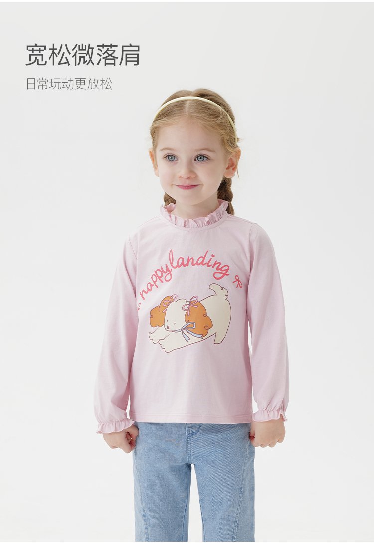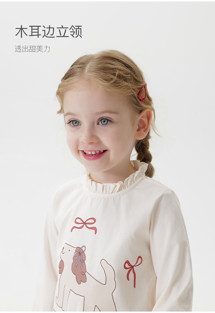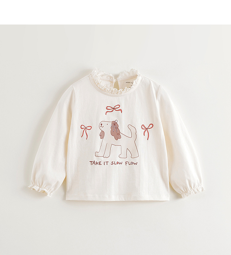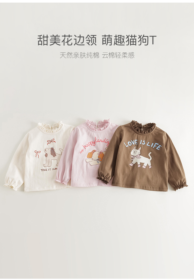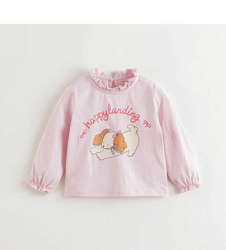马克珍妮女童萌趣动物花边领T恤 宝宝长袖上衣2025春装新款250230