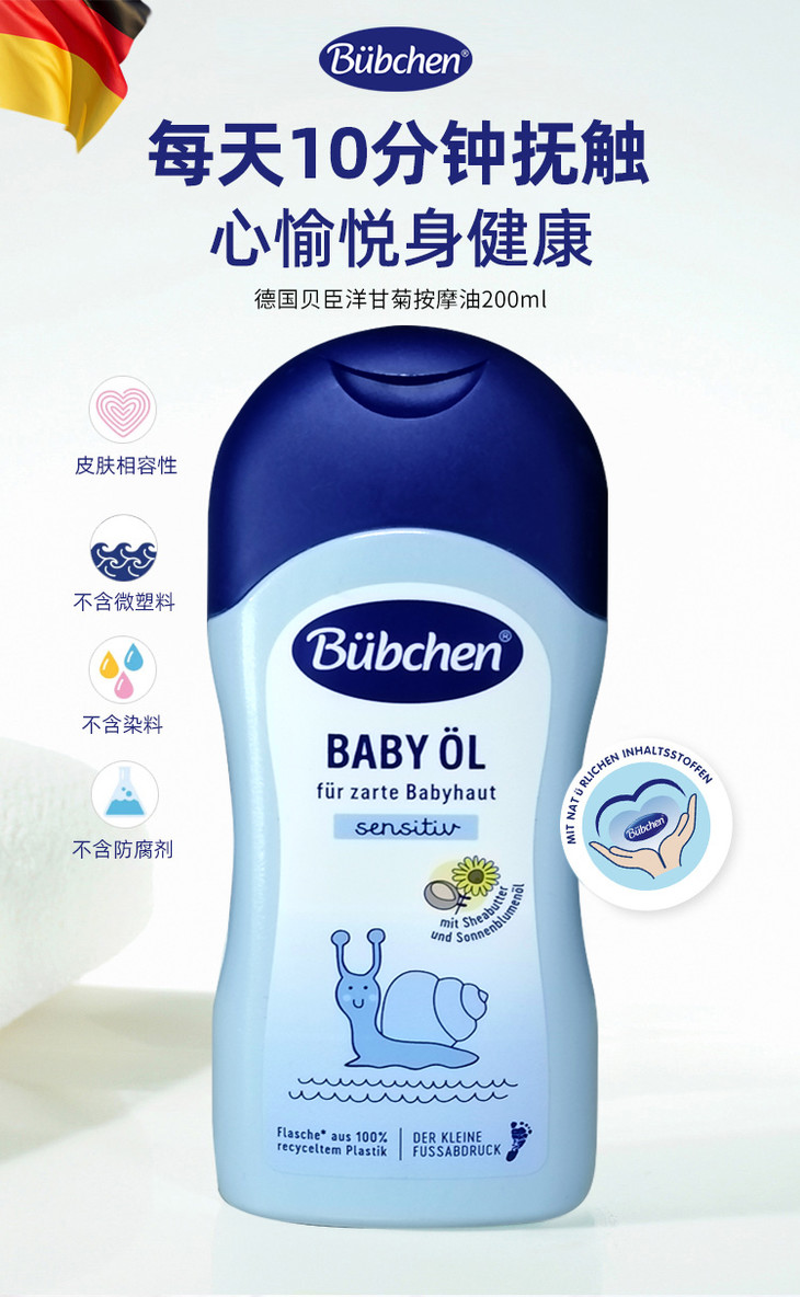 【跨境】德国Bubchen贝臣洋甘菊婴幼儿抚触按摩油 200ml