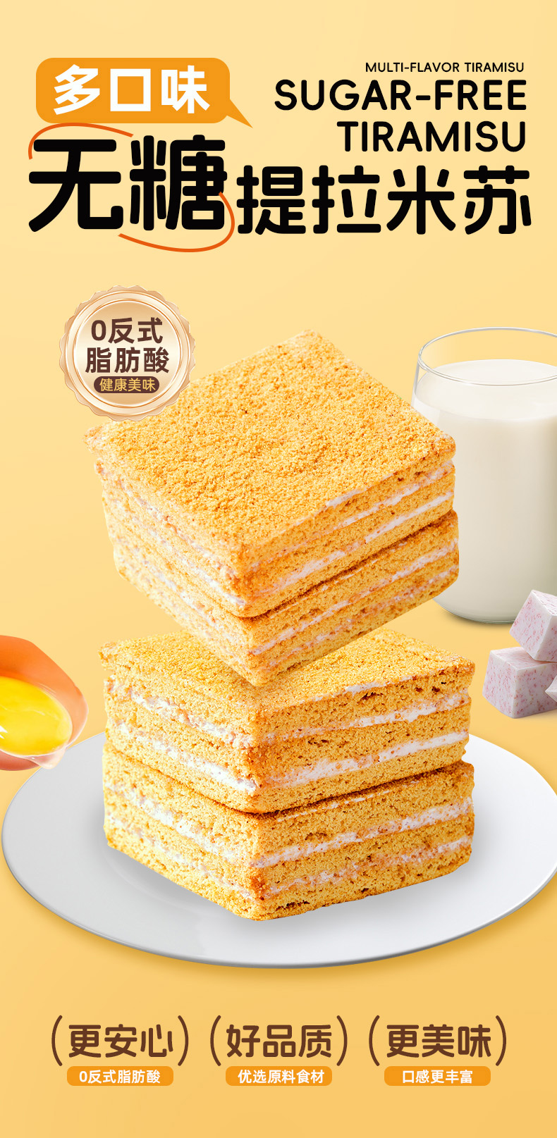 无糖全麦提拉米苏香芋味软糯香醇营养代餐早餐下午茶零食小蛋糕