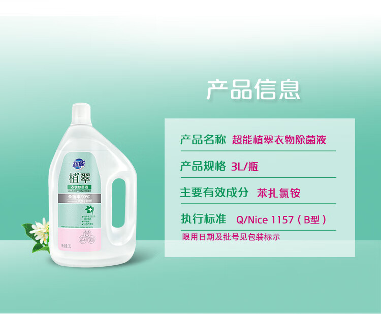 【ZY25】超能衣物除菌液植翠衣物除菌3L