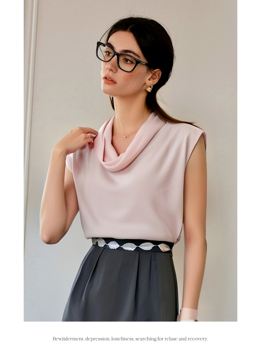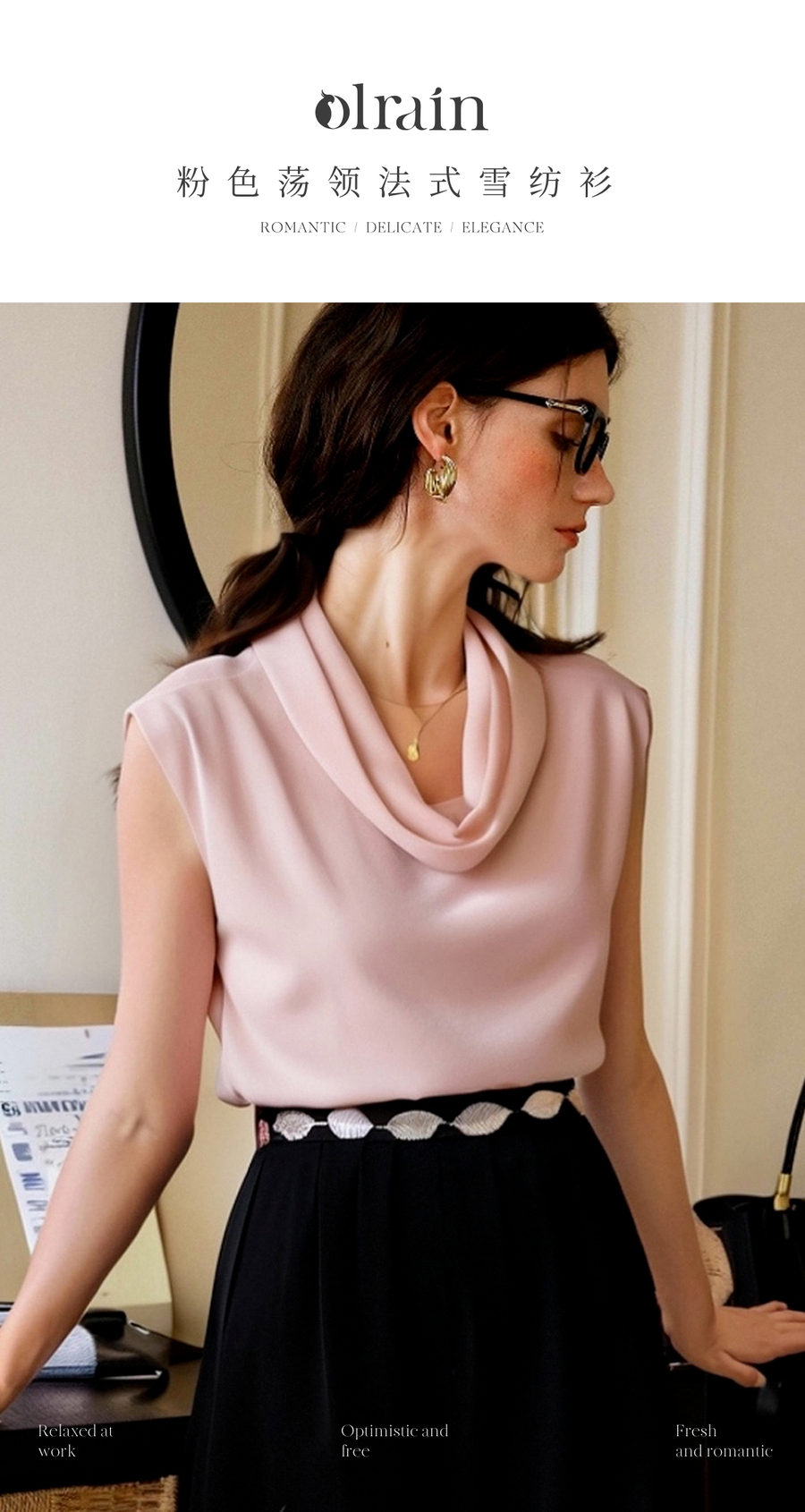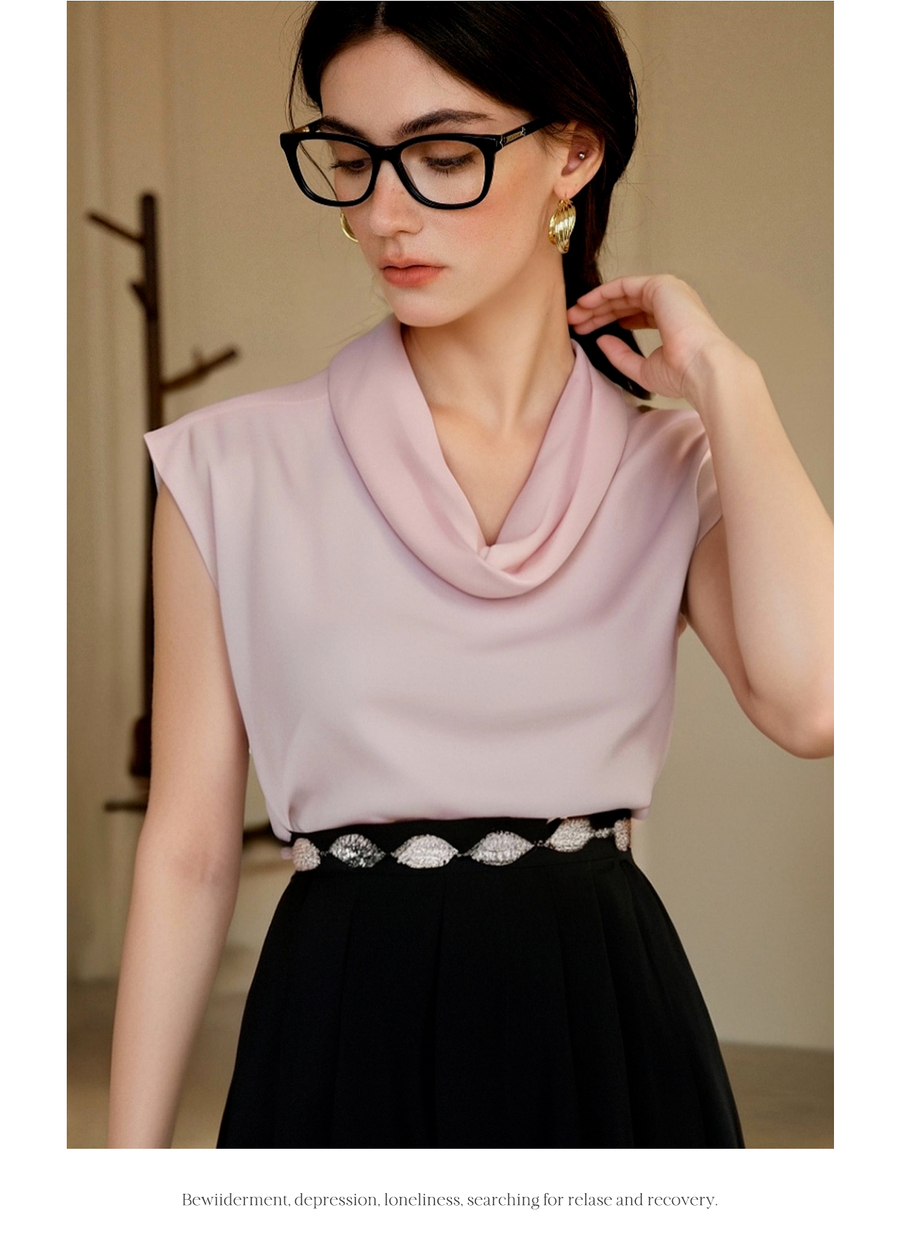 OLrain欧芮儿荡领法式雪纺衫女夏季2025新款高级感优雅堆堆领上衣