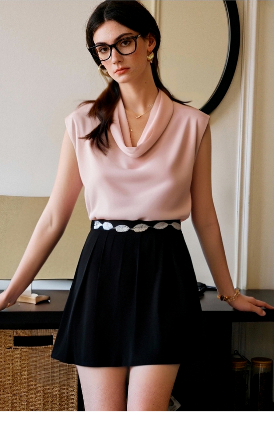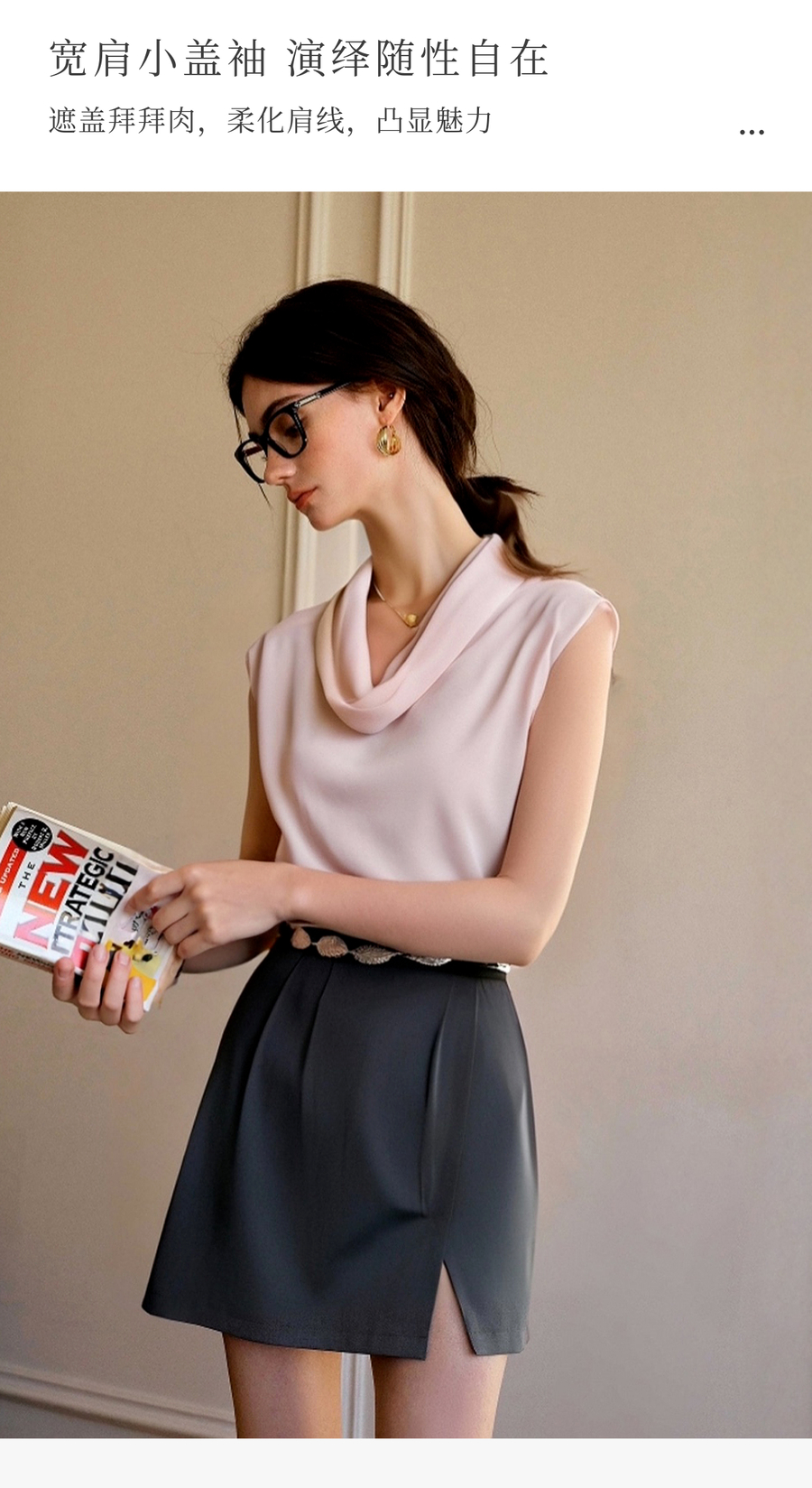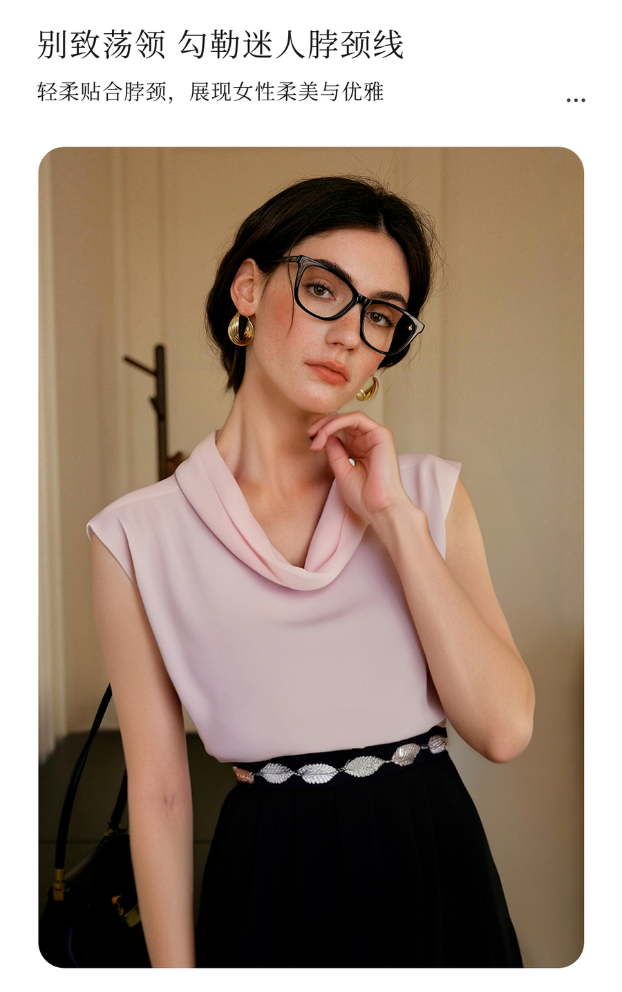 OLrain欧芮儿荡领法式雪纺衫女夏季2025新款高级感优雅堆堆领上衣