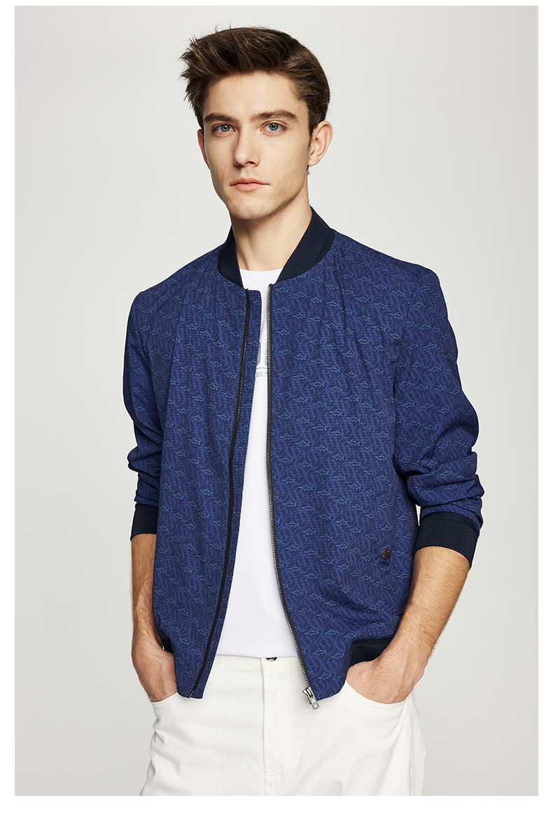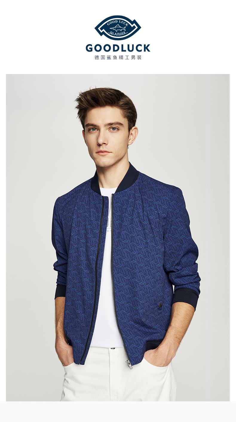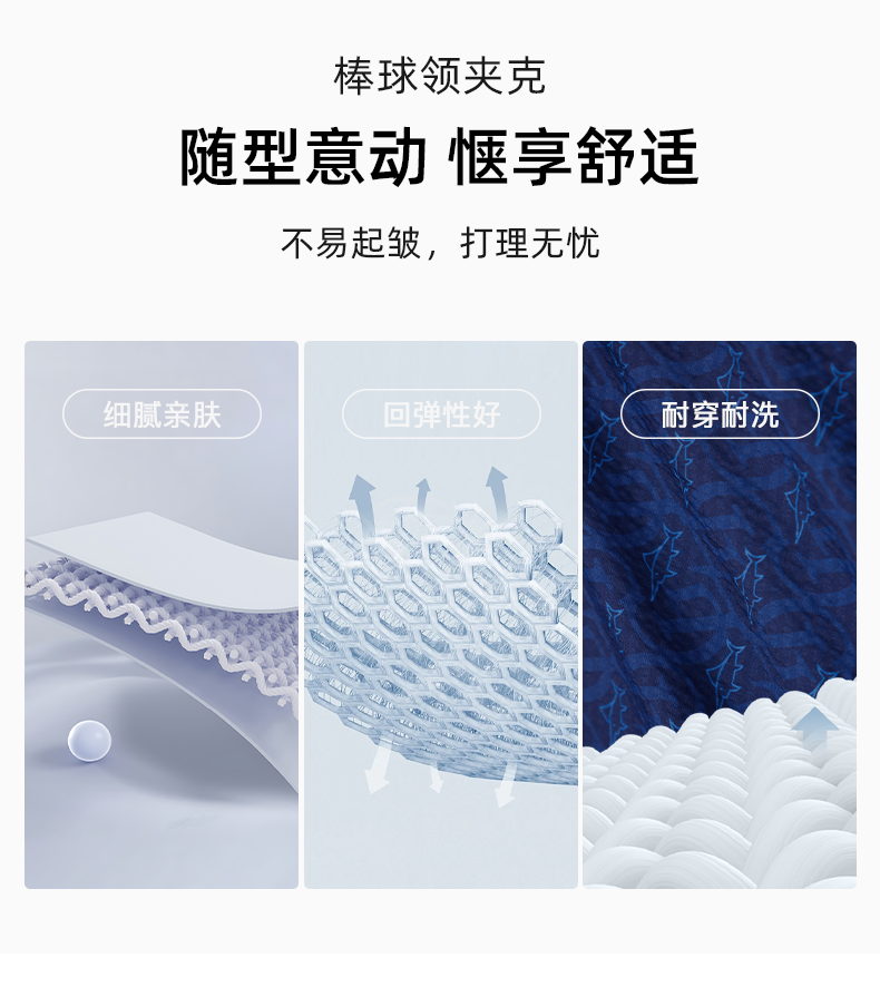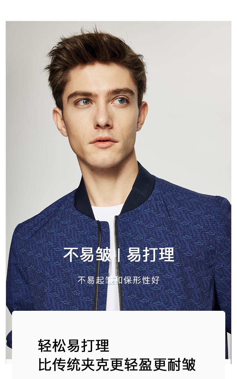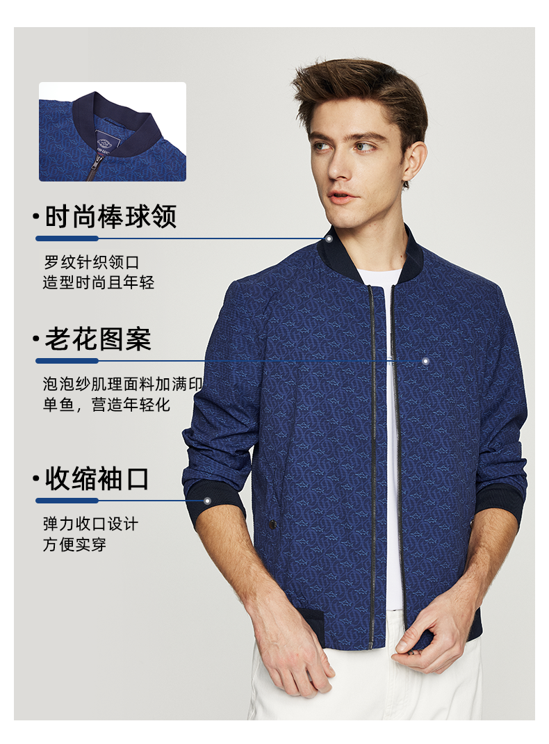 【泡泡纱肌理】德鲨短款棒球领夹克男青年春季新款休闲上衣外套