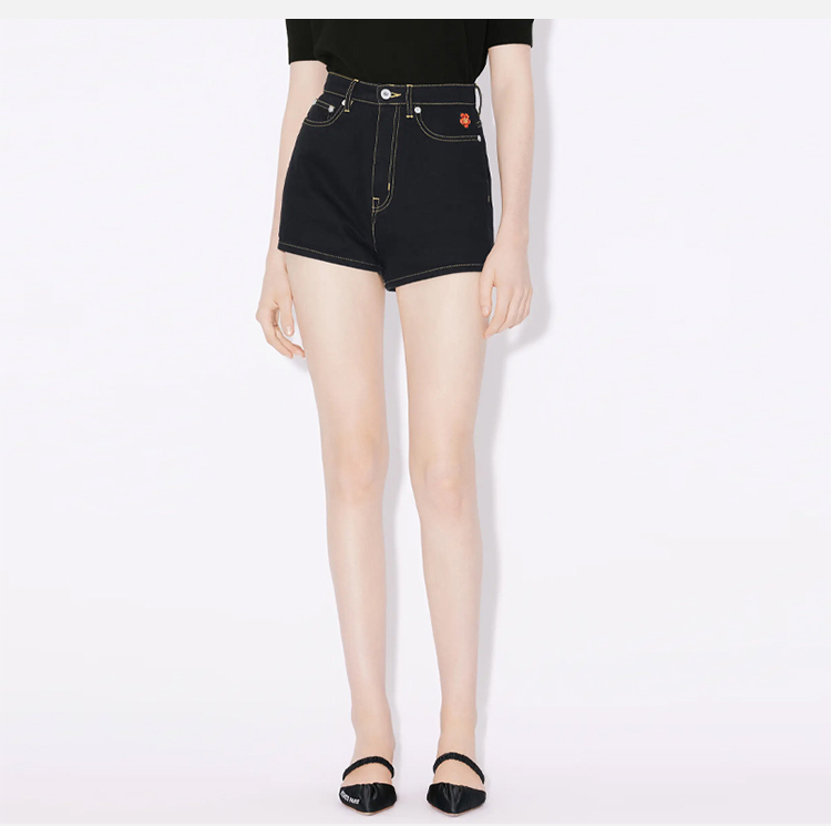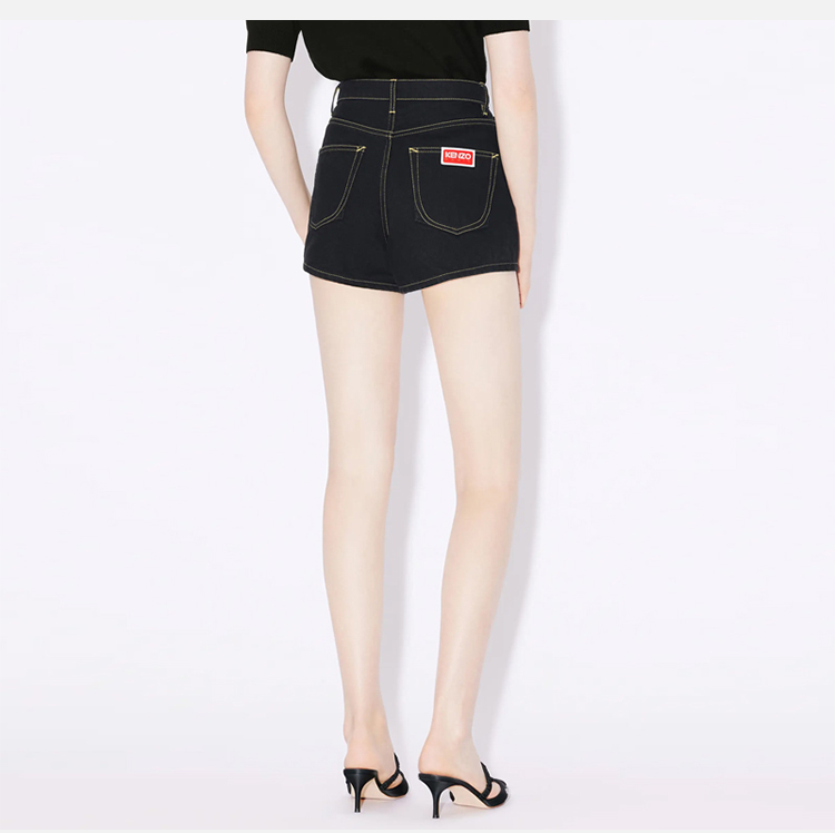 KENZO 高田贤三 女士“BOKE FLOWER”徽章刺绣棉质牛仔短裤 黑色 FD62 DS200 6C1 BM