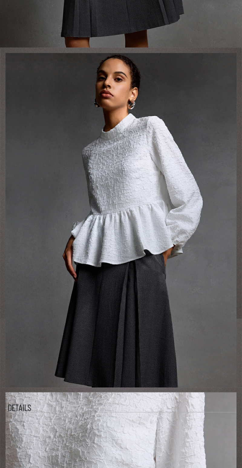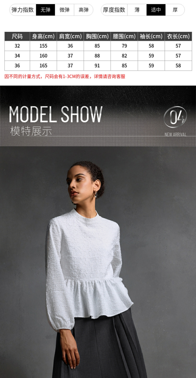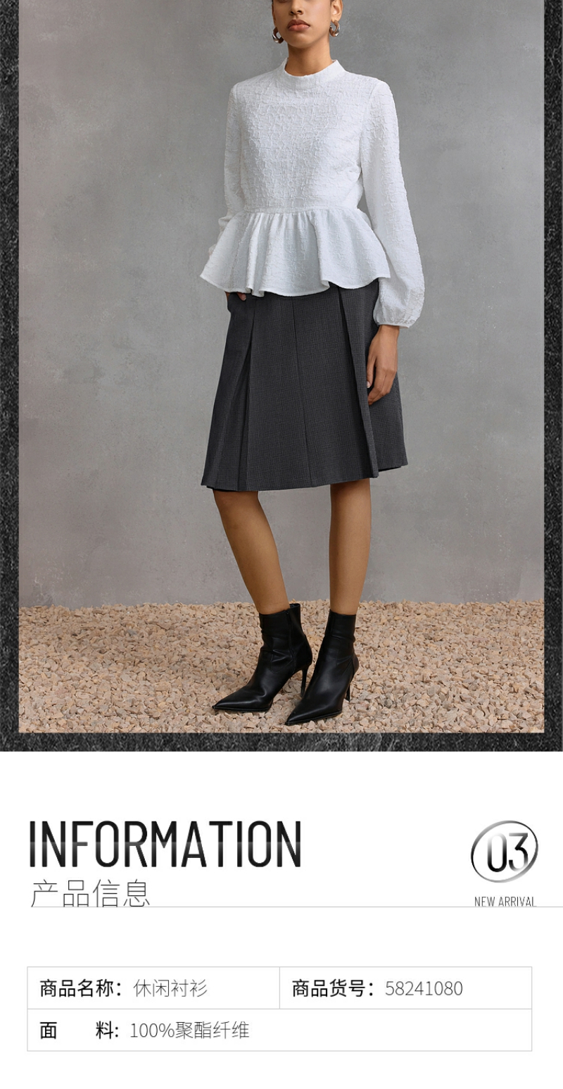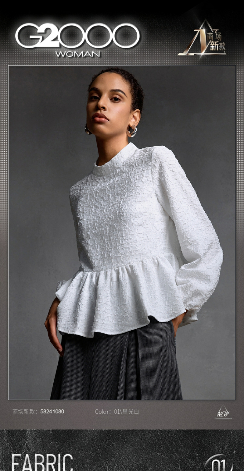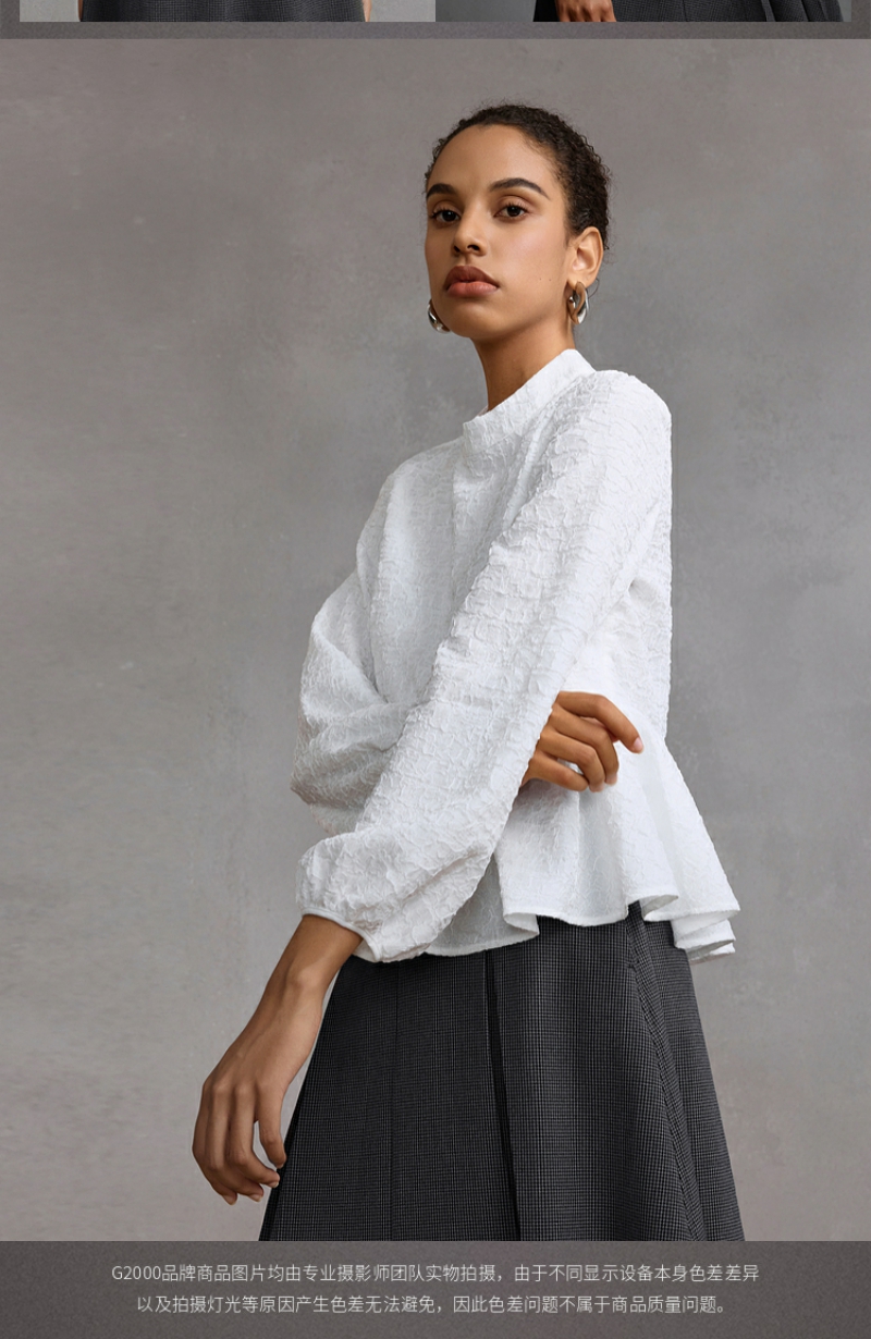 G2000女装FW25商场新款【褶皱肌理/荷叶下摆】气质长袖休闲衬衫58241080