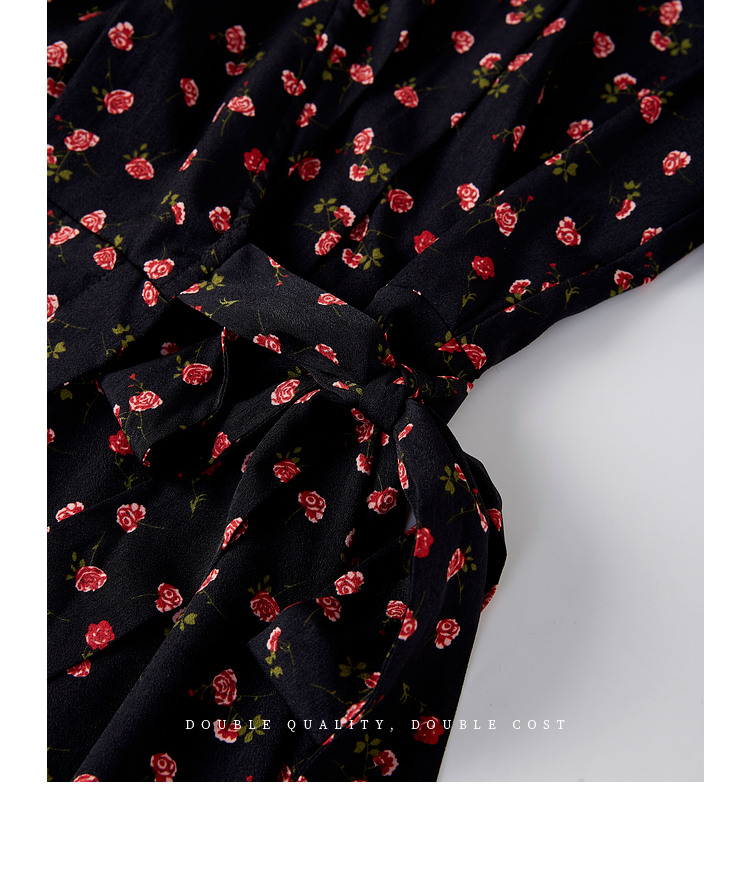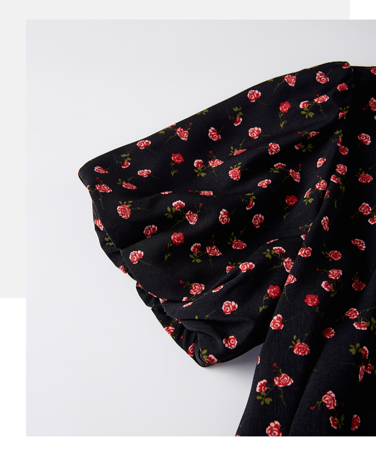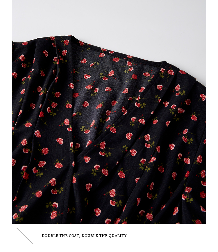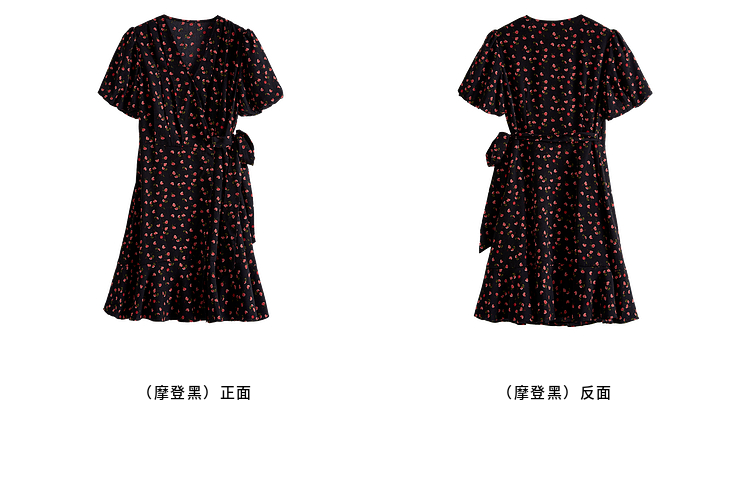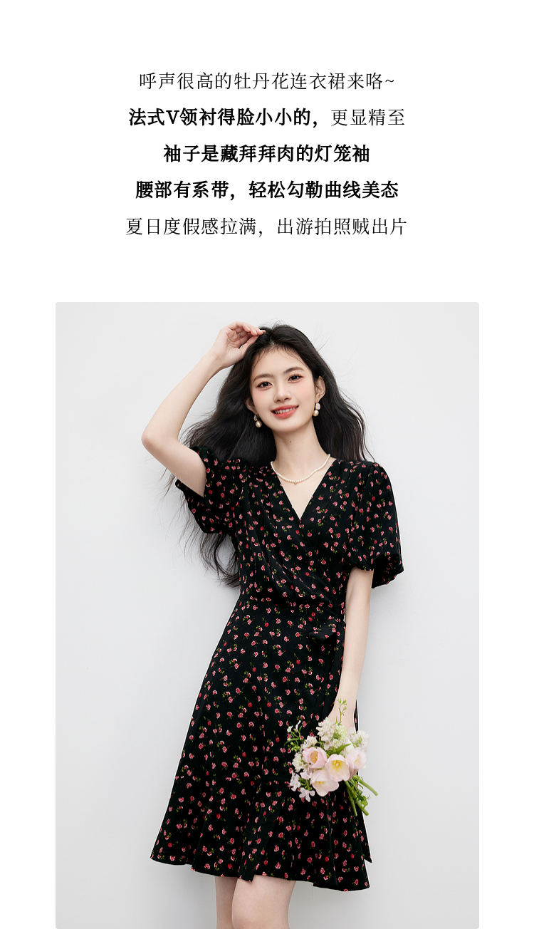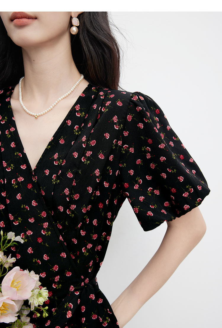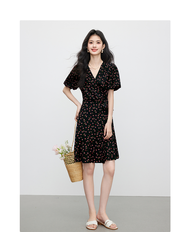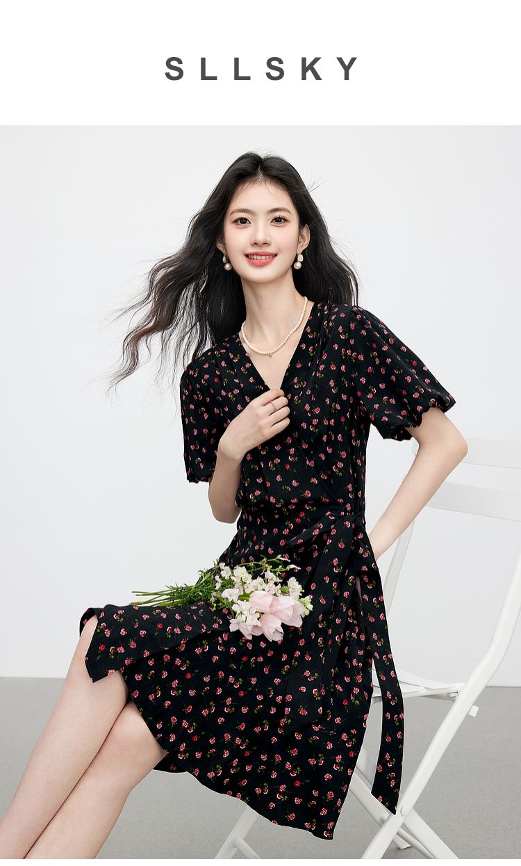 【07/16新品】熙世界法式碎花V领连衣裙女夏新款小个子围裹式系带收腰茶歇裙子