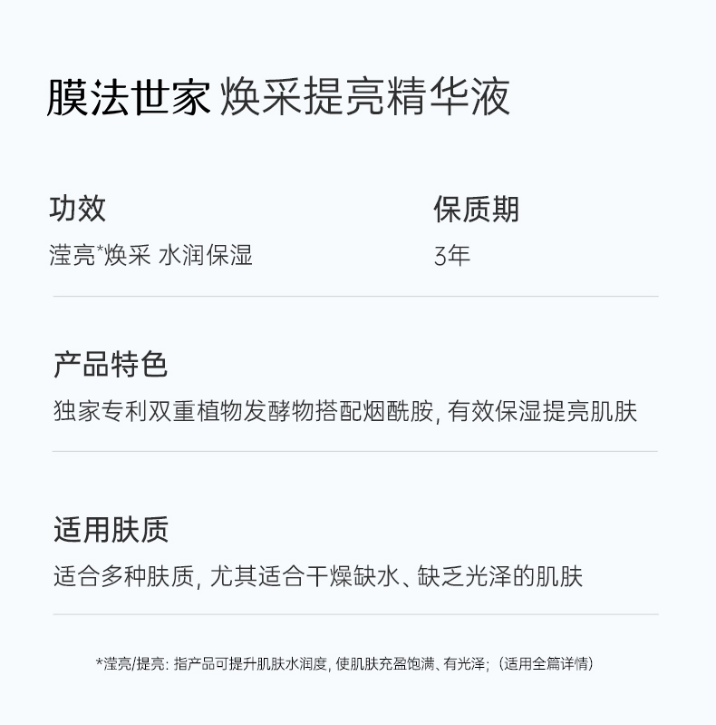 【内购秒杀𝟐𝟗元𝟏瓶】膜法世家焕采提亮精华液30ml