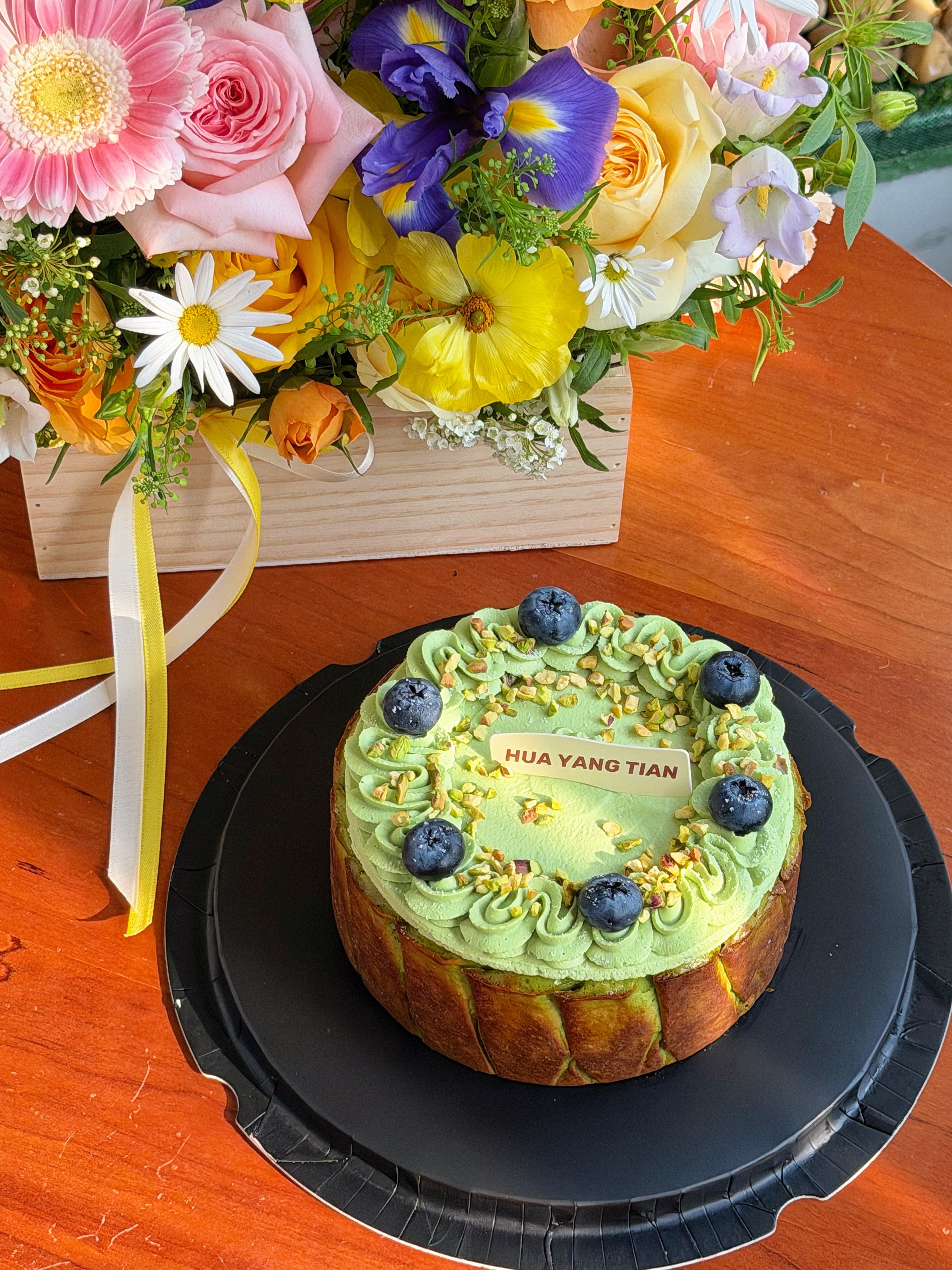 顶上蓝莓+开心果碎把颜值拉满