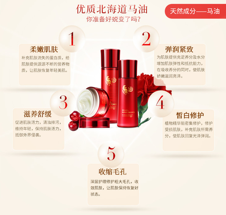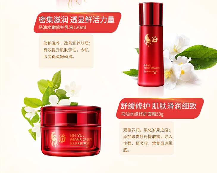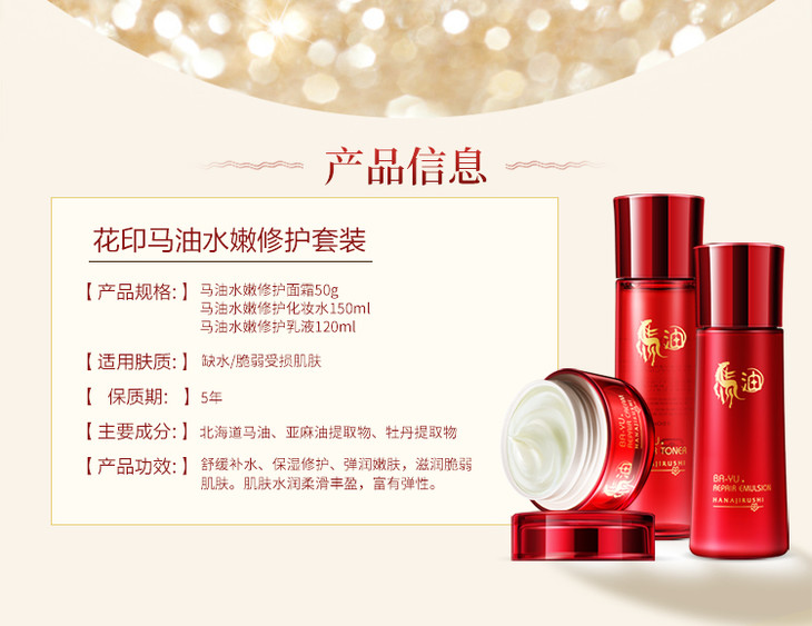 【特惠】花印 马油滋养修护套装(水150ml+乳液120ml+面霜50g)